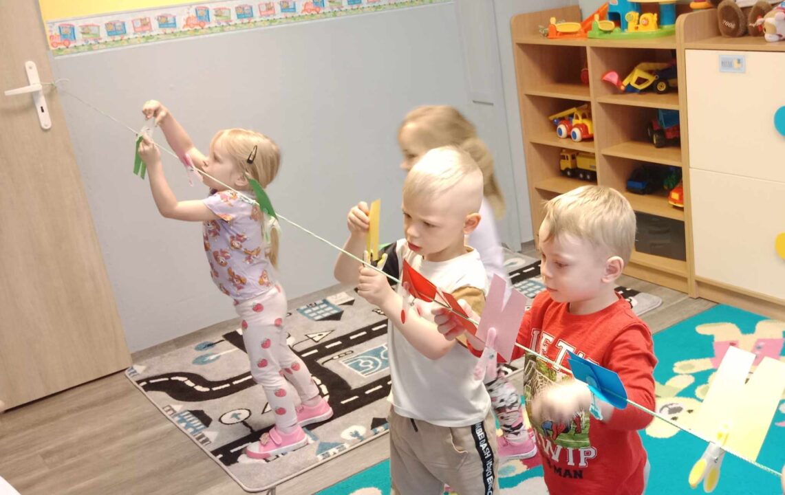 Grupa ,,Biedronki” w tym tygodniu w ramach realizacji modułu: ,,Profilaktyki chorób odkleszczowych z programu Sanepid: ,,Klub Zdrowego Przedszkolaka”, poprzez pogadankę poznała zasady ochrony przed kleszczami, ciekawostki na ich temat oraz choroby przez nie przenoszone. Rozwiązywała także tematyczne karty pracy. Poznała cyfrę 9 oraz z okazji Dnia Flagi rozmawiała o symbolach narodowych, wykonując pracę plastyczną. Uczestniczyła w zabawach na placu zabaw z wykorzystaniem sprzętu ogrodowego.