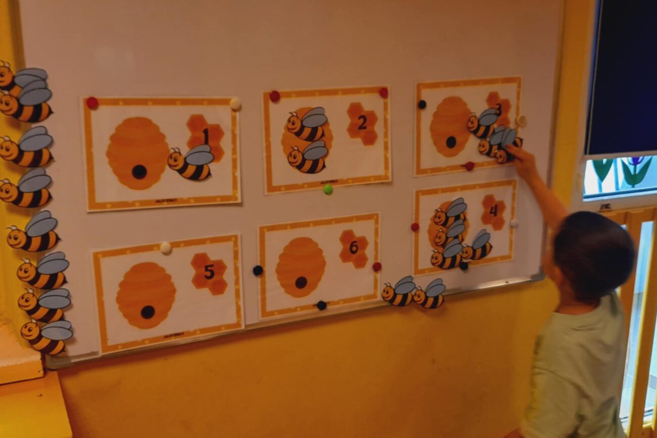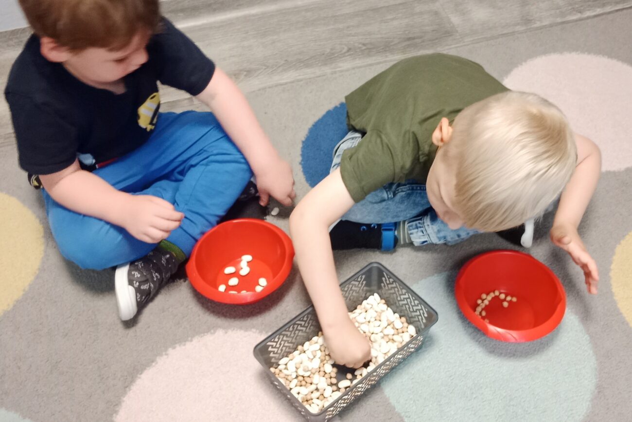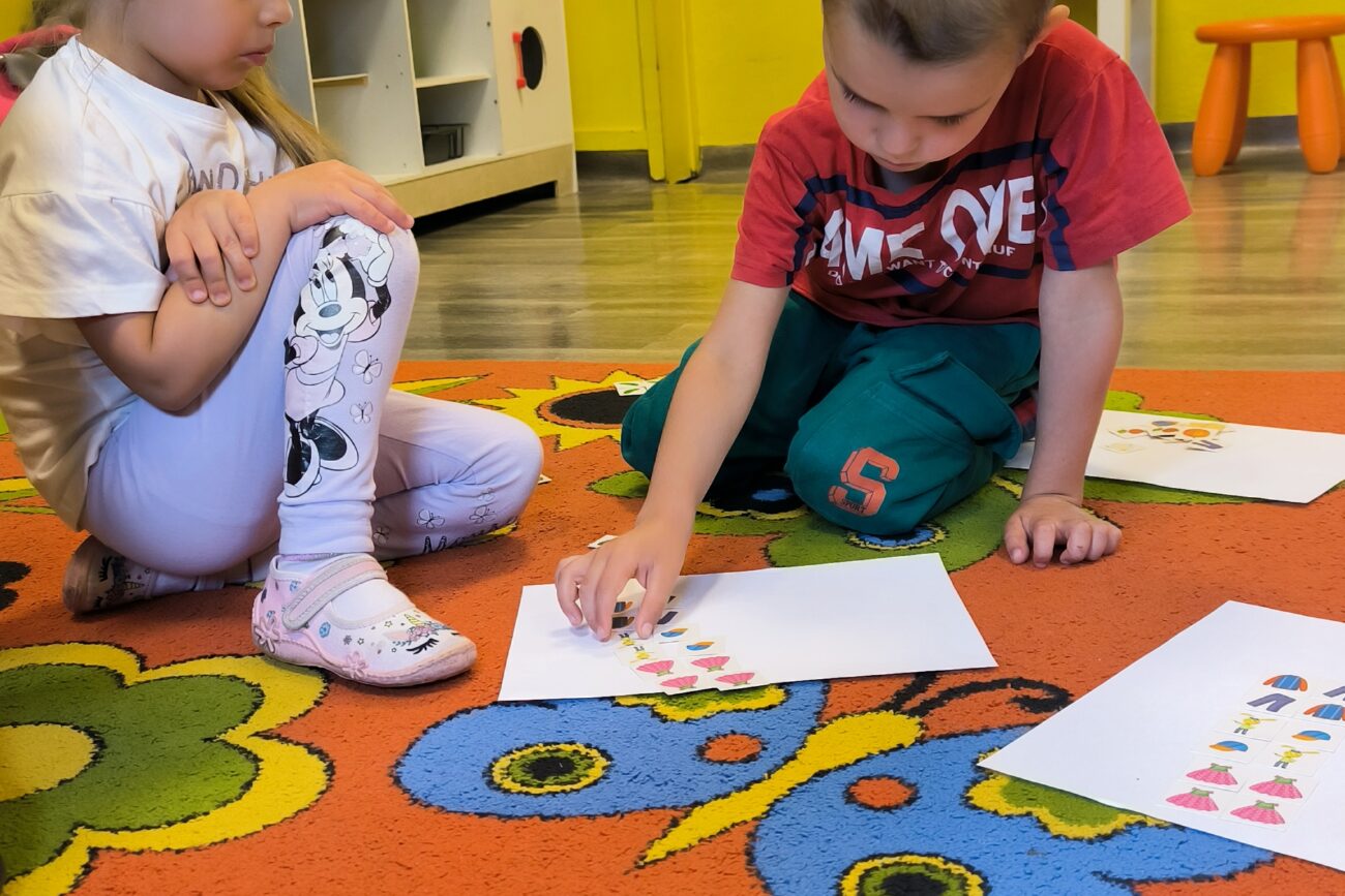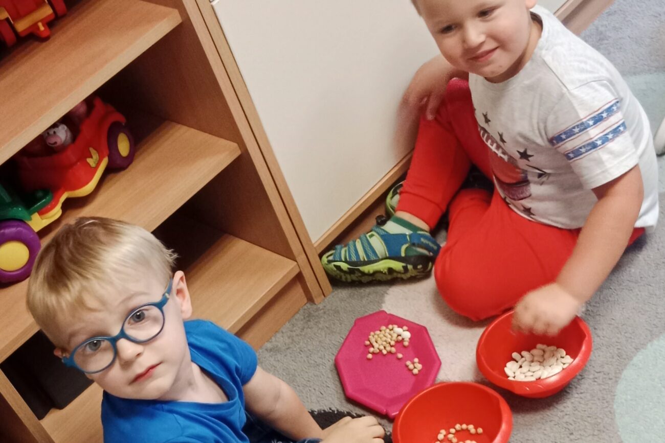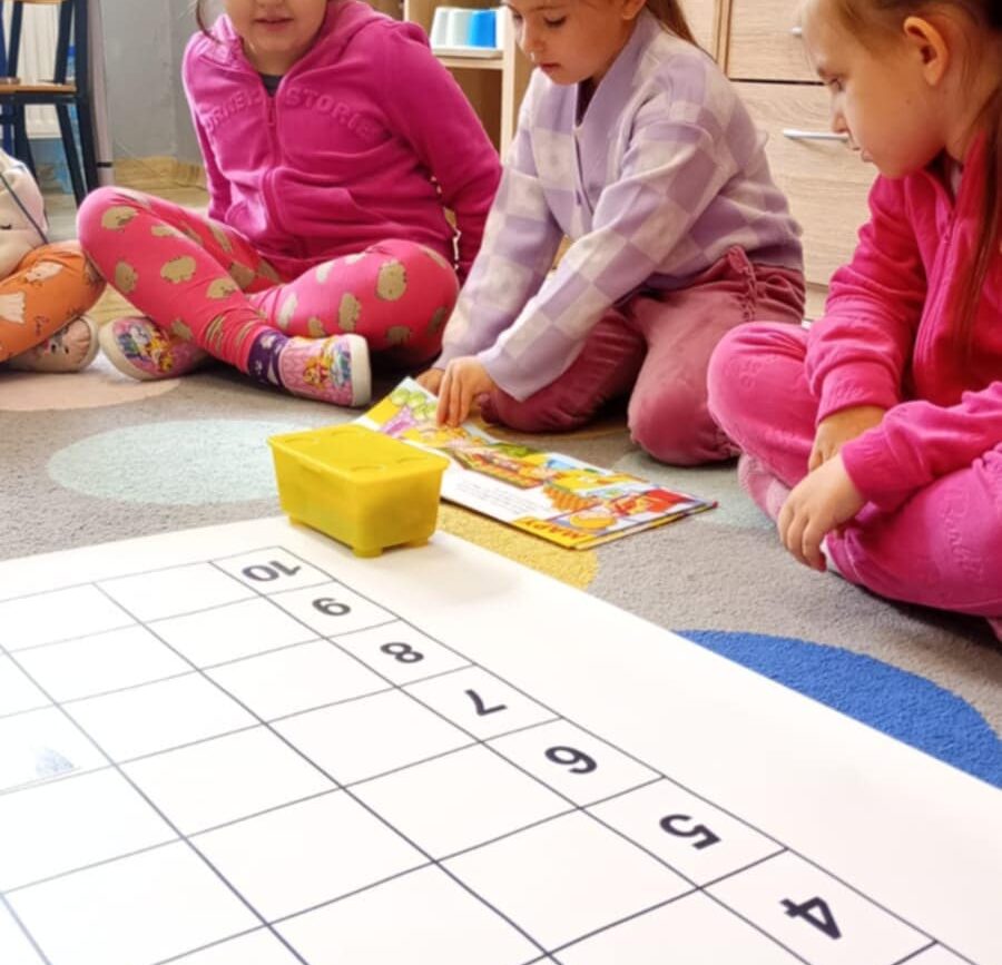 Uczestniczyły w zabawach matematycznych, przeliczając pszczoły, biedronki i żaby – utrwalając poznane cyfry.Tworzyły pary z kolekcji obrazkowych.