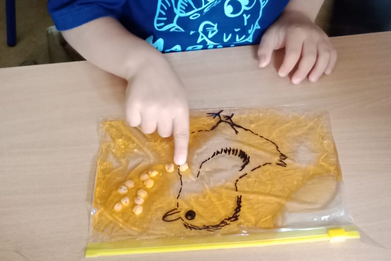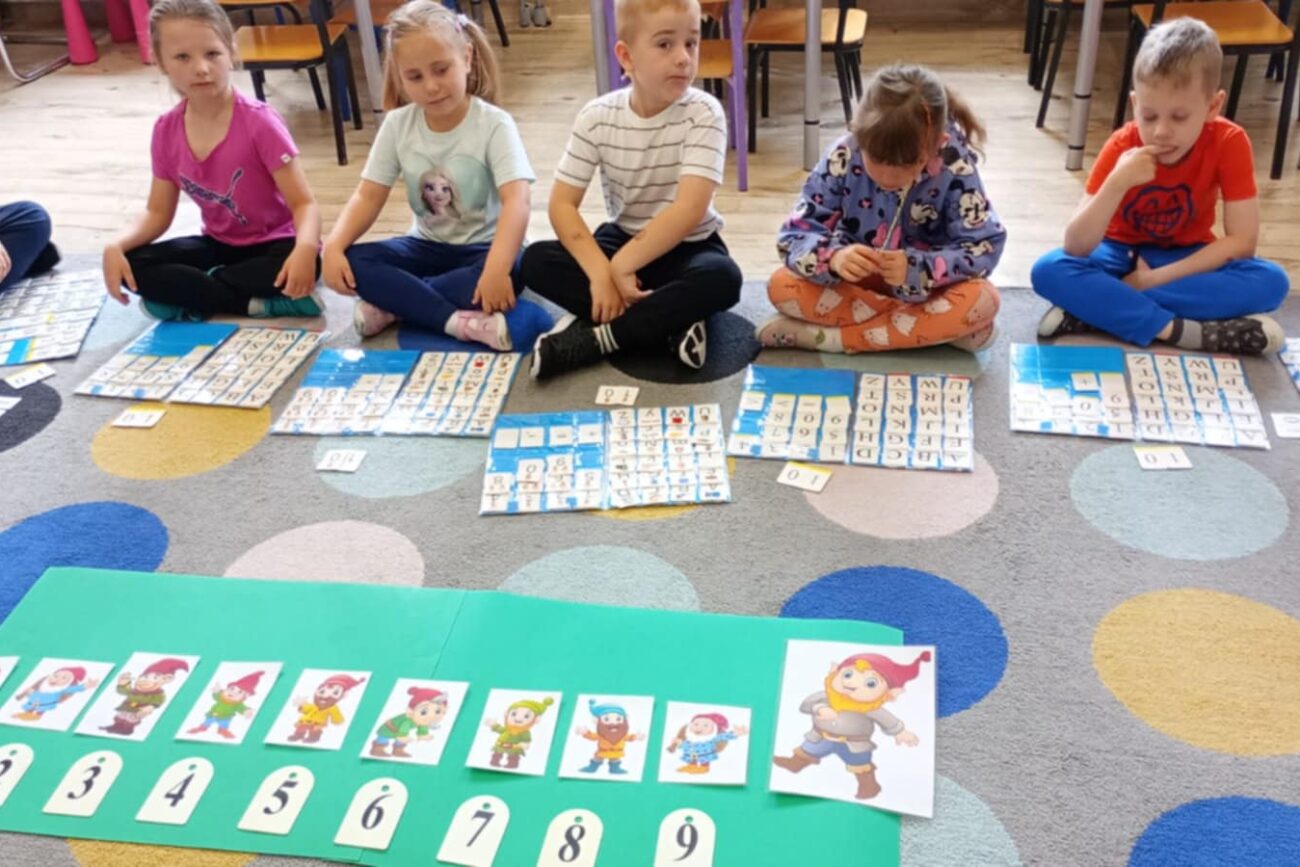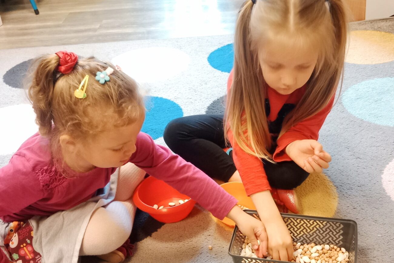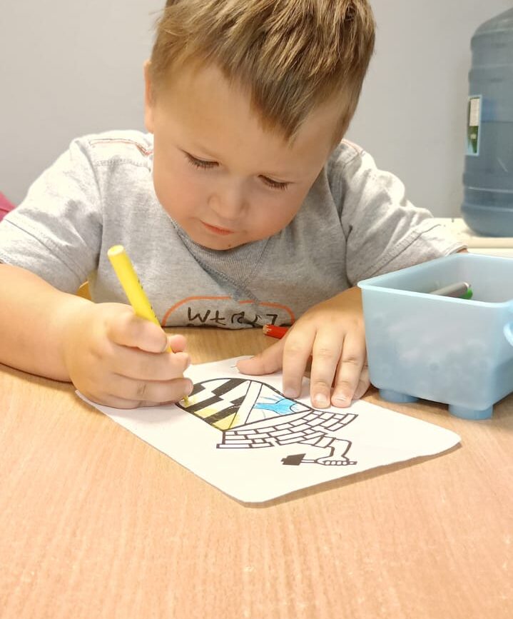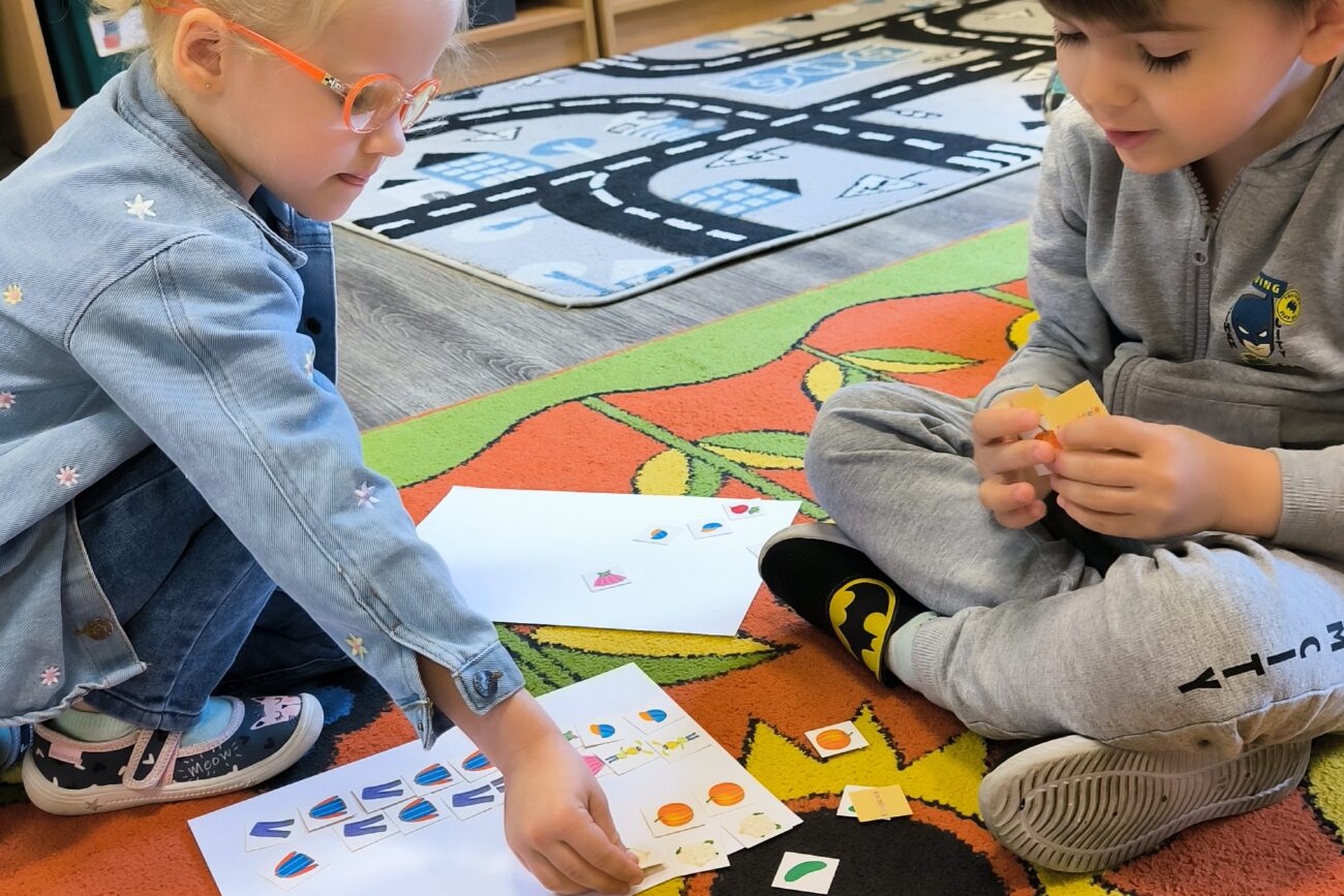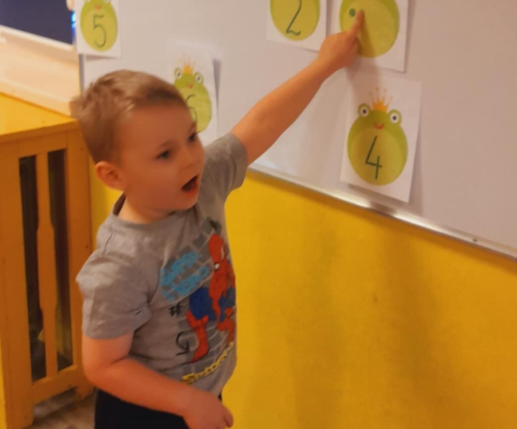 Uczestniczyły w zabawach matematycznych, przeliczając pszczoły, biedronki i żaby – utrwalając poznane cyfry.Tworzyły pary z kolekcji obrazkowych.