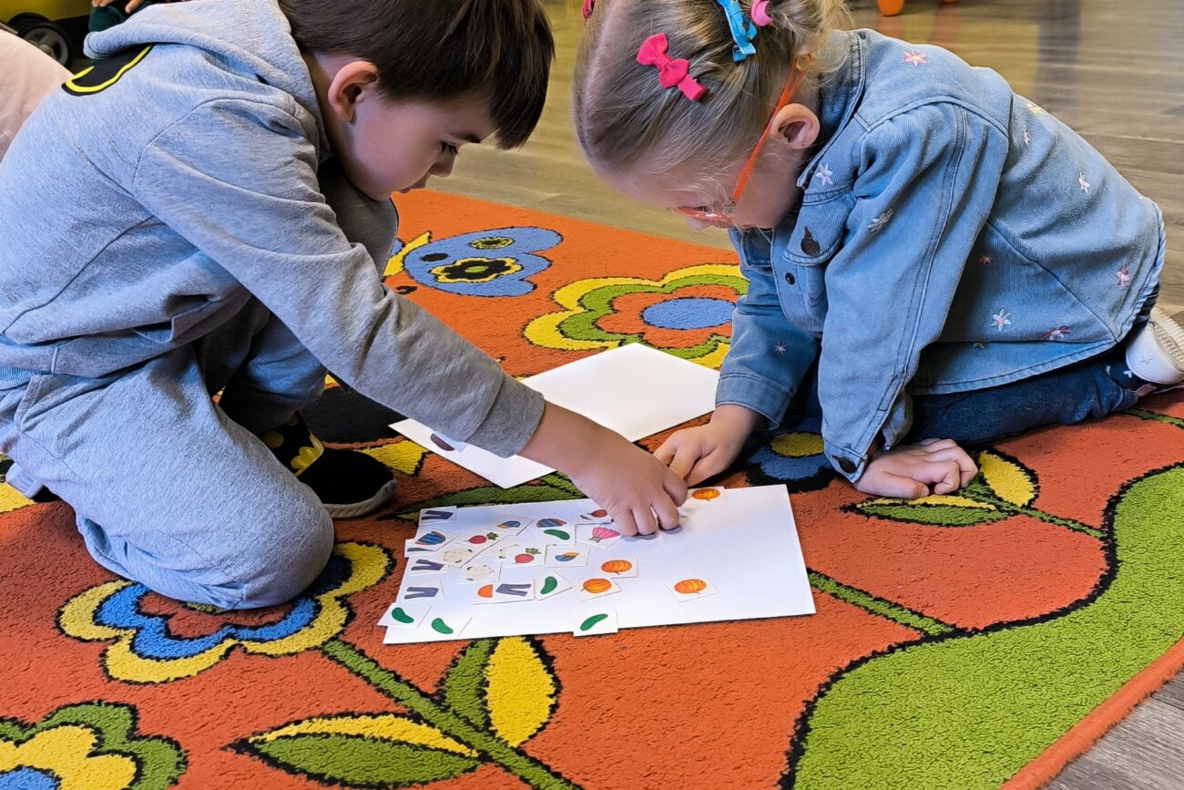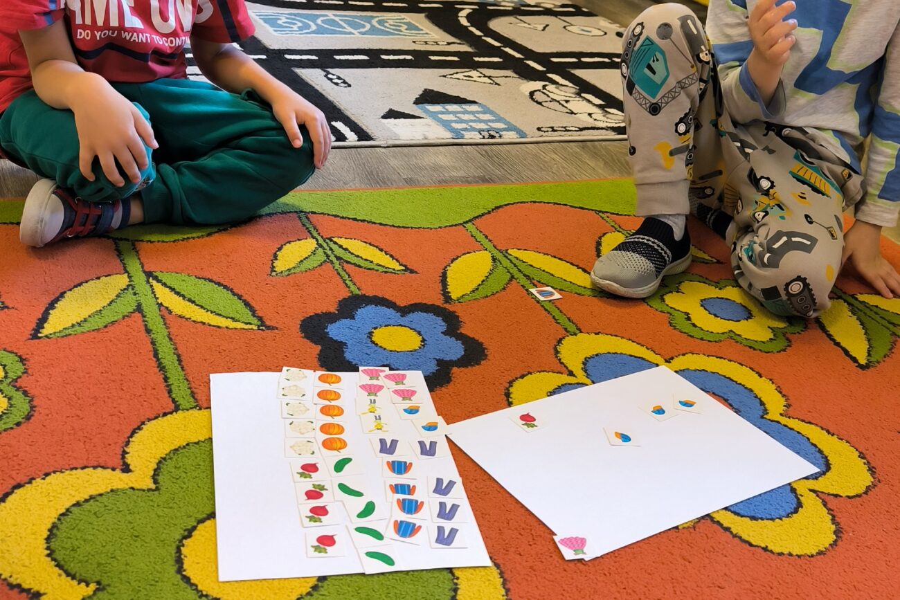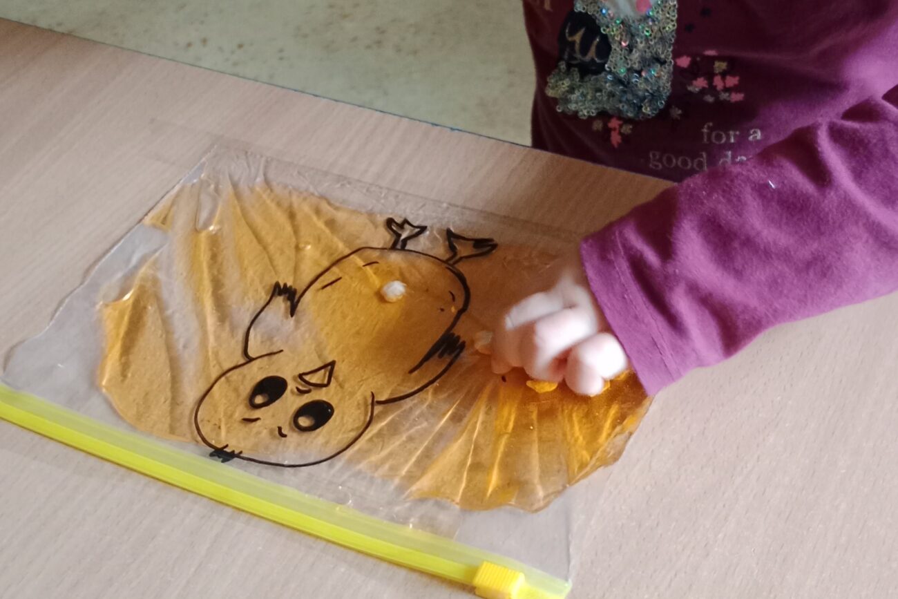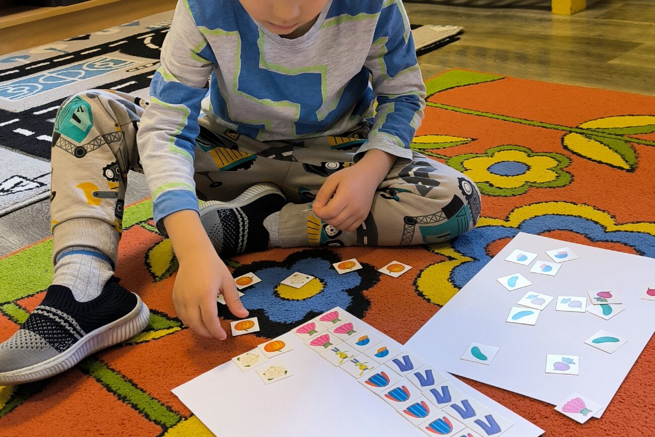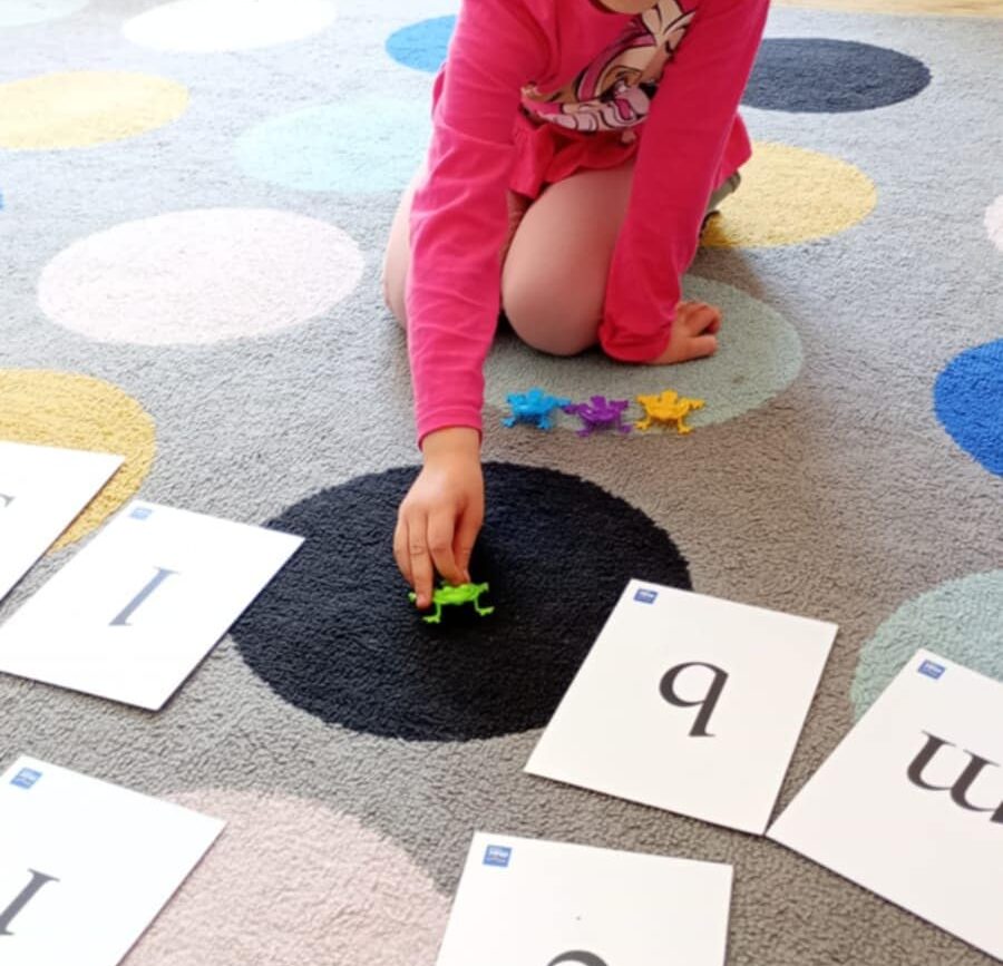 Uczestniczyły w zabawach matematycznych, przeliczając pszczoły, biedronki i żaby – utrwalając poznane cyfry.Tworzyły pary z kolekcji obrazkowych.