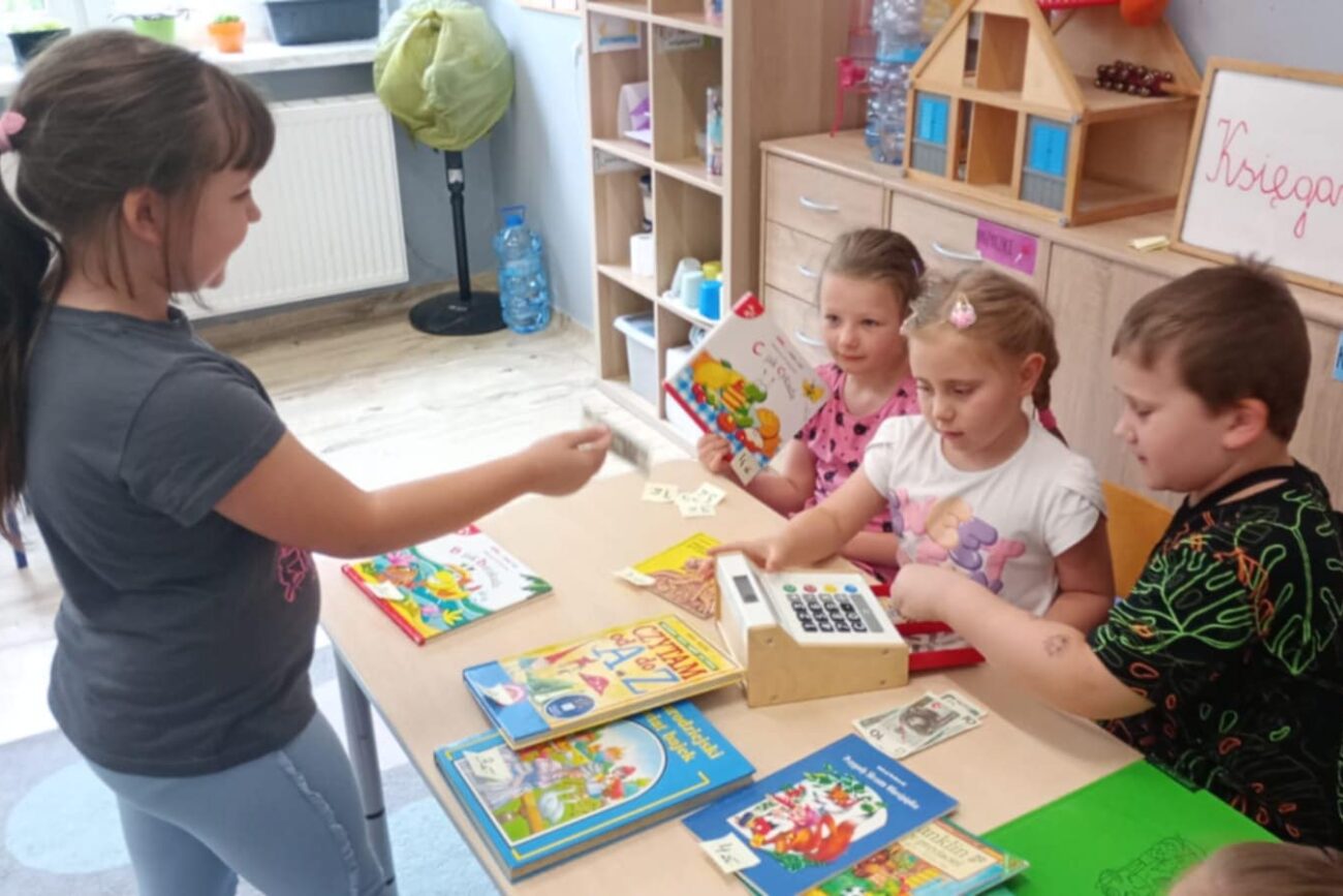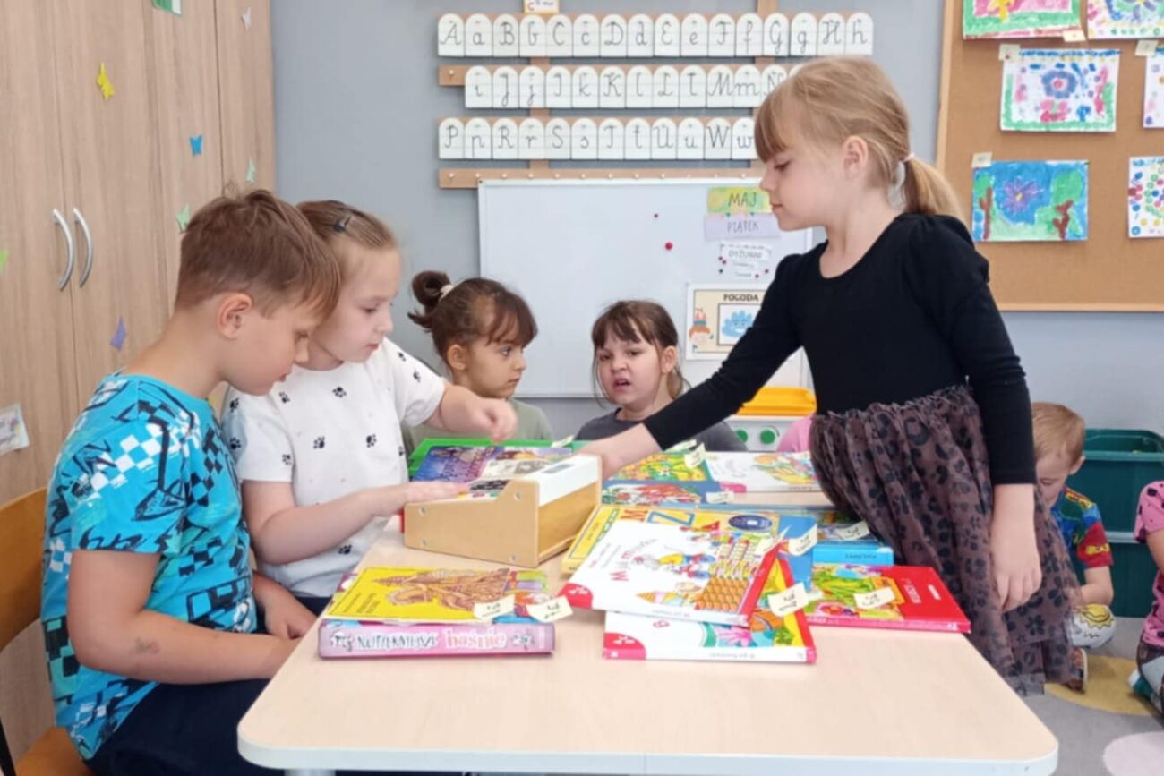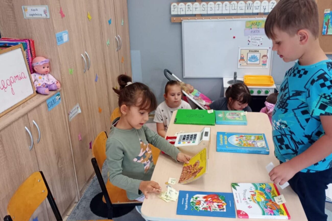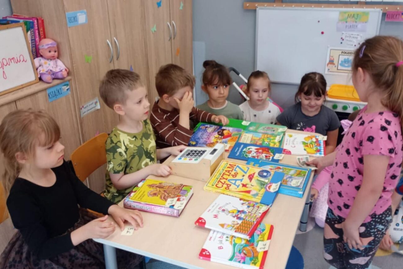 Grupa Biedronek poznawała tematykę związaną z bajkami, baśniami, legendami. Dzieci poznały zasady dbania o książki. Grupa wykonała zakładki do książek, swoje książki, które stworzyły przedszkolną biblioteczkę. Rodzice mogli oglądać wytwory dzieci na szkolnym korytarzu. Biedronki poznały cyfry 0 i 10 oraz literę Ł. Dzieci słuchały z zaciekawieniem polskich legend wykonując liczne zadania związane z bohaterami. Biedronki stworzyły w sali księgarnię, ucząc się poprzez zabawę przeliczania pieniędzy, wydawania reszty.