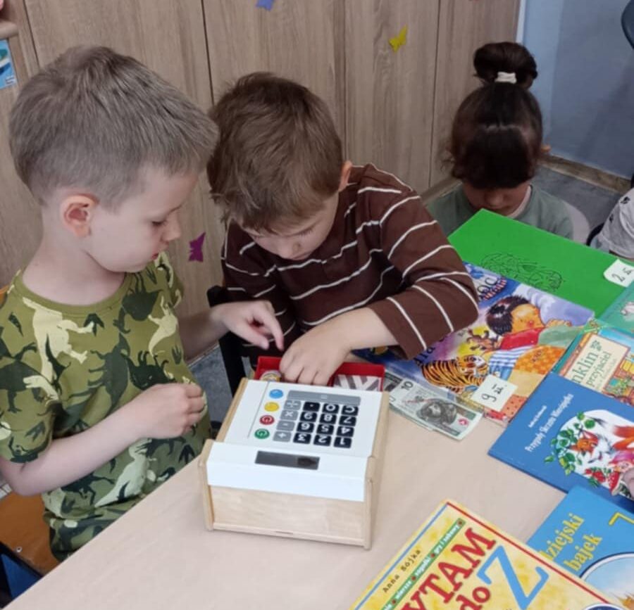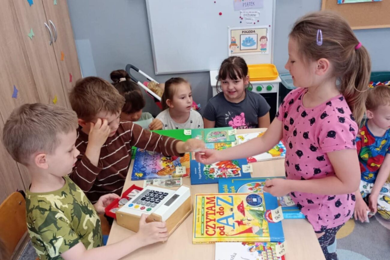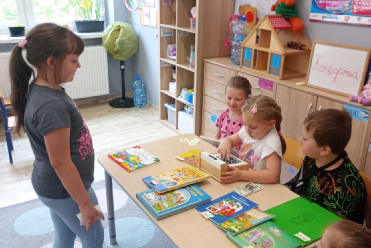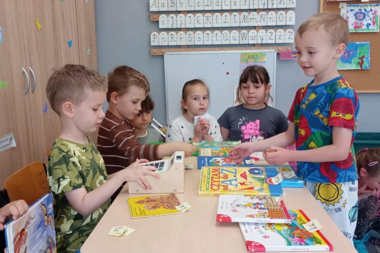 Grupa Biedronek poznawała tematykę związaną z bajkami, baśniami, legendami. Dzieci poznały zasady dbania o książki. Grupa wykonała zakładki do książek, swoje książki, które stworzyły przedszkolną biblioteczkę. Rodzice mogli oglądać wytwory dzieci na szkolnym korytarzu. Biedronki poznały cyfry 0 i 10 oraz literę Ł. Dzieci słuchały z zaciekawieniem polskich legend wykonując liczne zadania związane z bohaterami. Biedronki stworzyły w sali księgarnię, ucząc się poprzez zabawę przeliczania pieniędzy, wydawania reszty.
