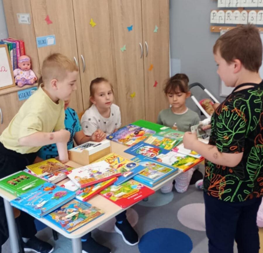 Grupa: „Motylki”w minionych tygodniach rozmawiała o książkach, poznając bohaterów ze znanych bajek i utworów literatury dziecięcej. Uczestniczyła w warsztatach bibliotecznych – zorganizowanych przez Filię Miejskiej Biblioteki Publicznej w POK- Kazimierz -Górniczy. Dzieci utrwaliły zasady korzystania z biblioteki, wypożyczania książek. Wykonywały pracę plastyczną, poprzez zilustrowanie własnej książki.