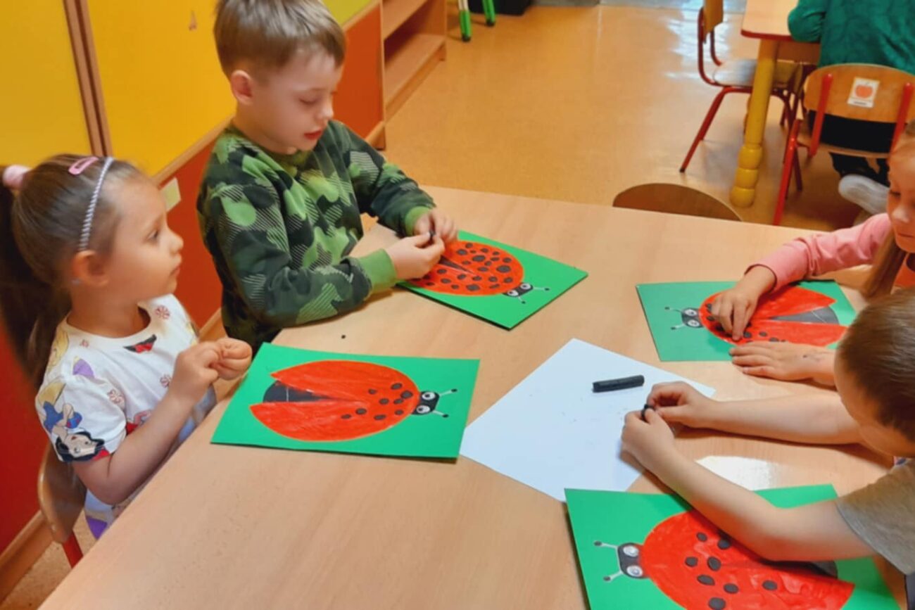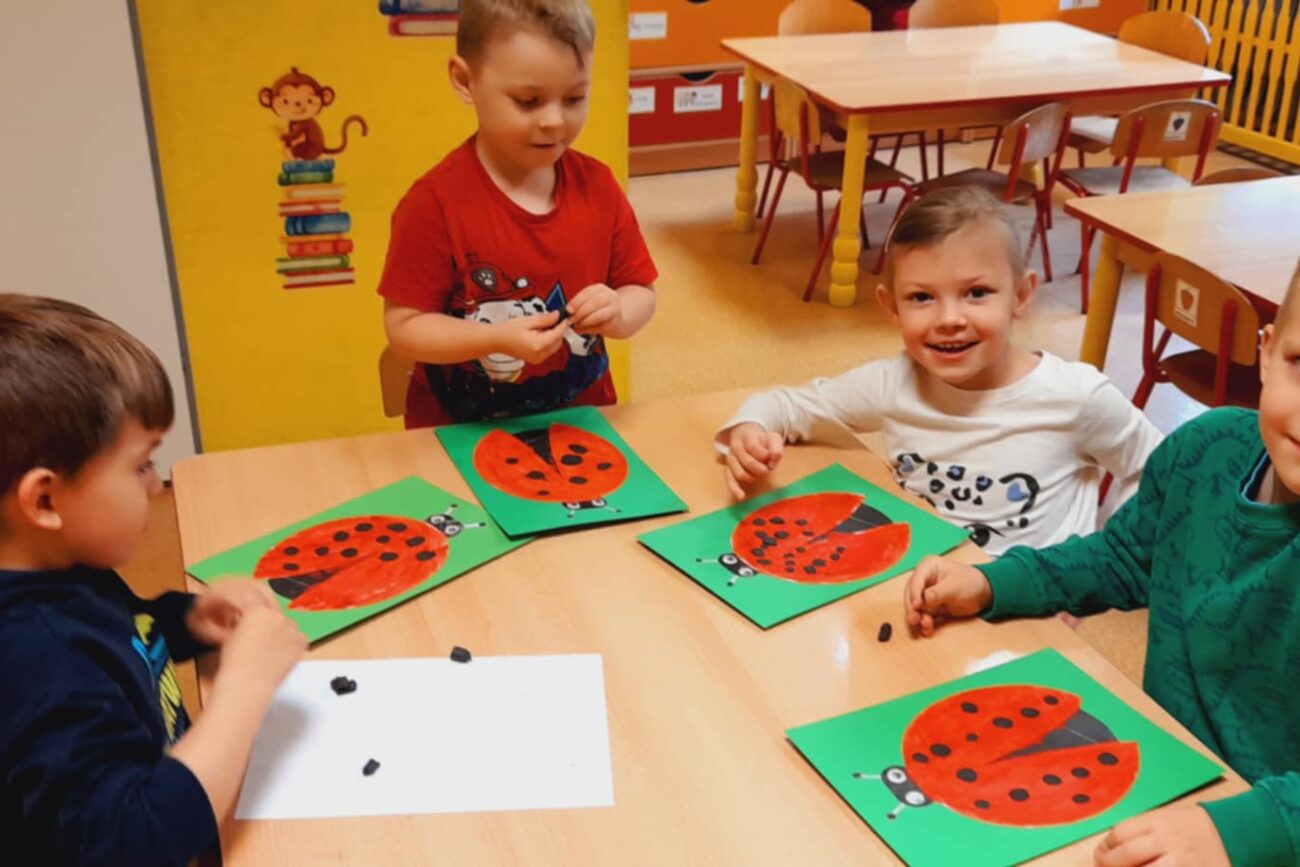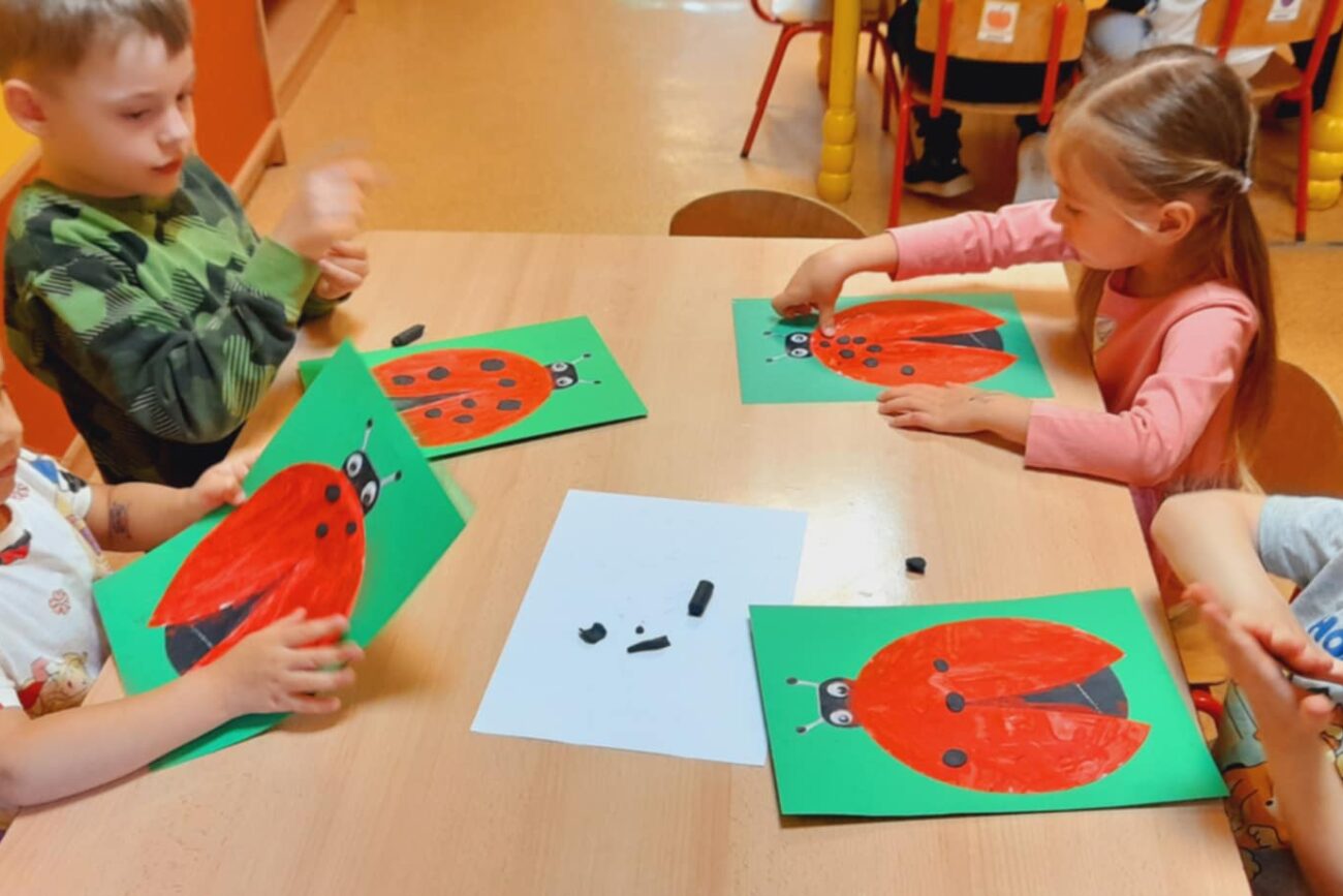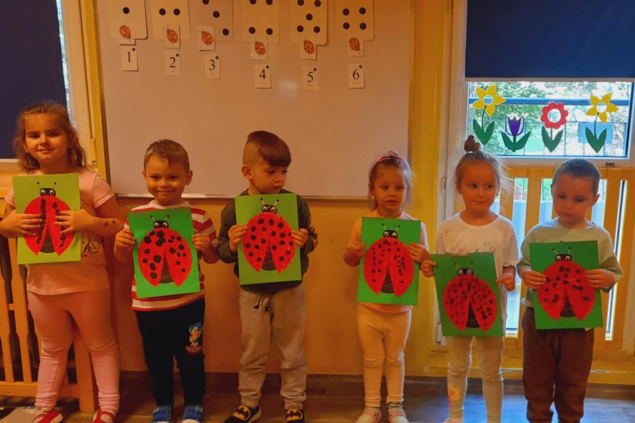 Poznały ekosystem łąki wraz z jej mieszkańcami i wybraną roślinnością. Wykonywały prace manualne z wykorzystaniem różnych technik plastycznych: „Biedronka”, „Motyl”.