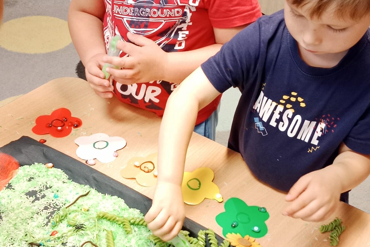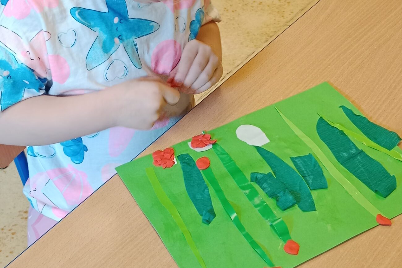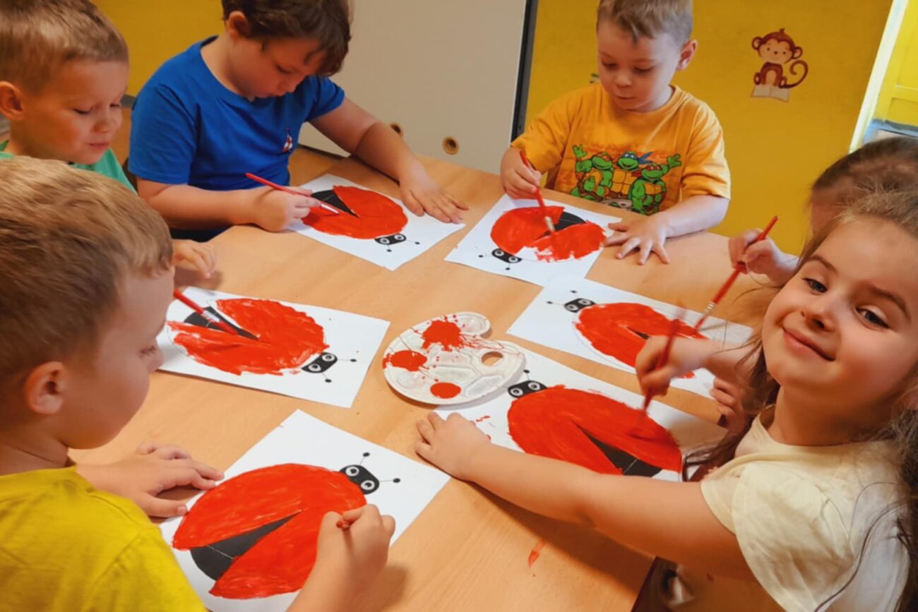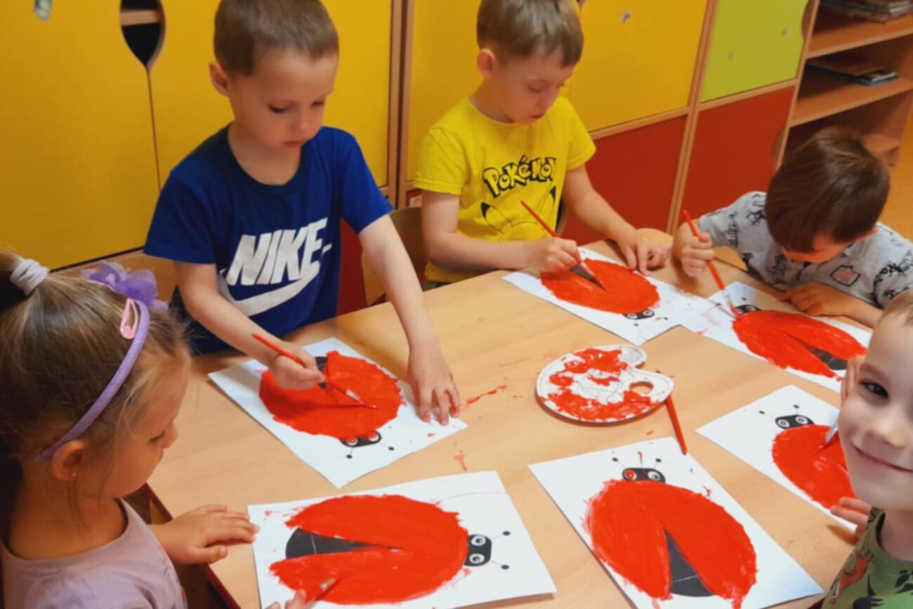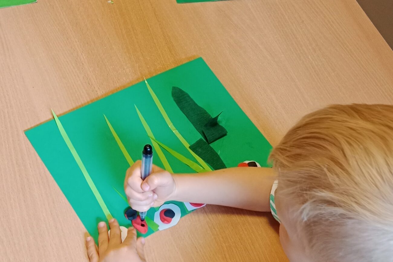 Poznały ekosystem łąki wraz z jej mieszkańcami i wybraną roślinnością. Wykonywały prace manualne z wykorzystaniem różnych technik plastycznych: „Biedronka”, „Motyl”.