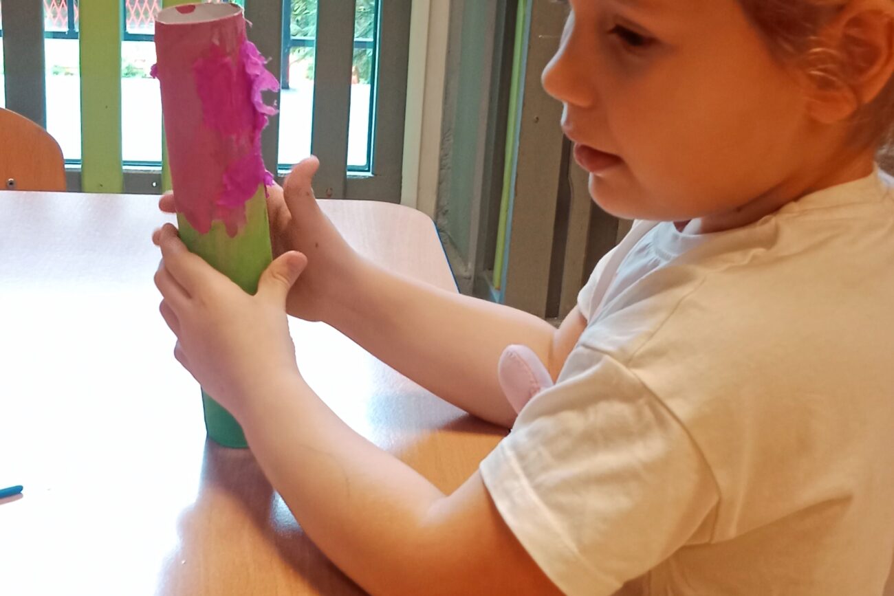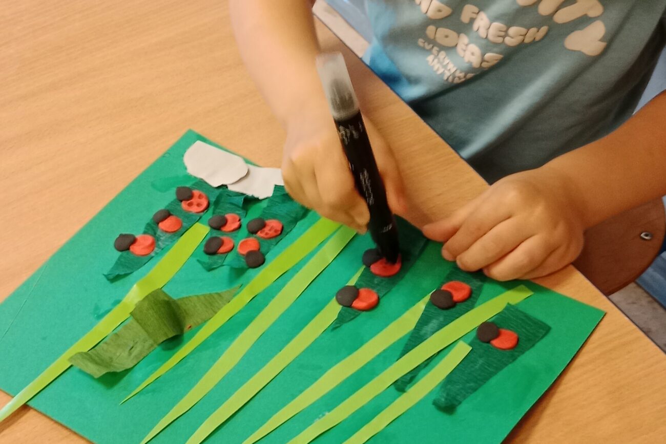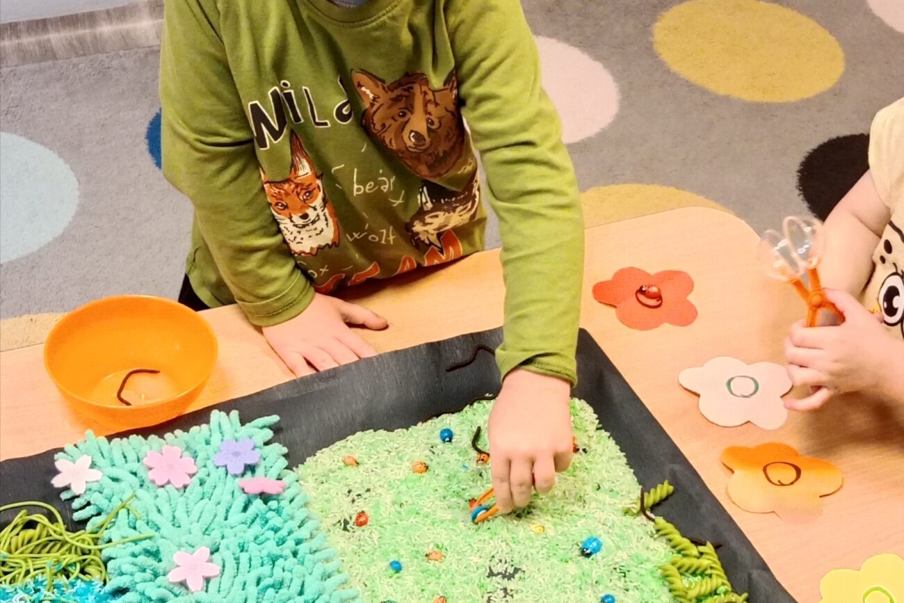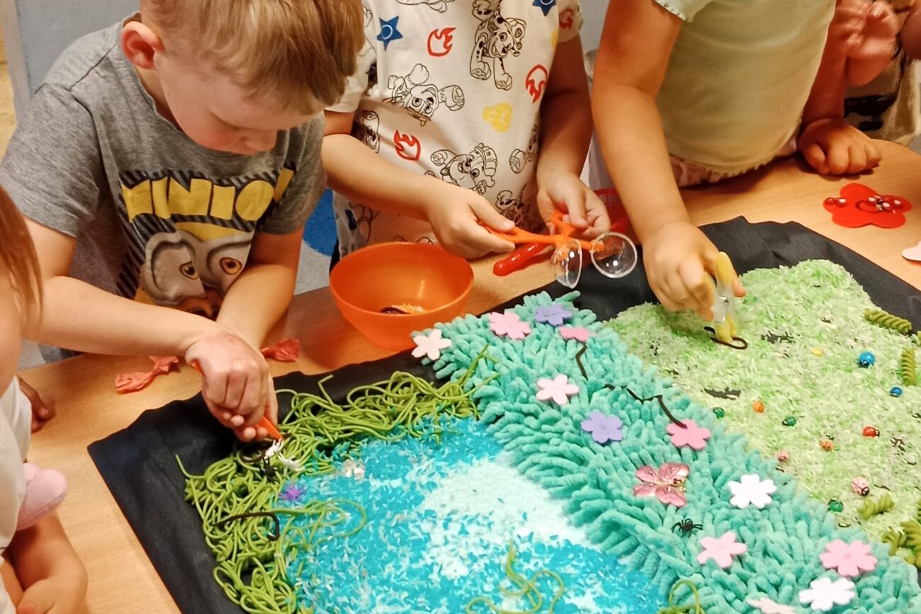 Poznały ekosystem łąki wraz z jej mieszkańcami i wybraną roślinnością. Wykonywały prace manualne z wykorzystaniem różnych technik plastycznych: „Biedronka”, „Motyl”.