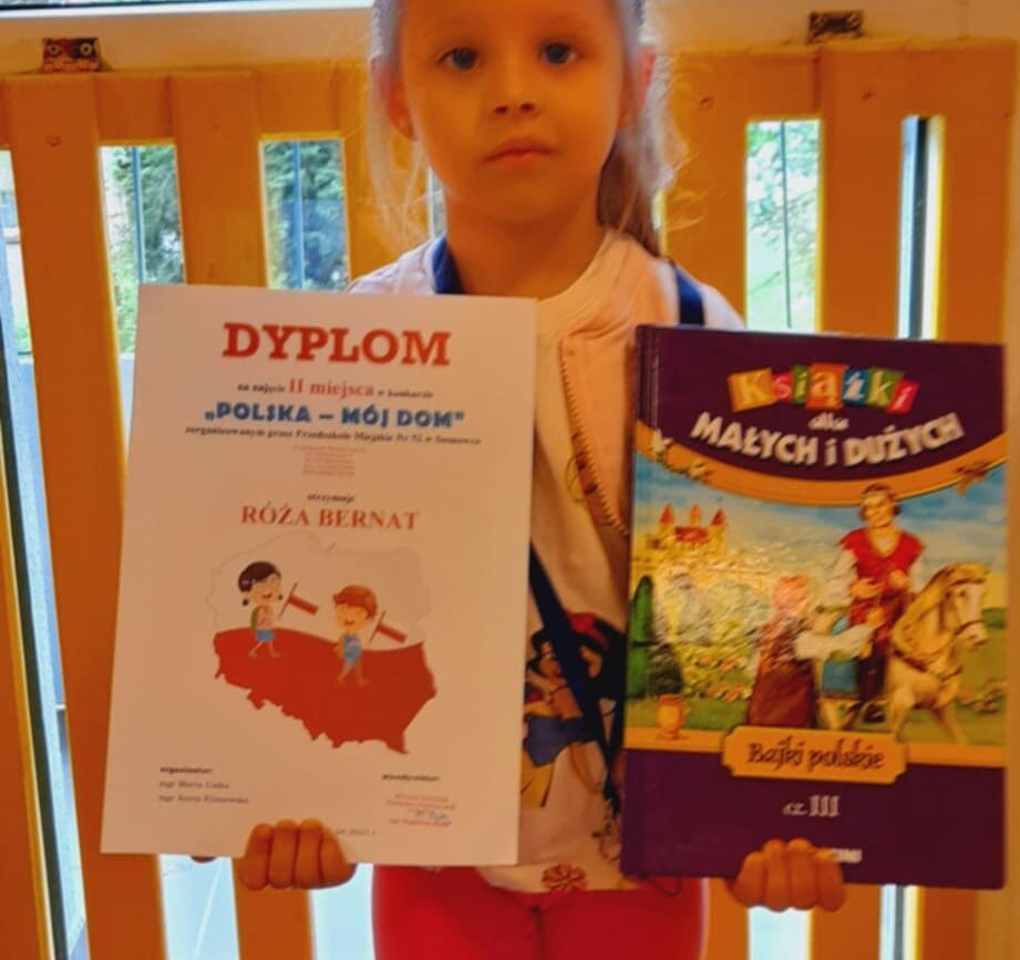 W konkursie: „Polska- mój dom” – zorganizowanym przez Przedszkole Miejskie nr 52 w Sosnowcu -II miejsce zajęła Róża B.