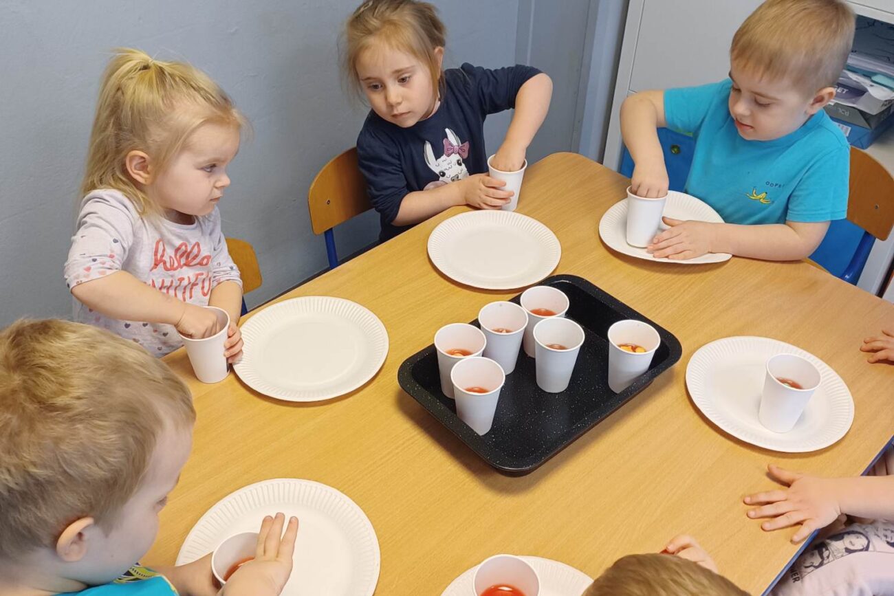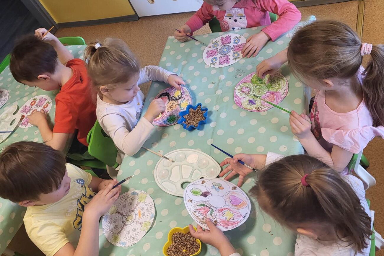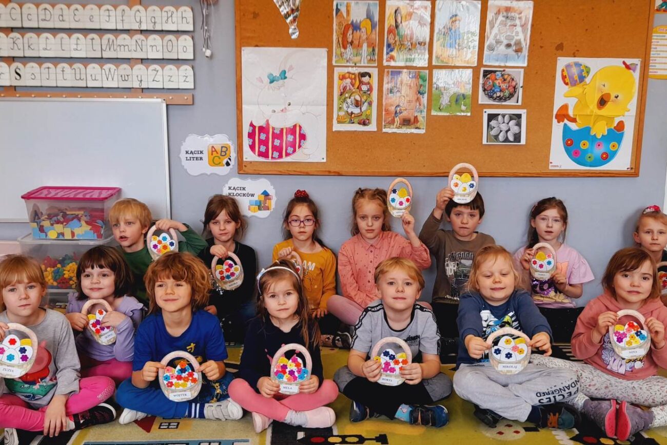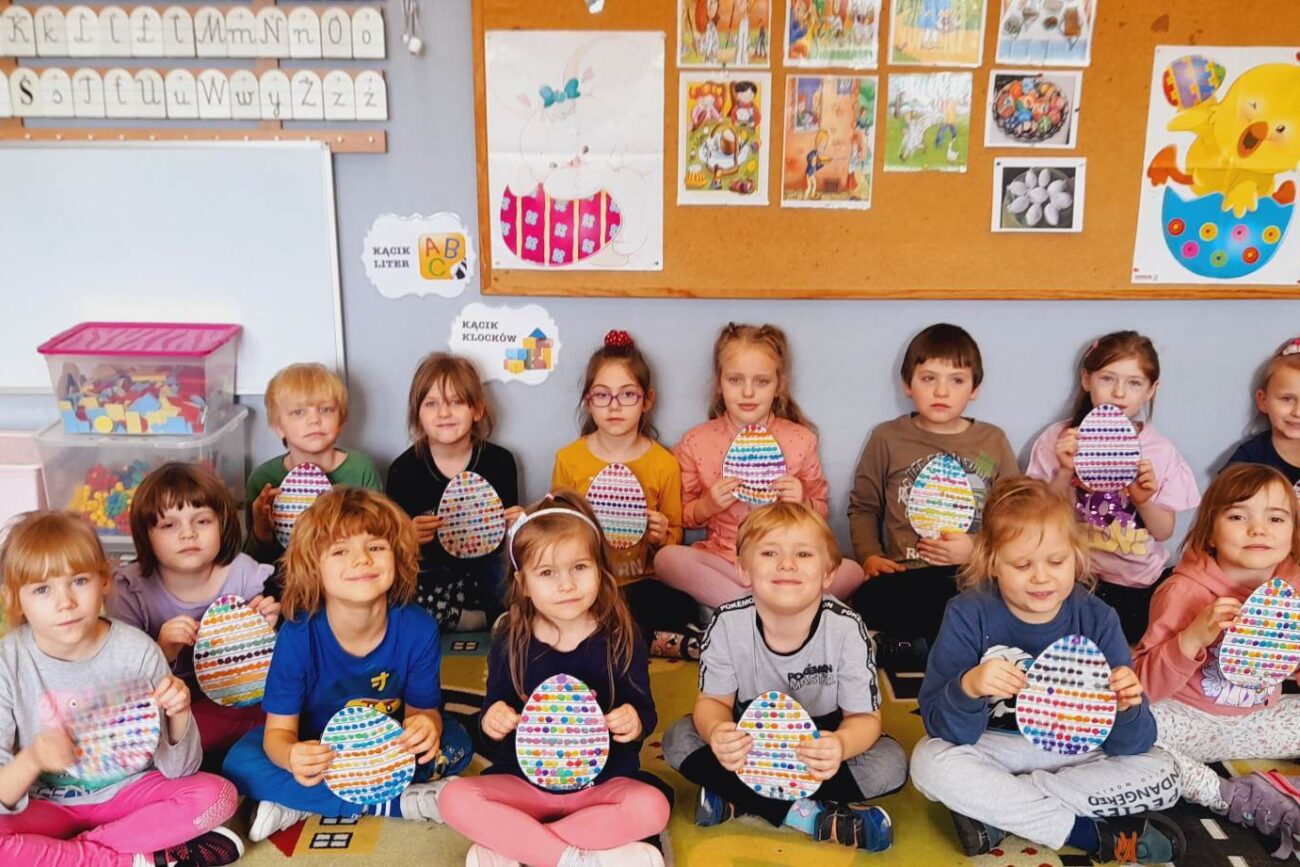 Grupa „Biedronki” poznała wielkanocne tradycje, wykonywała pracę plastyczną, poprzez wylepianie konturu jajka plasteliną. Poprzez zabawę matematyczną: „Geometryczne porządki” klasyfikowała figury geometryczne ze względu na kształt i kolor oraz wyodrębniała spośród figur kształt „owal”. Uczestniczyła w zajęciach w bibliotece szkolnej, gdzie słuchała bajki oraz podziwiała prace konkursowe o Mikołaju Koperniku. Dzieci wykonały kartkę wielkanocną według instrukcji, uczestniczyły w eksperymencie „Jajo w occie” samodzielnie wysuwając wnioski, a także uczestniczyły w grze matematycznej z elementami ruchu.