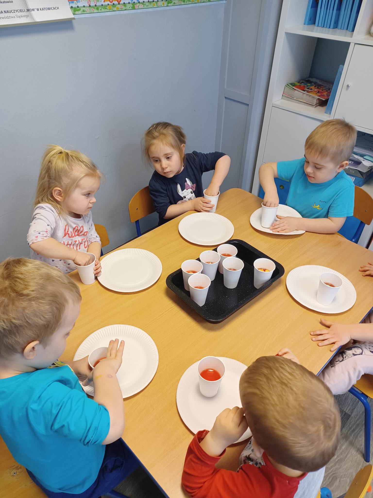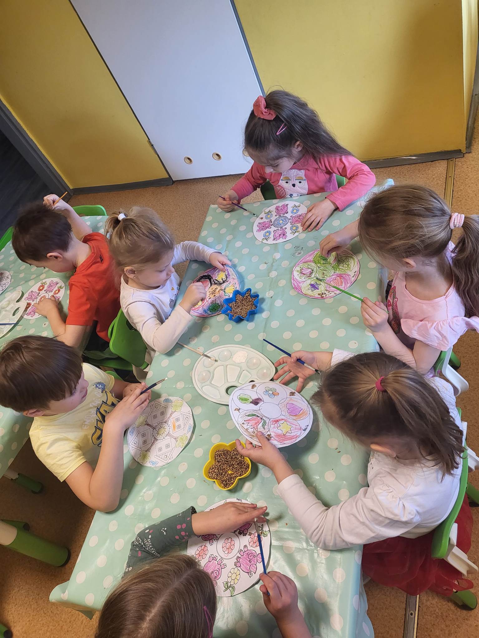 Grupa „Biedronki” poznała wielkanocne tradycje, wykonywała pracę plastyczną, poprzez wylepianie konturu jajka plasteliną. Poprzez zabawę matematyczną: „Geometryczne porządki” klasyfikowała figury geometryczne ze względu na kształt i kolor oraz wyodrębniała spośród figur kształt „owal”. Uczestniczyła w zajęciach w bibliotece szkolnej, gdzie słuchała bajki oraz podziwiała prace konkursowe o Mikołaju Koperniku. Dzieci wykonały kartkę wielkanocną według instrukcji, uczestniczyły w eksperymencie „Jajo w occie” samodzielnie wysuwając wnioski, a także uczestniczyły w grze matematycznej z elementami ruchu.