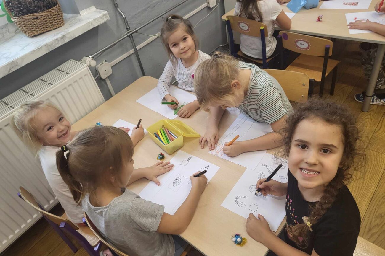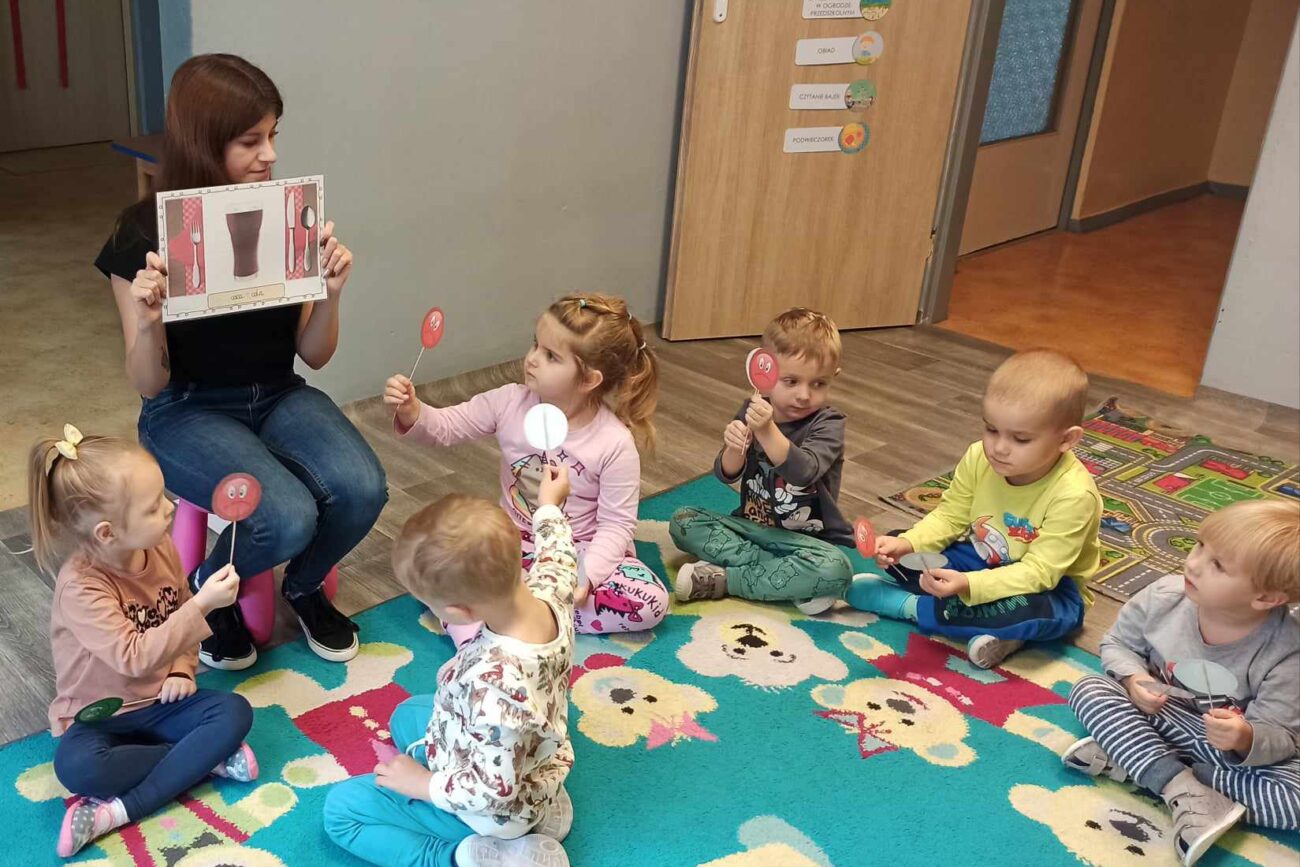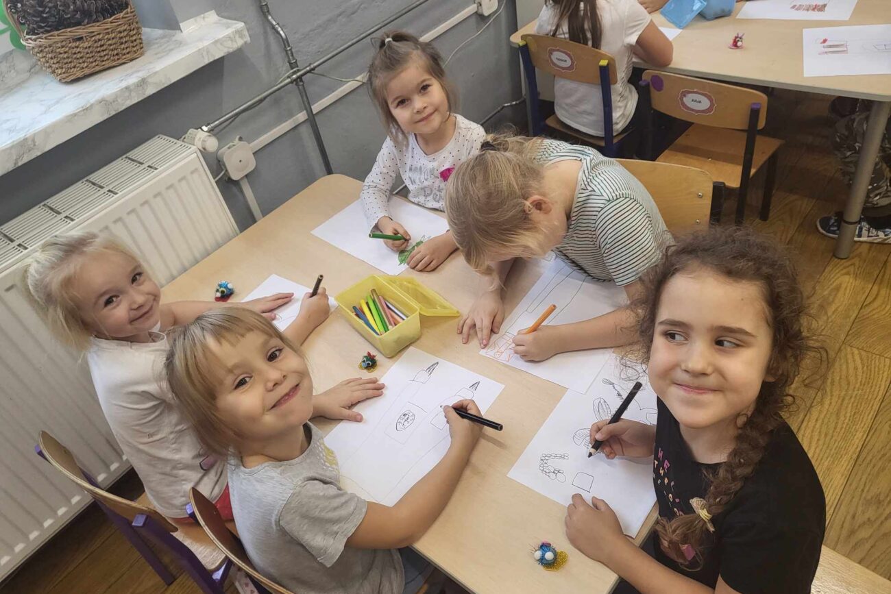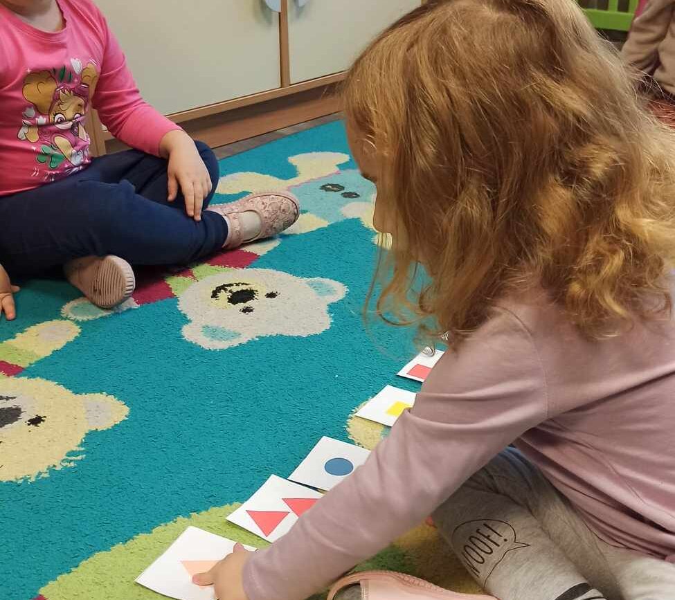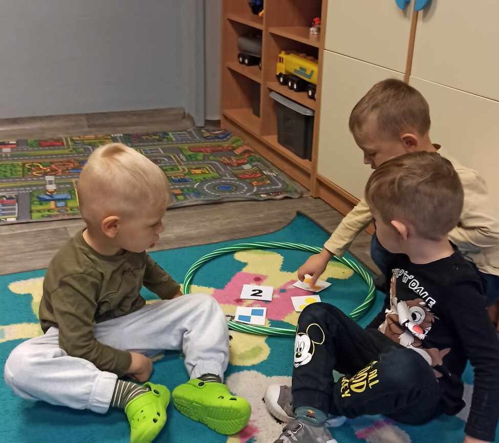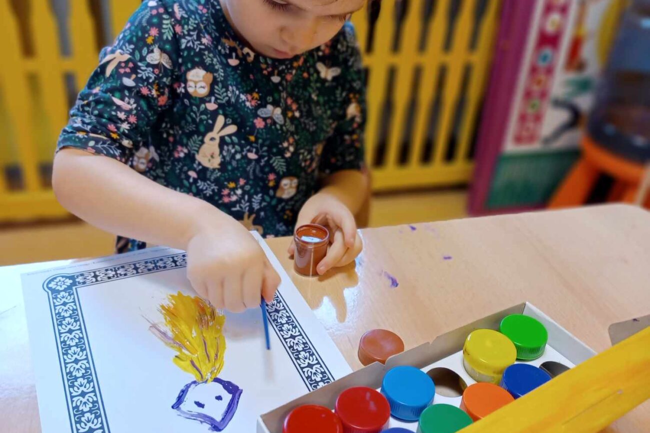 Dzieci z grupy „Misie” rozwiązywały zagadki dotyczące ubrań, które zakładamy jesienią i zimą, kształtowały swoją spostrzegawczość poprzez odnajdywanie par takich samych kaloszy. Z uwagą słuchały wiersza i patrzyły na świat przez „kolorowe” okulary. Poznały zawód malarza oraz jego narzędzia pracy. Układały rytmy, przeliczały elementy, a także wykonały pracę plastyczną.