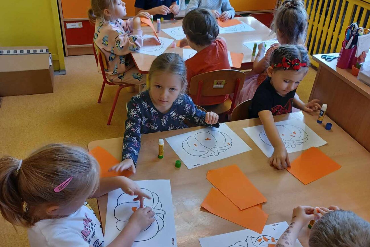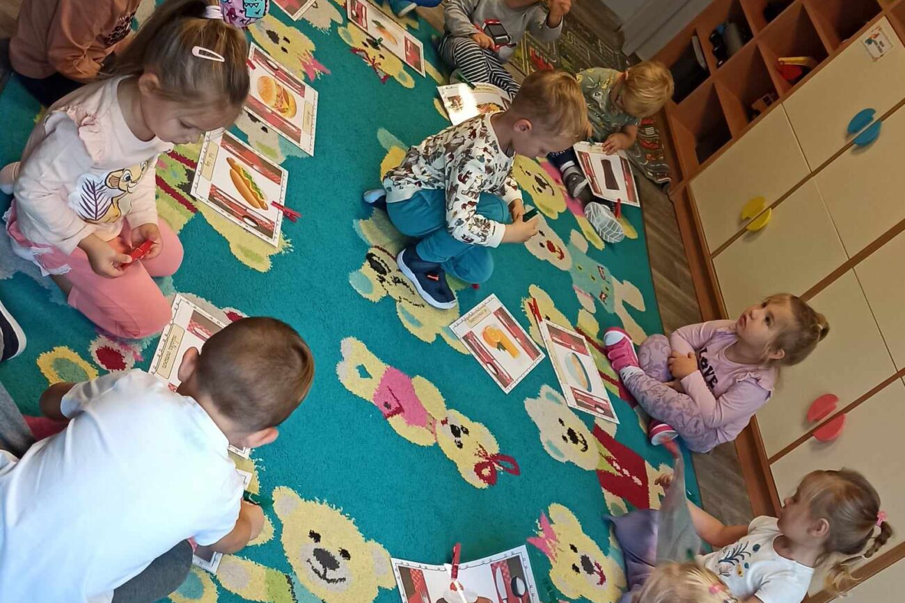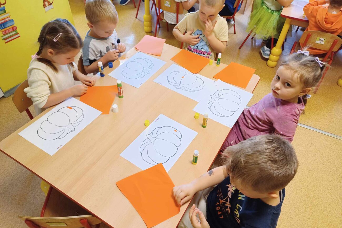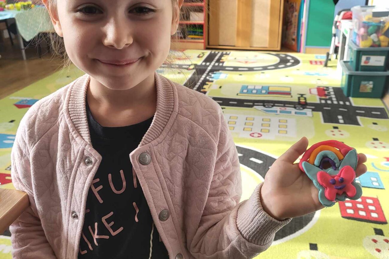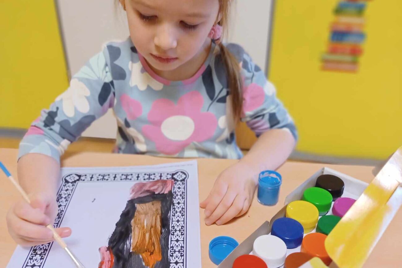 Dzieci z grupy „Misie” rozwiązywały zagadki dotyczące ubrań, które zakładamy jesienią i zimą, kształtowały swoją spostrzegawczość poprzez odnajdywanie par takich samych kaloszy. Z uwagą słuchały wiersza i patrzyły na świat przez „kolorowe” okulary. Poznały zawód malarza oraz jego narzędzia pracy. Układały rytmy, przeliczały elementy, a także wykonały pracę plastyczną.