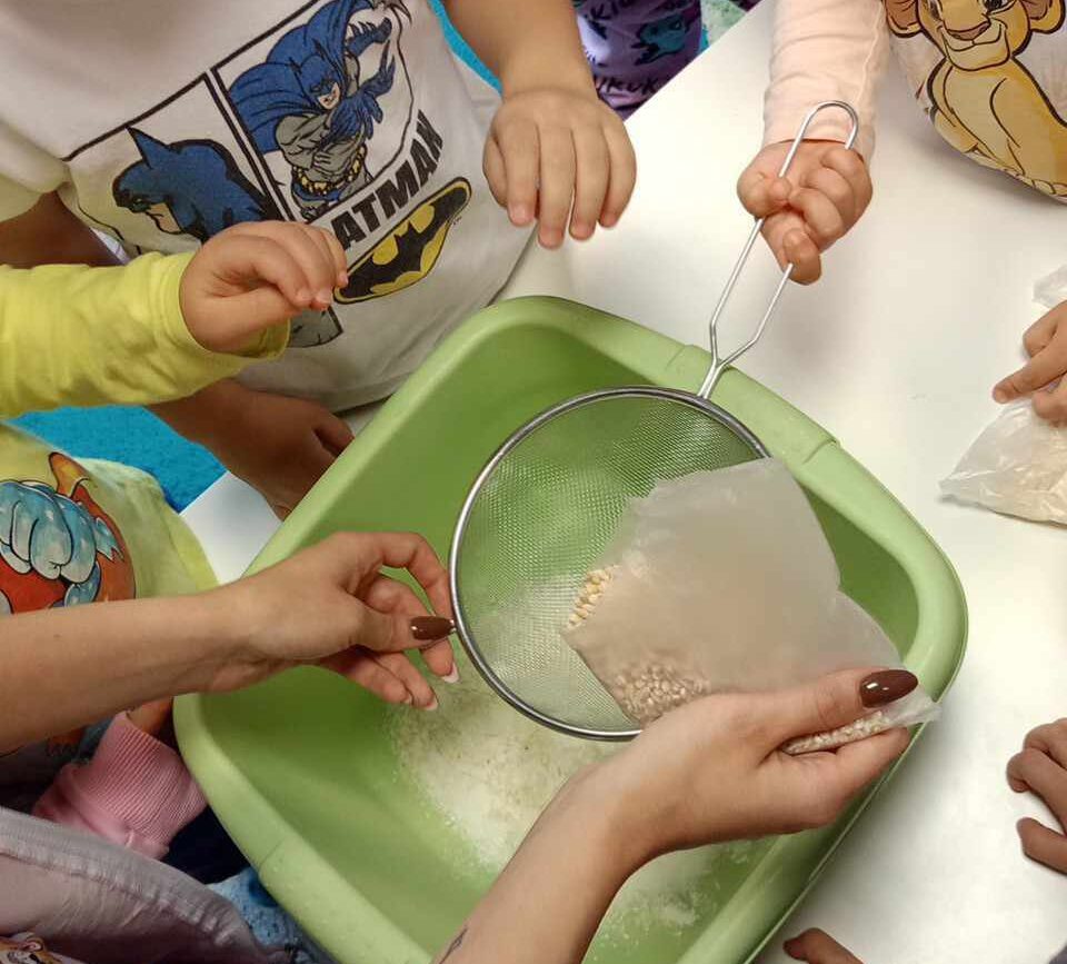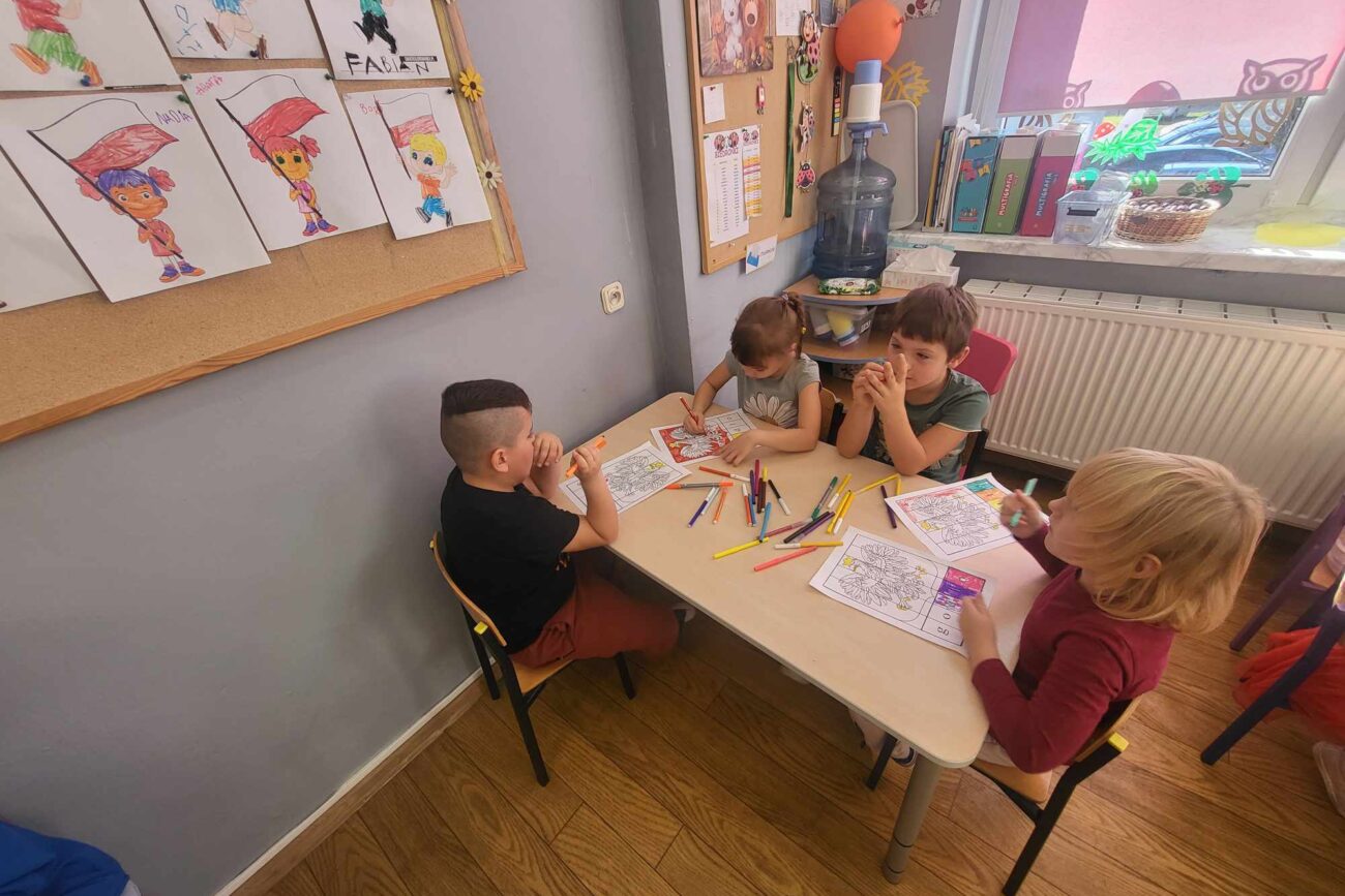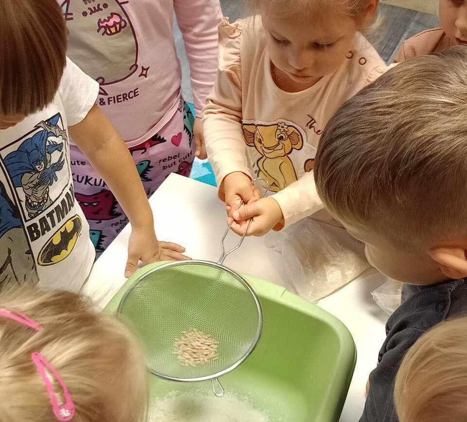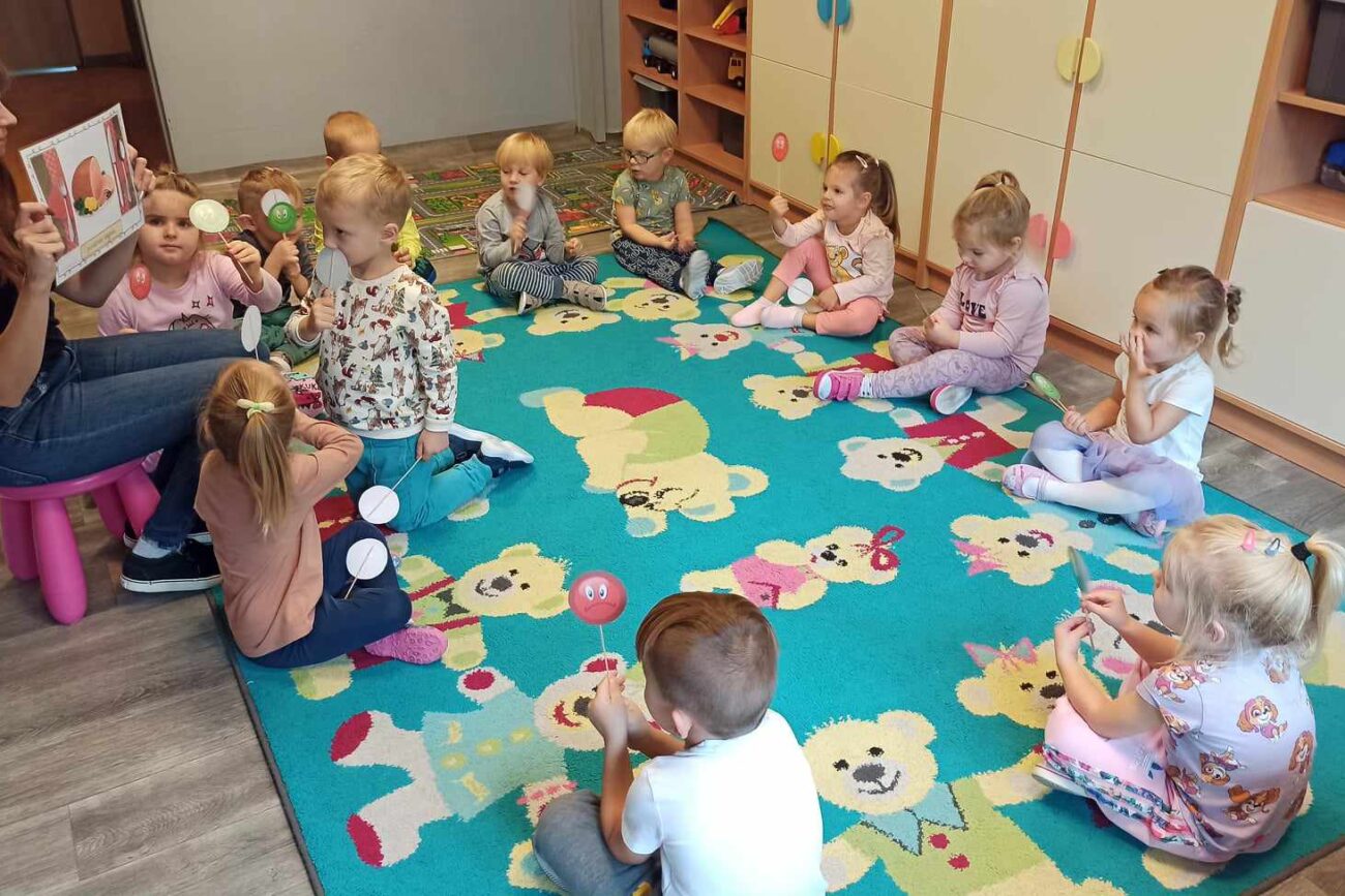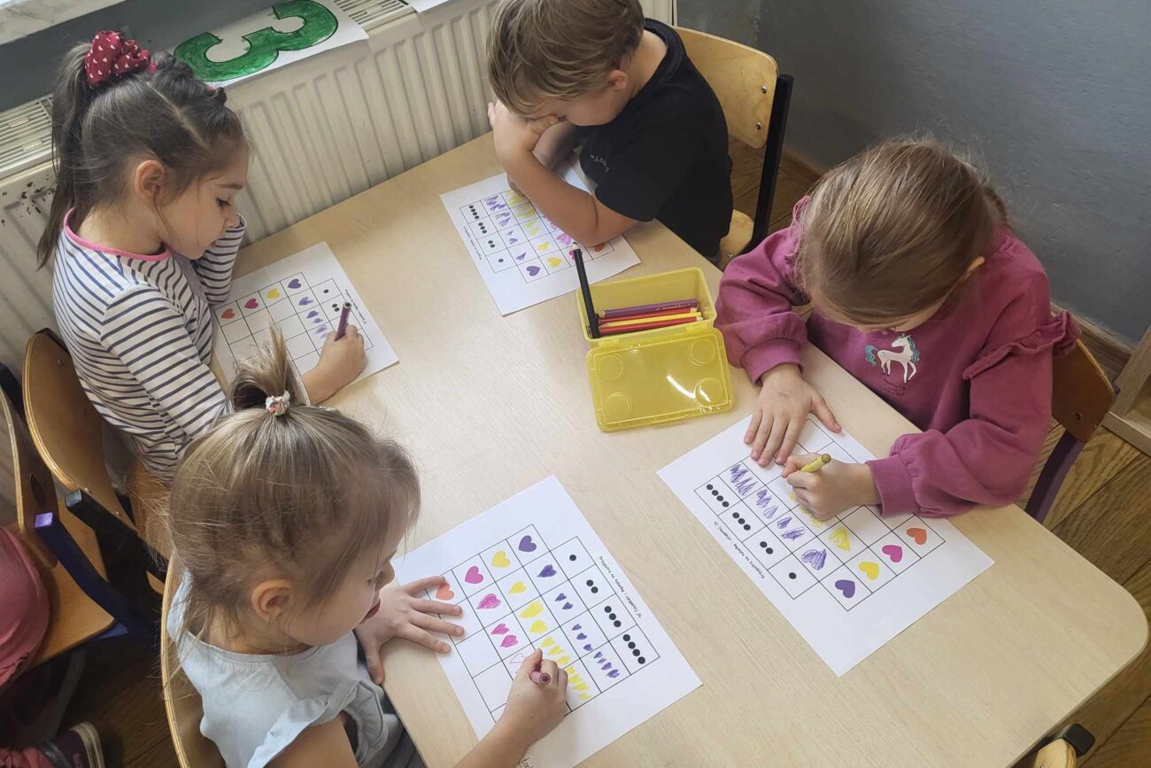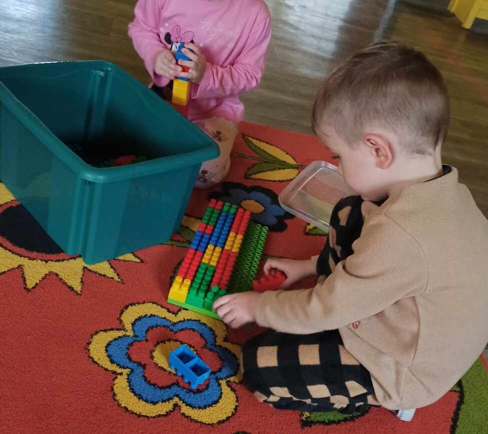 Dzieci z grupy „Misie” rozwiązywały zagadki dotyczące ubrań, które zakładamy jesienią i zimą, kształtowały swoją spostrzegawczość poprzez odnajdywanie par takich samych kaloszy. Z uwagą słuchały wiersza i patrzyły na świat przez „kolorowe” okulary. Poznały zawód malarza oraz jego narzędzia pracy. Układały rytmy, przeliczały elementy, a także wykonały pracę plastyczną.