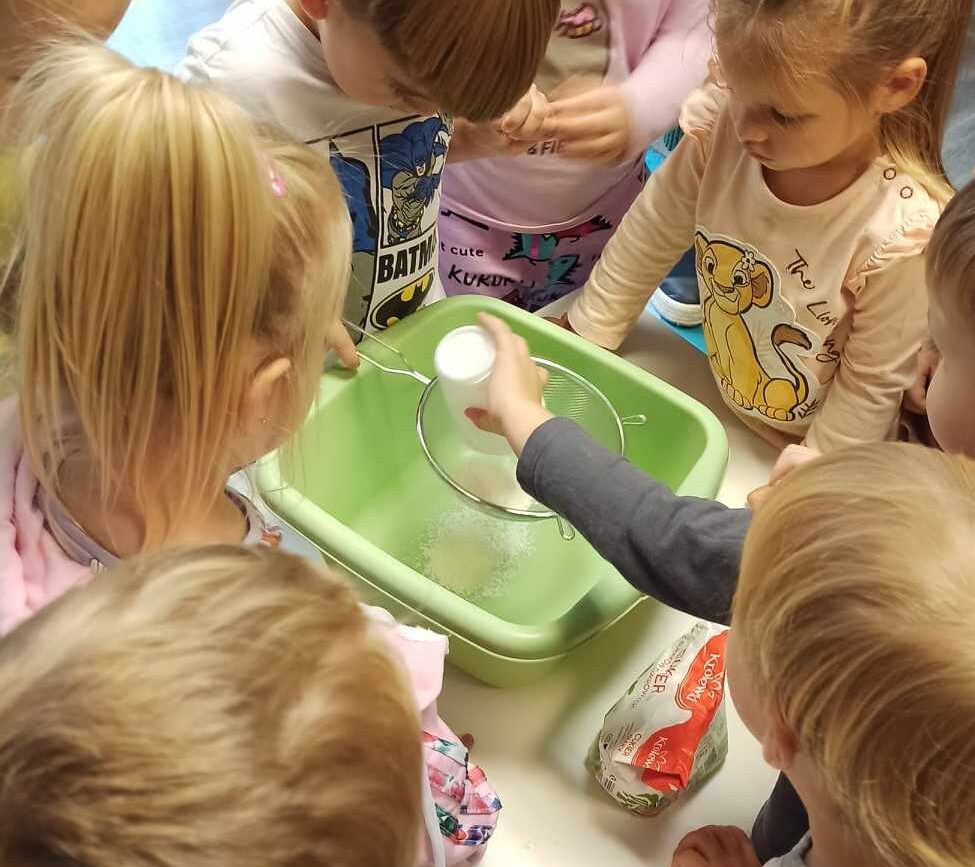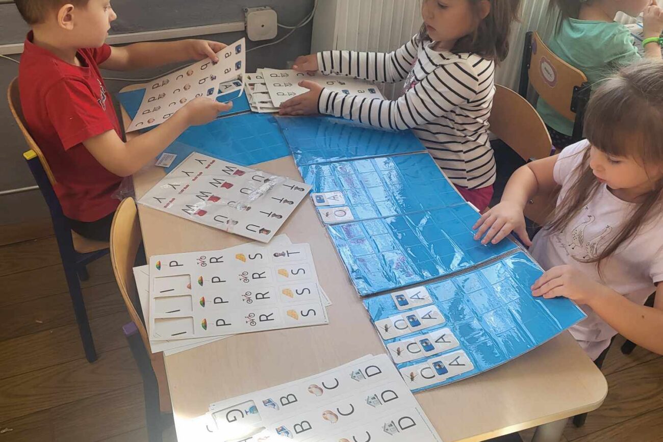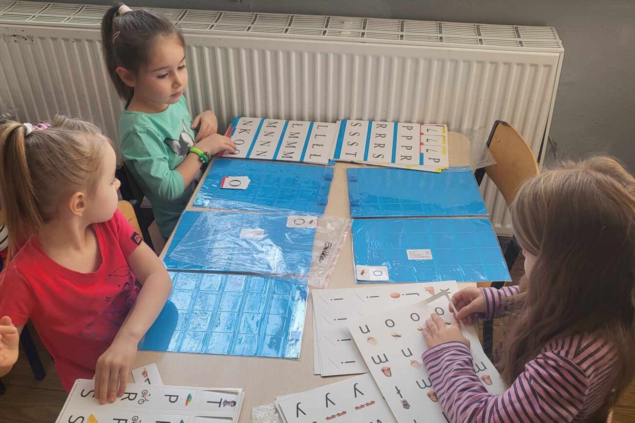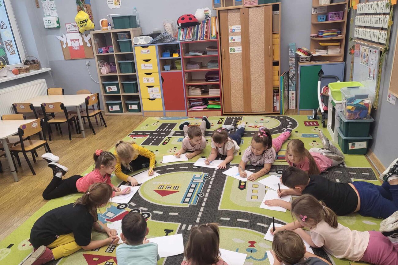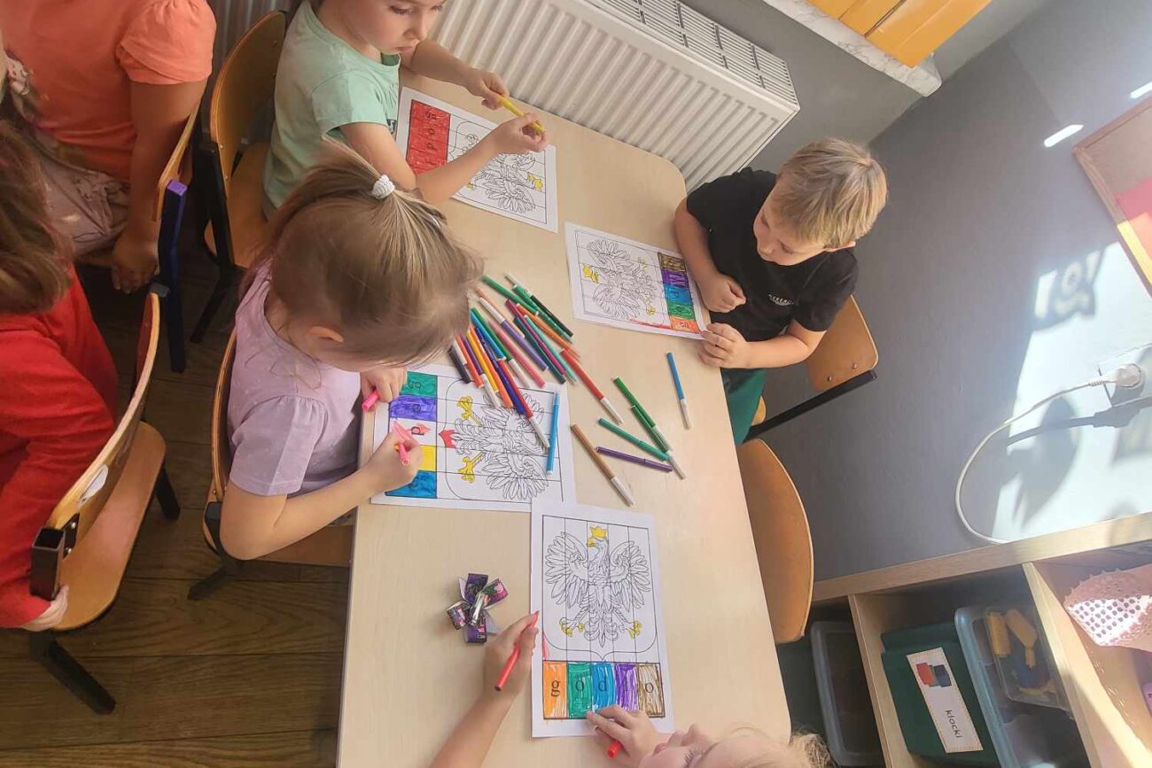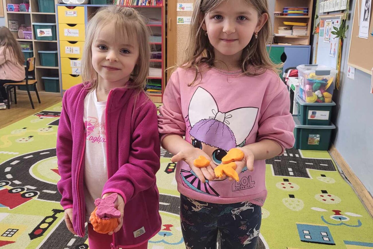Grupa „Biedronki” poznała sylwety sławnych Polaków i ciekawostki na ich temat, wykonywała flagę Polski techniką wypełniania kontur plasteliną. Doskonaliła umiejętność bezpiecznego i prawidłowego posługiwania się nożyczkami, poprzez wycinanie wzorów po śladzie. Grupa poznała również litery:”E-e”, których kontur wypełniała kawałkami z gazet, cyfrę 3, sylwety sławnych Polaków i ciekawostki na ich temat, wykonywała flagę Polski techniką wypełniania kontur plasteliną. Doskonaliła umiejętność bezpiecznego i prawidłowego posługiwania się nożyczkami, poprzez wycinanie wzorów po śladzie. Wykonywała pracę plastyczną techniką ” mokre w mokrym”. Nie zabrakło zabaw z użyciem liter oraz ćwiczeń w kodowaniu. W ramach innowacji: „Dotknij, poczuj, zobacz” Biedronki wykonywały zadania za pomocą ciastoliny.