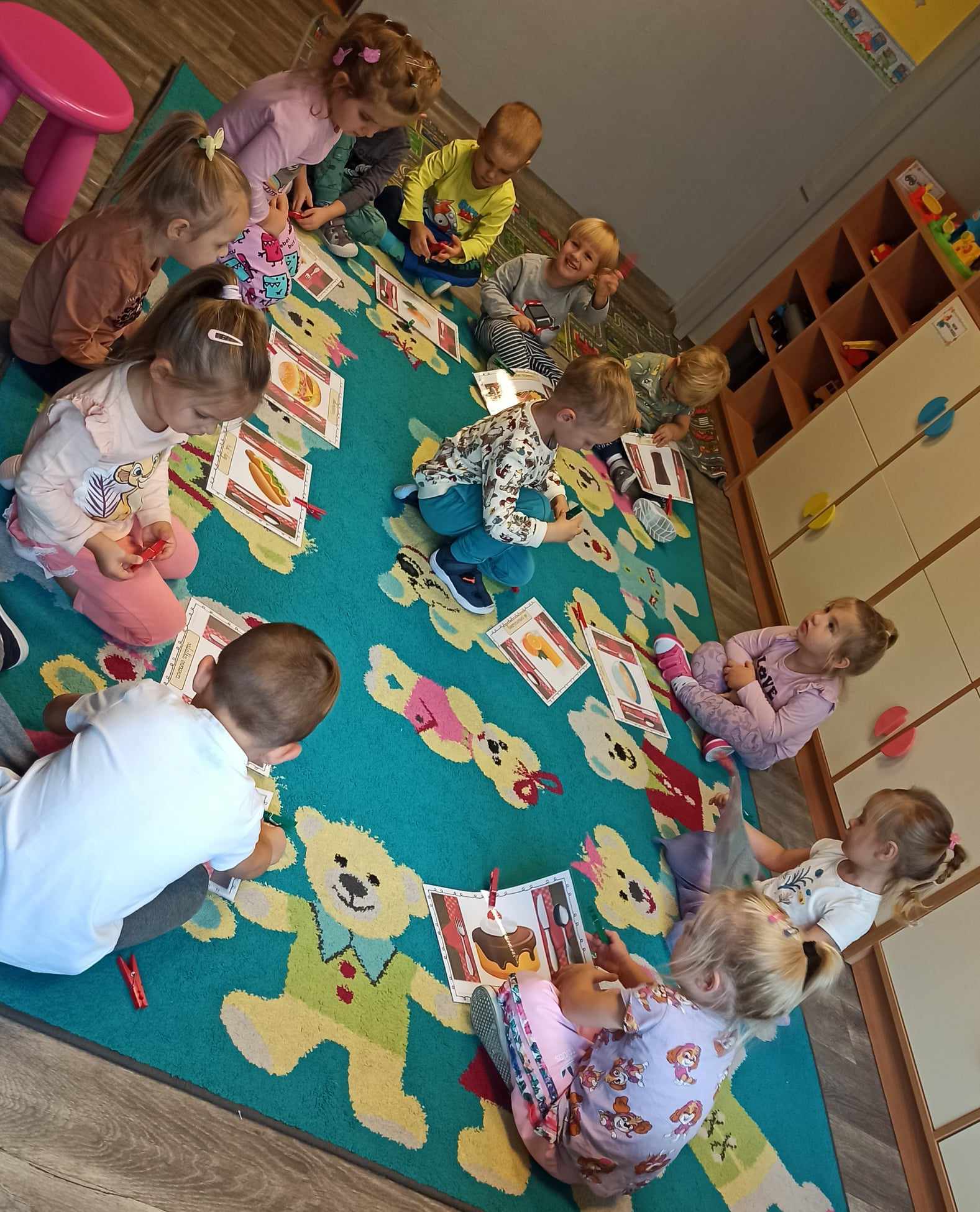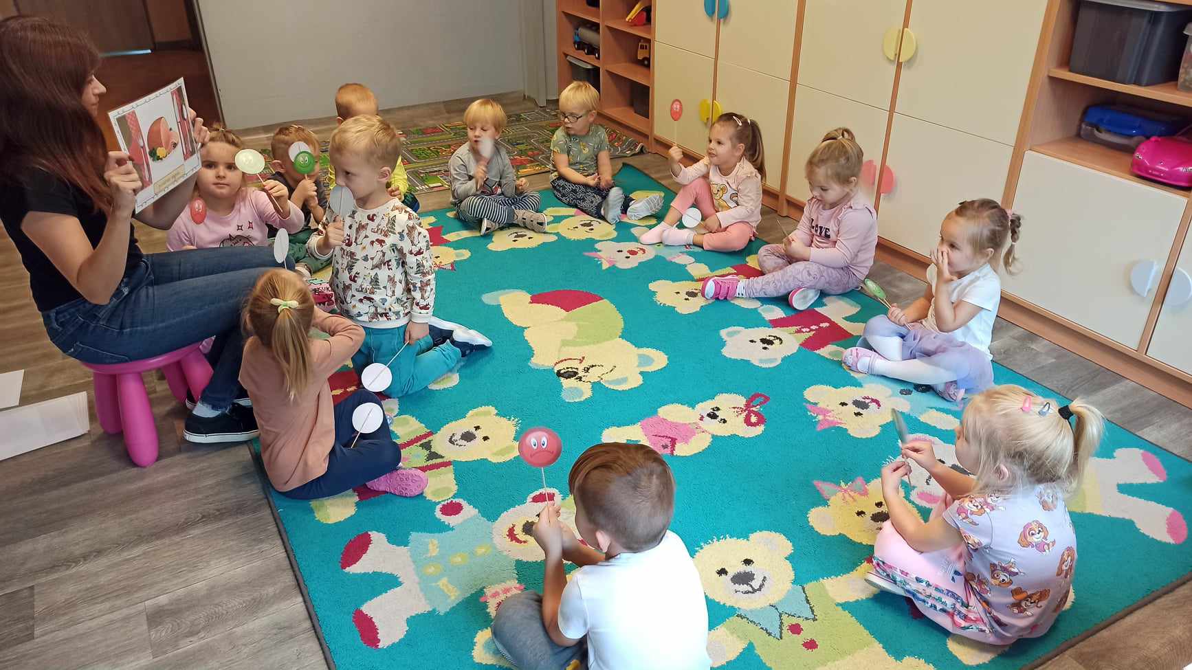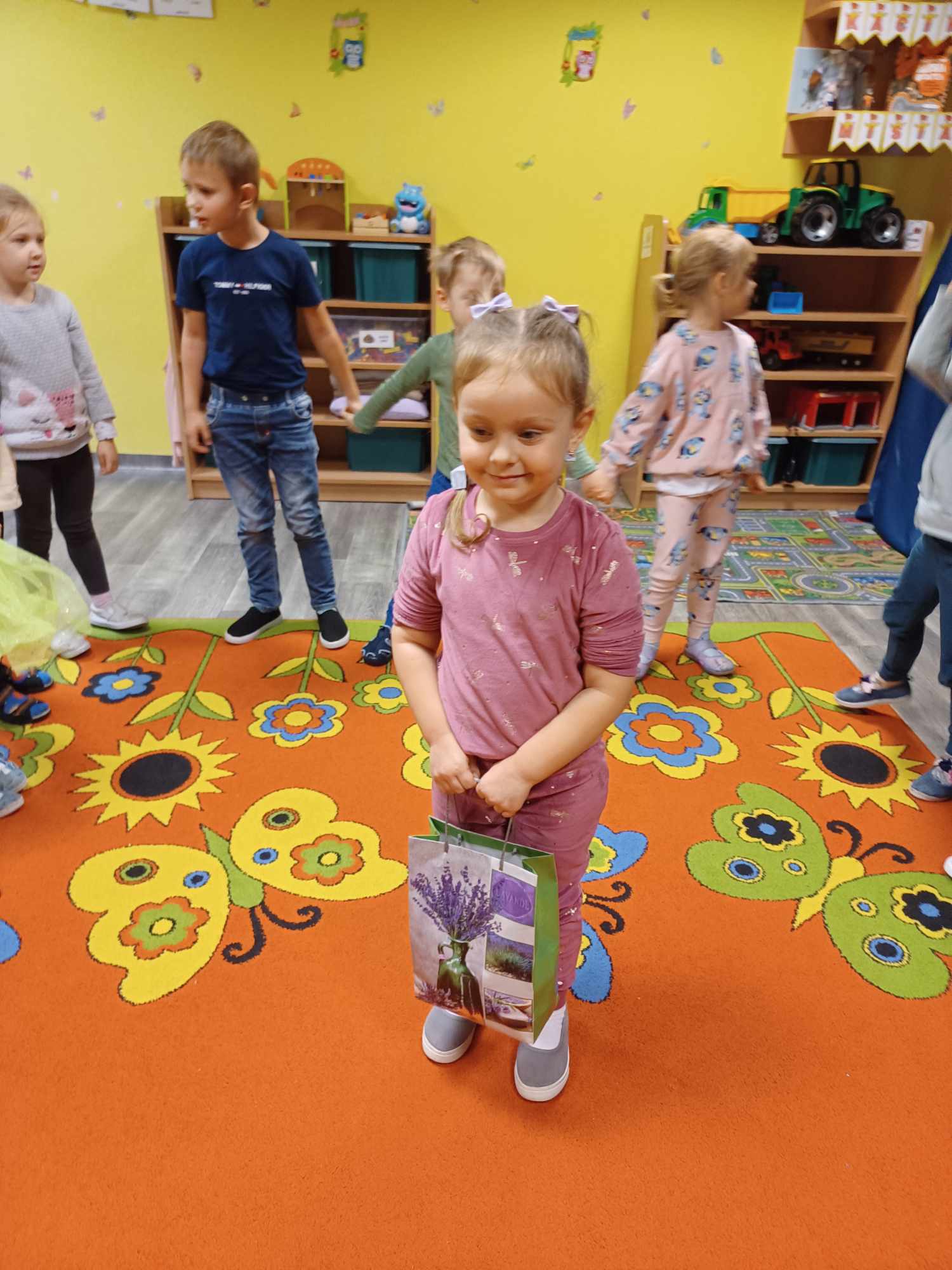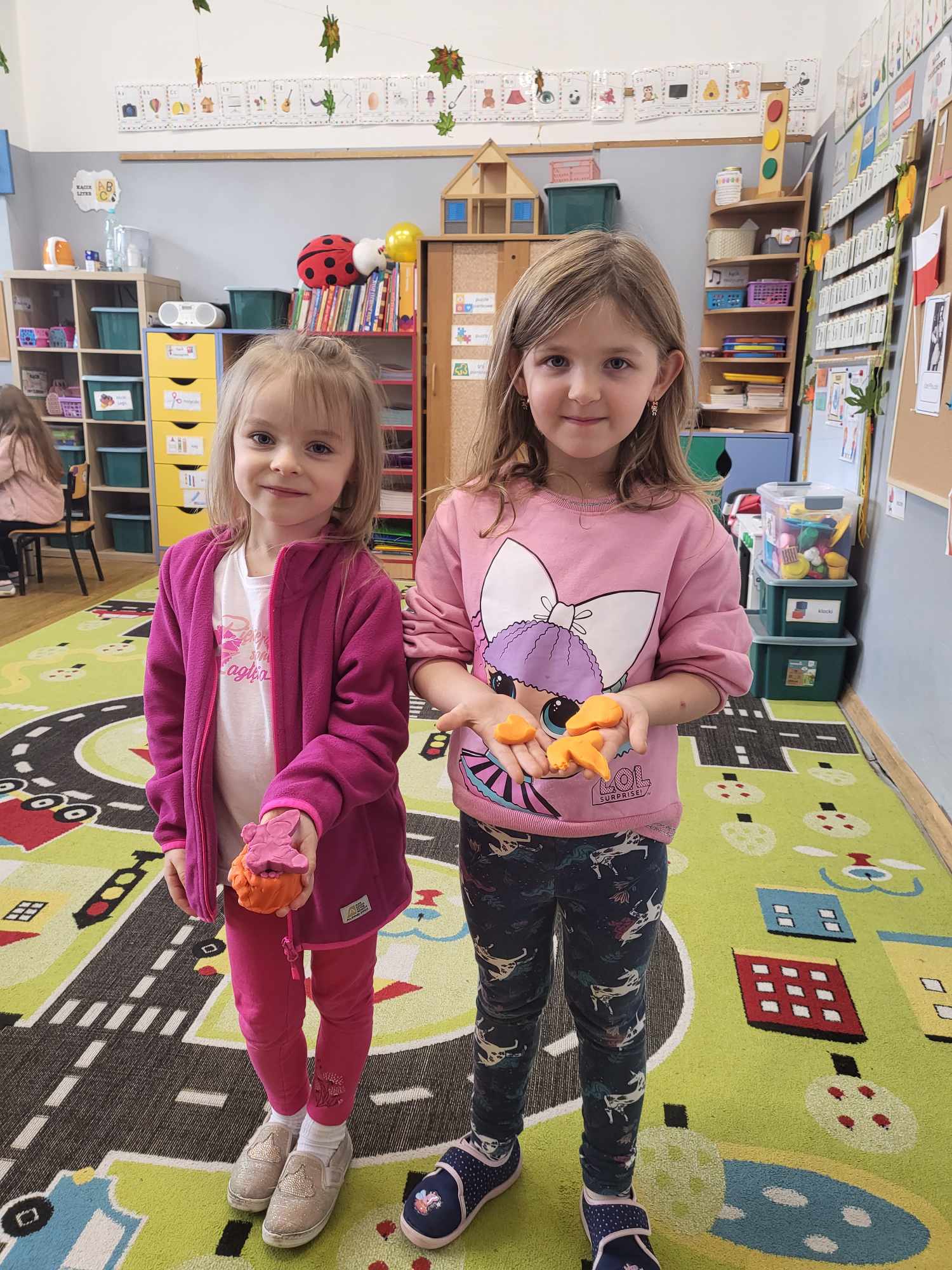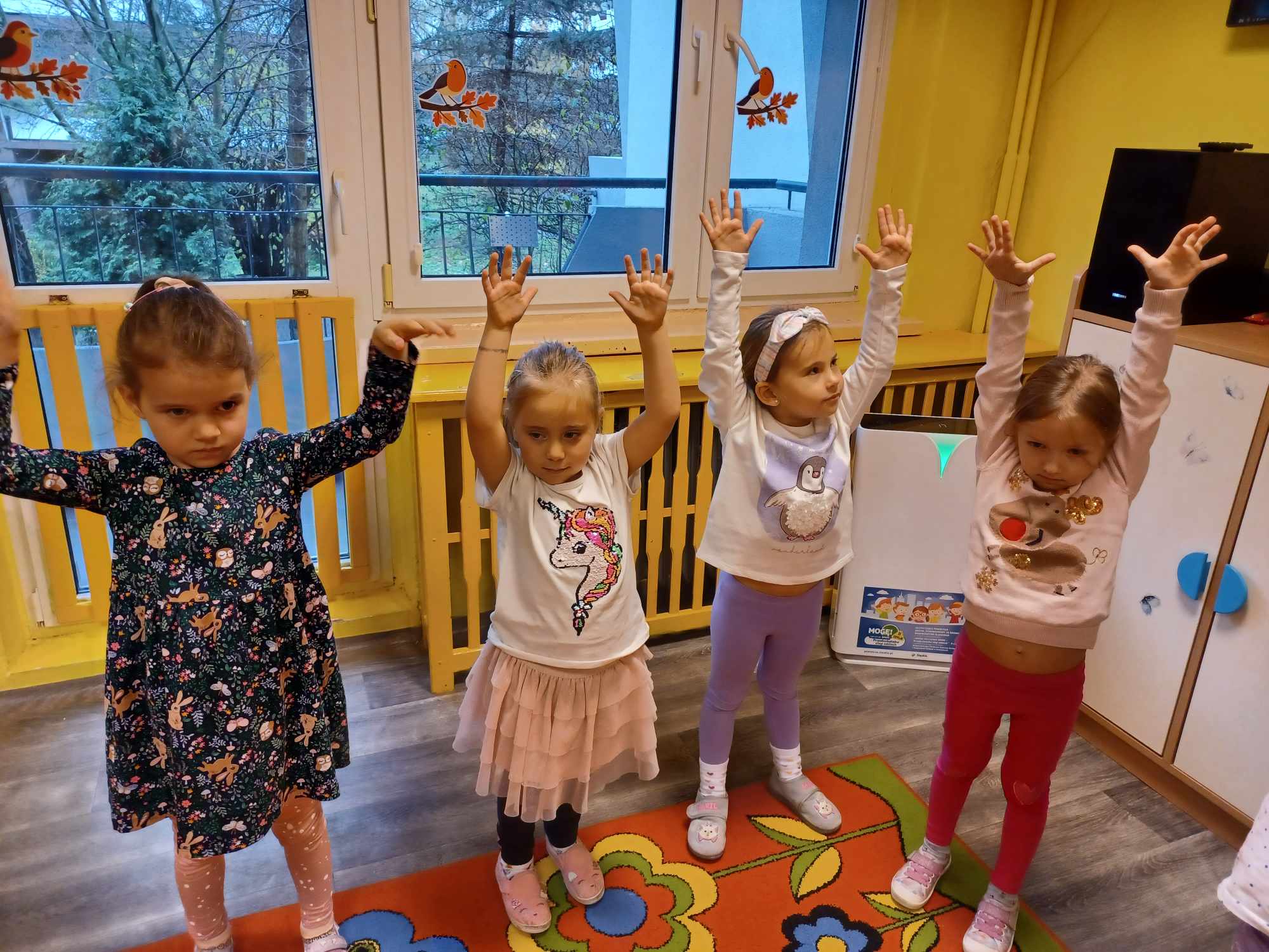 Dzieci z grupy „Misie” rozwiązywały zagadki dotyczące ubrań, które zakładamy jesienią i zimą, kształtowały swoją spostrzegawczość poprzez odnajdywanie par takich samych kaloszy. Z uwagą słuchały wiersza i patrzyły na świat przez „kolorowe” okulary. Poznały zawód malarza oraz jego narzędzia pracy. Układały rytmy, przeliczały elementy, a także wykonały pracę plastyczną.