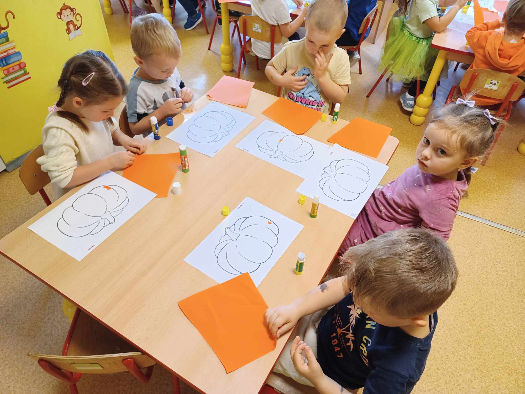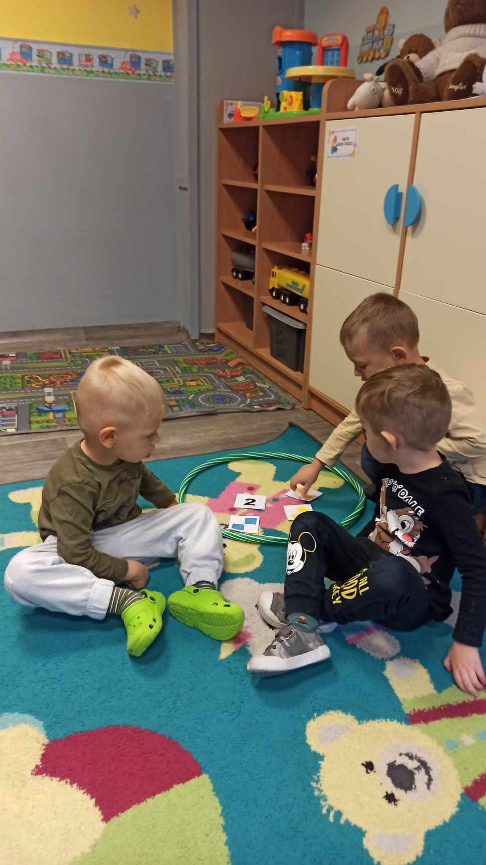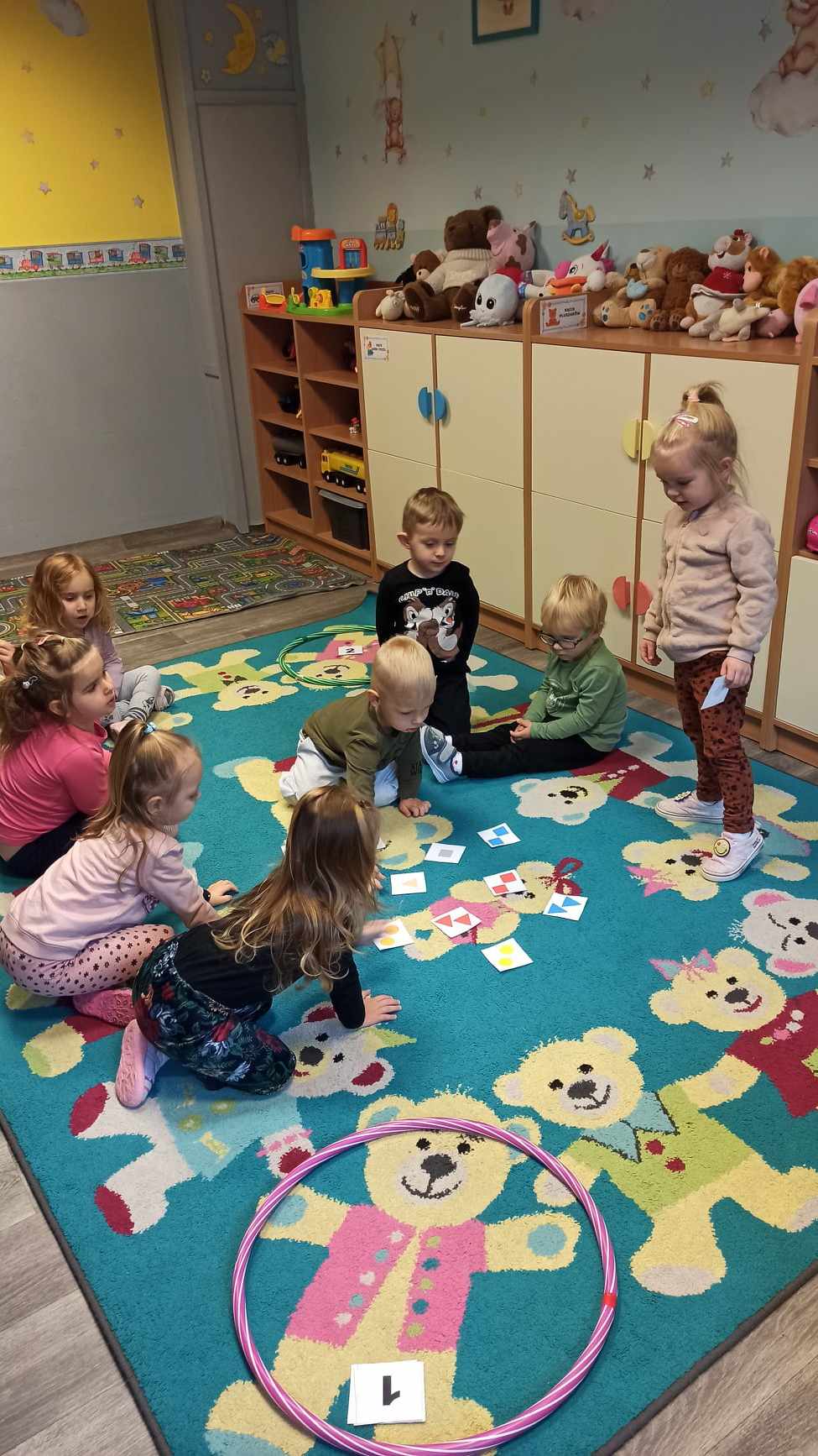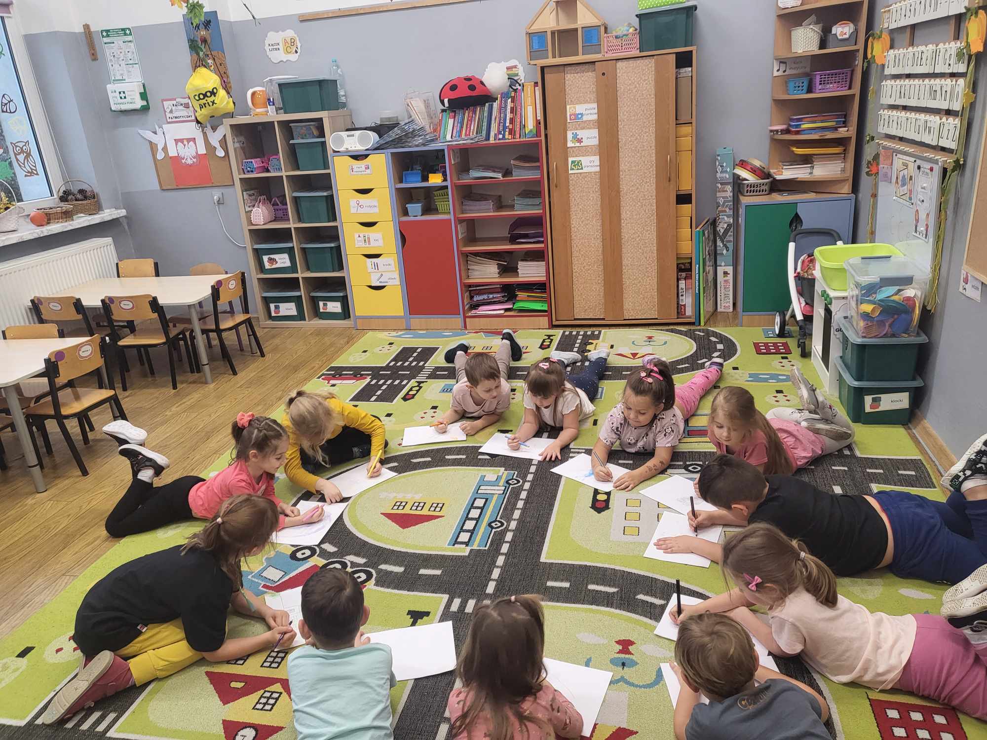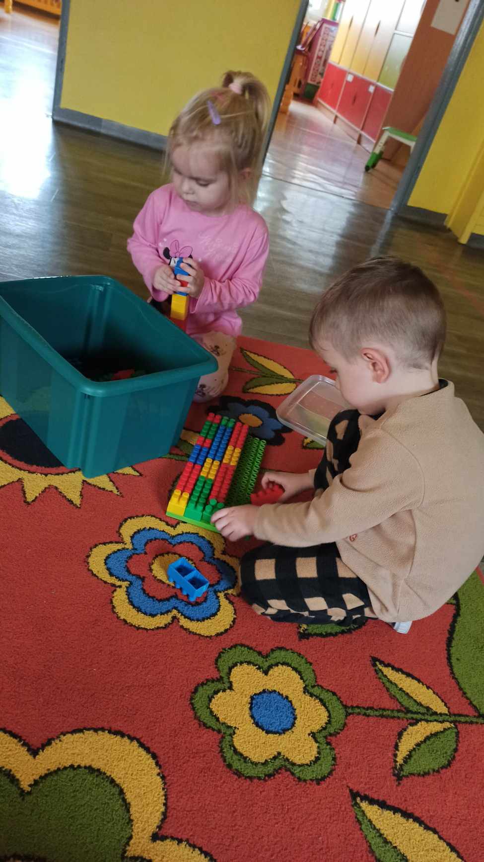 Dzieci z grupy „Misie” rozwiązywały zagadki dotyczące ubrań, które zakładamy jesienią i zimą, kształtowały swoją spostrzegawczość poprzez odnajdywanie par takich samych kaloszy. Z uwagą słuchały wiersza i patrzyły na świat przez „kolorowe” okulary. Poznały zawód malarza oraz jego narzędzia pracy. Układały rytmy, przeliczały elementy, a także wykonały pracę plastyczną.