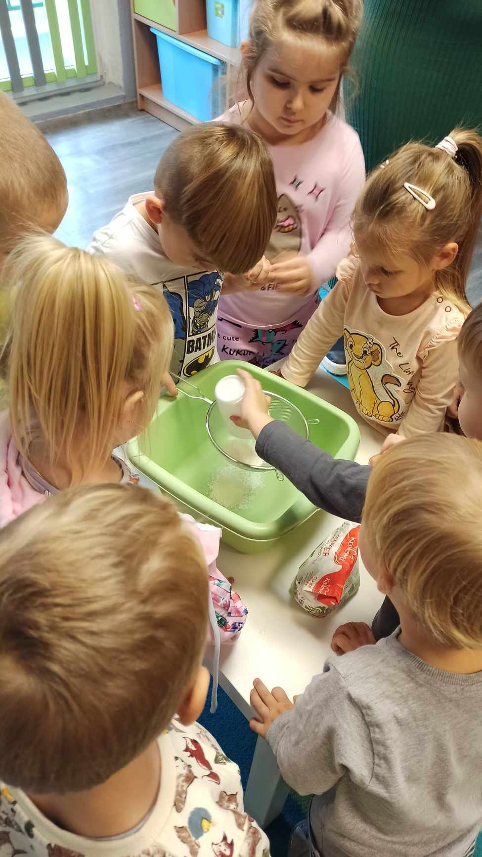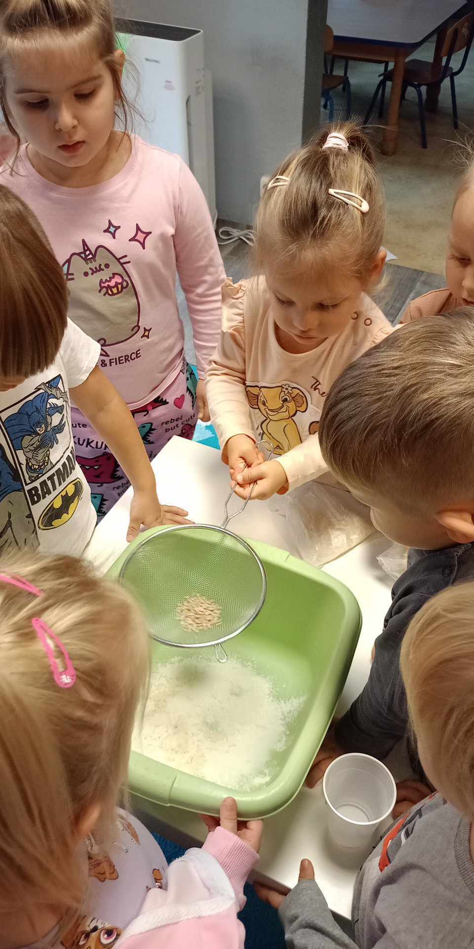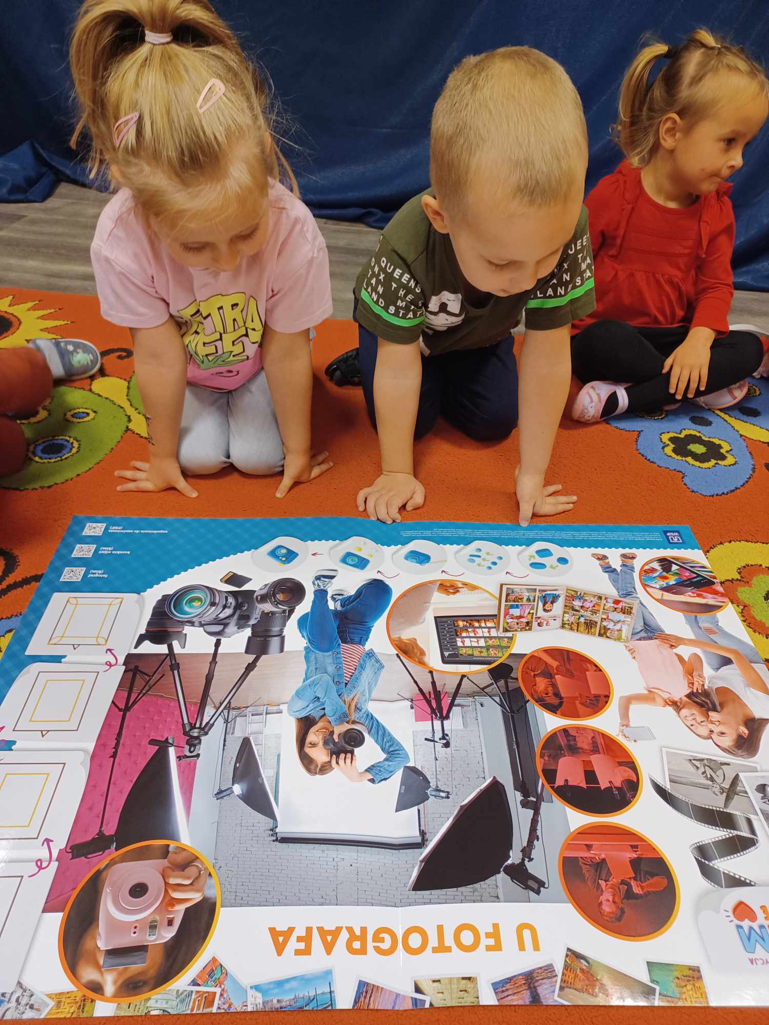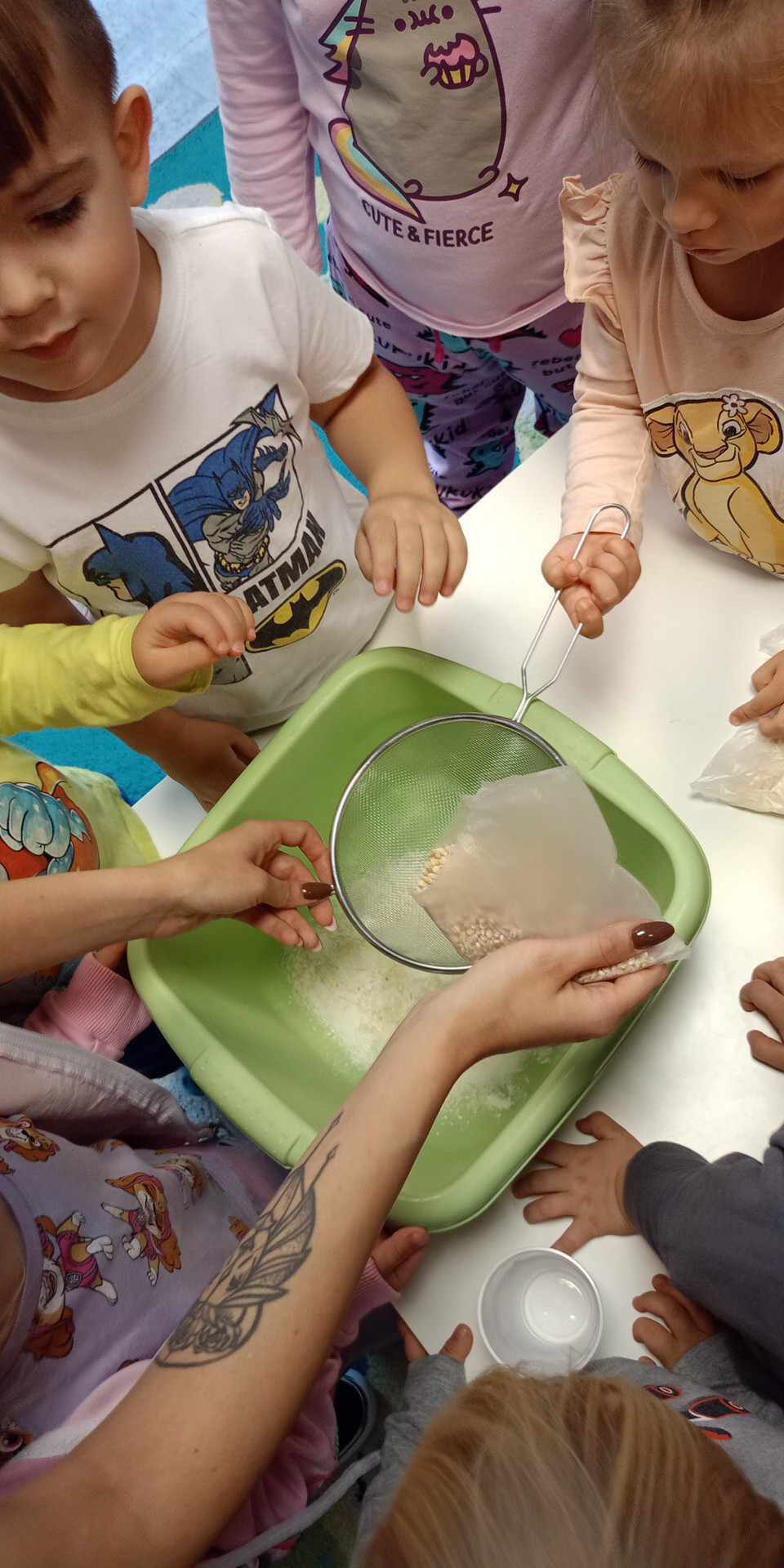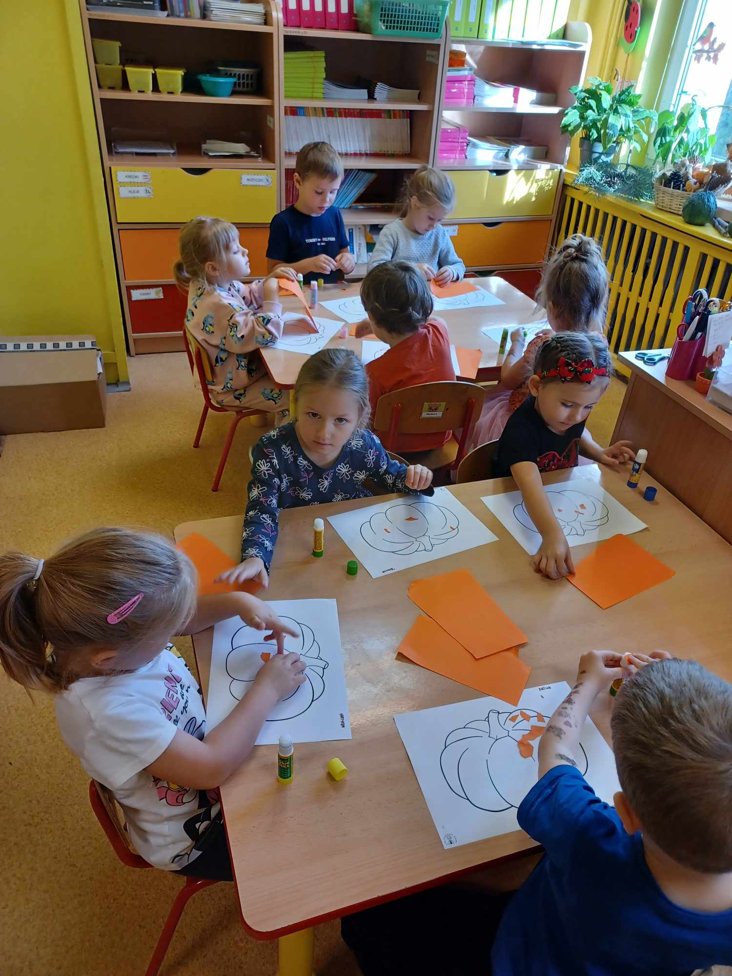 Dzieci z grupy „Misie” rozwiązywały zagadki dotyczące ubrań, które zakładamy jesienią i zimą, kształtowały swoją spostrzegawczość poprzez odnajdywanie par takich samych kaloszy. Z uwagą słuchały wiersza i patrzyły na świat przez „kolorowe” okulary. Poznały zawód malarza oraz jego narzędzia pracy. Układały rytmy, przeliczały elementy, a także wykonały pracę plastyczną.