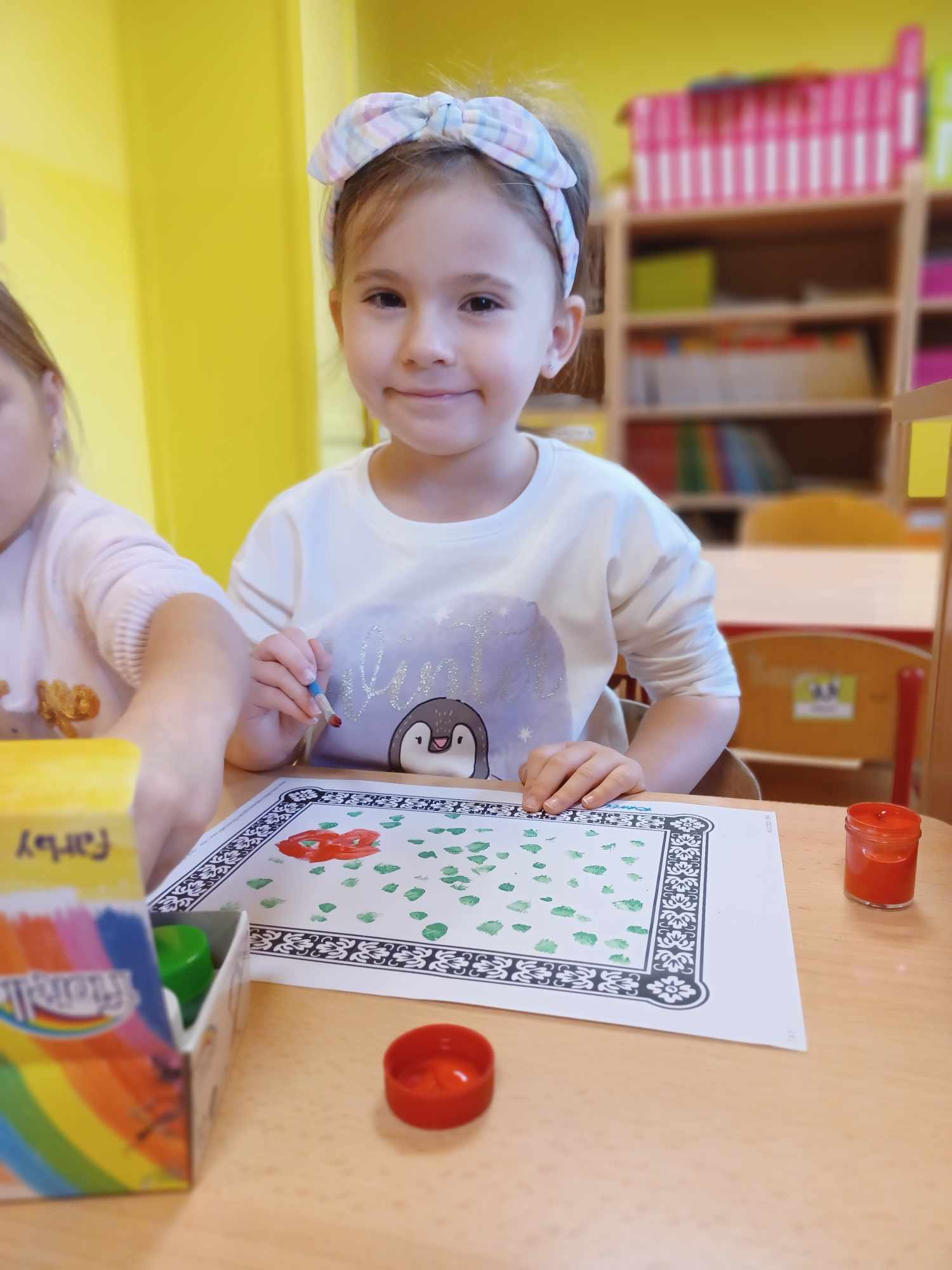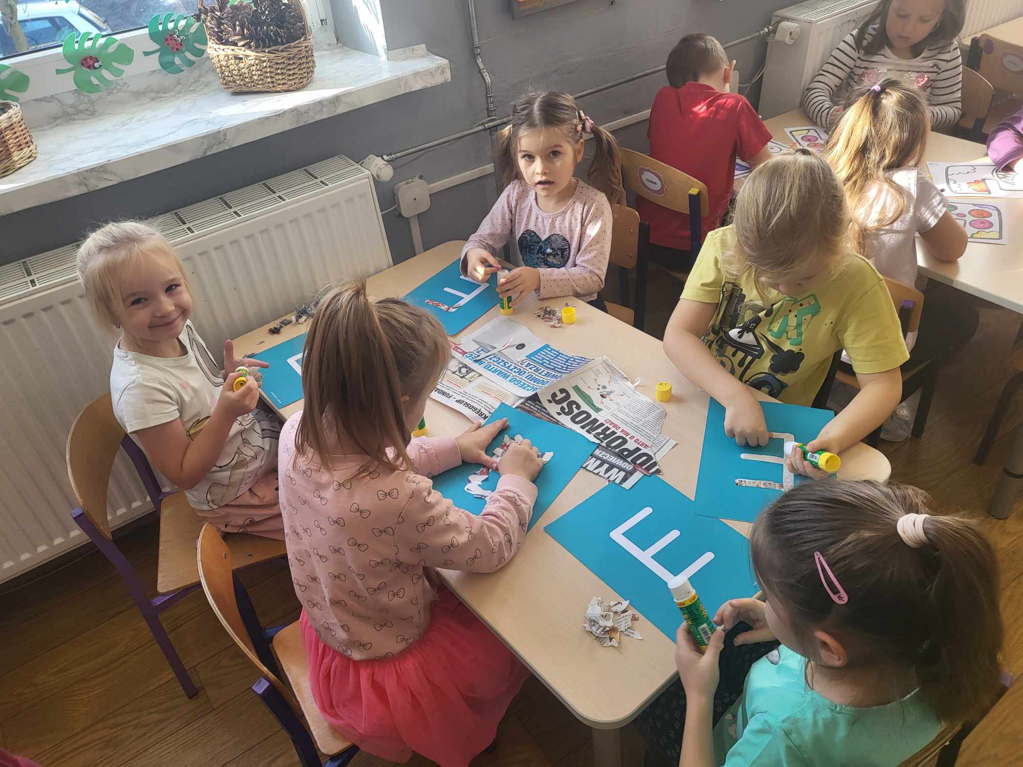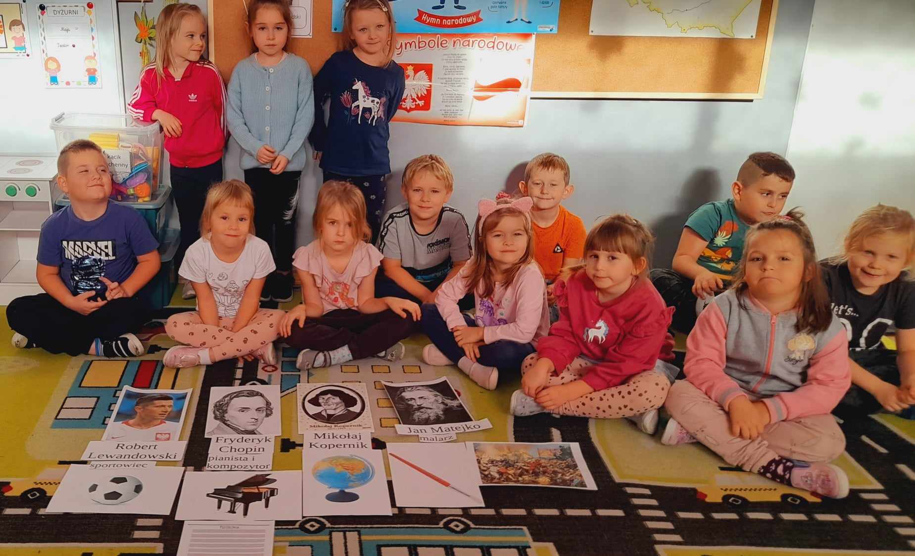 Grupa „Biedronki” poznała sylwety sławnych Polaków i ciekawostki na ich temat, wykonywała flagę Polski techniką wypełniania kontur plasteliną. Doskonaliła umiejętność bezpiecznego i prawidłowego posługiwania się nożyczkami, poprzez wycinanie wzorów po śladzie. Grupa poznała również litery:”E-e”, których kontur wypełniała kawałkami z gazet, cyfrę 3, sylwety sławnych Polaków i ciekawostki na ich temat, wykonywała flagę Polski techniką wypełniania kontur plasteliną. Doskonaliła umiejętność bezpiecznego i prawidłowego posługiwania się nożyczkami, poprzez wycinanie wzorów po śladzie. Wykonywała pracę plastyczną techniką ” mokre w mokrym”. Nie zabrakło zabaw z użyciem liter oraz ćwiczeń w kodowaniu. W ramach innowacji: „Dotknij, poczuj, zobacz” Biedronki wykonywały zadania za pomocą ciastoliny.