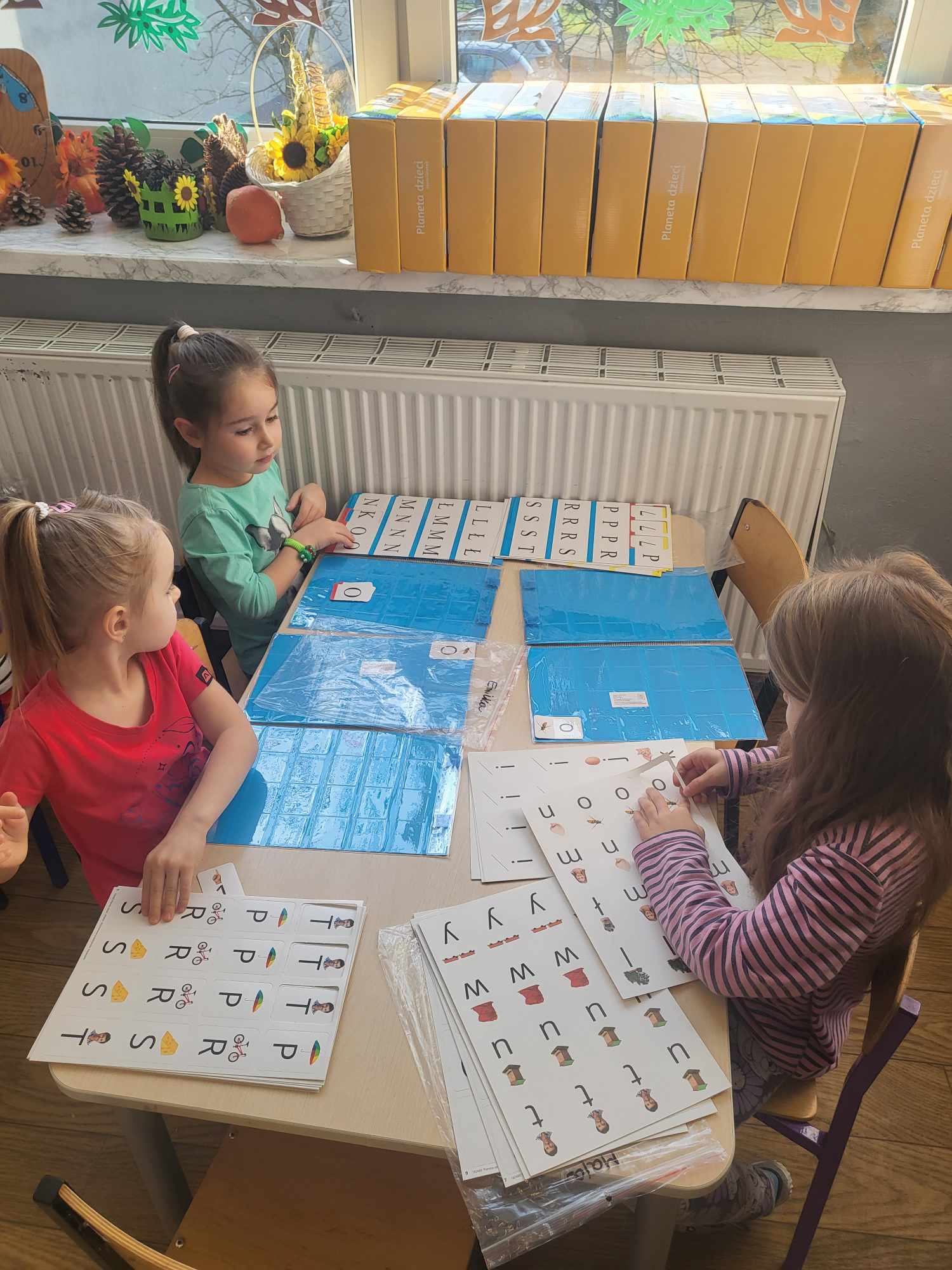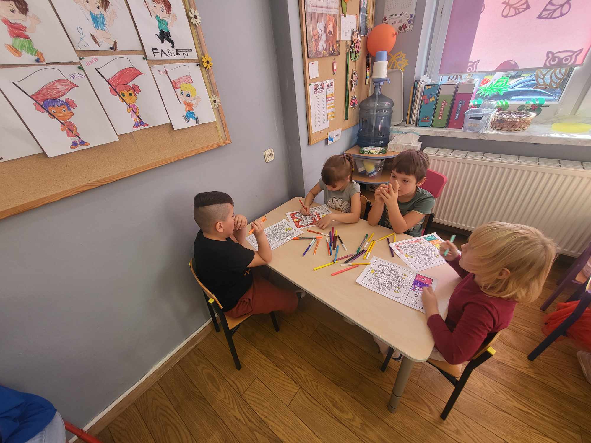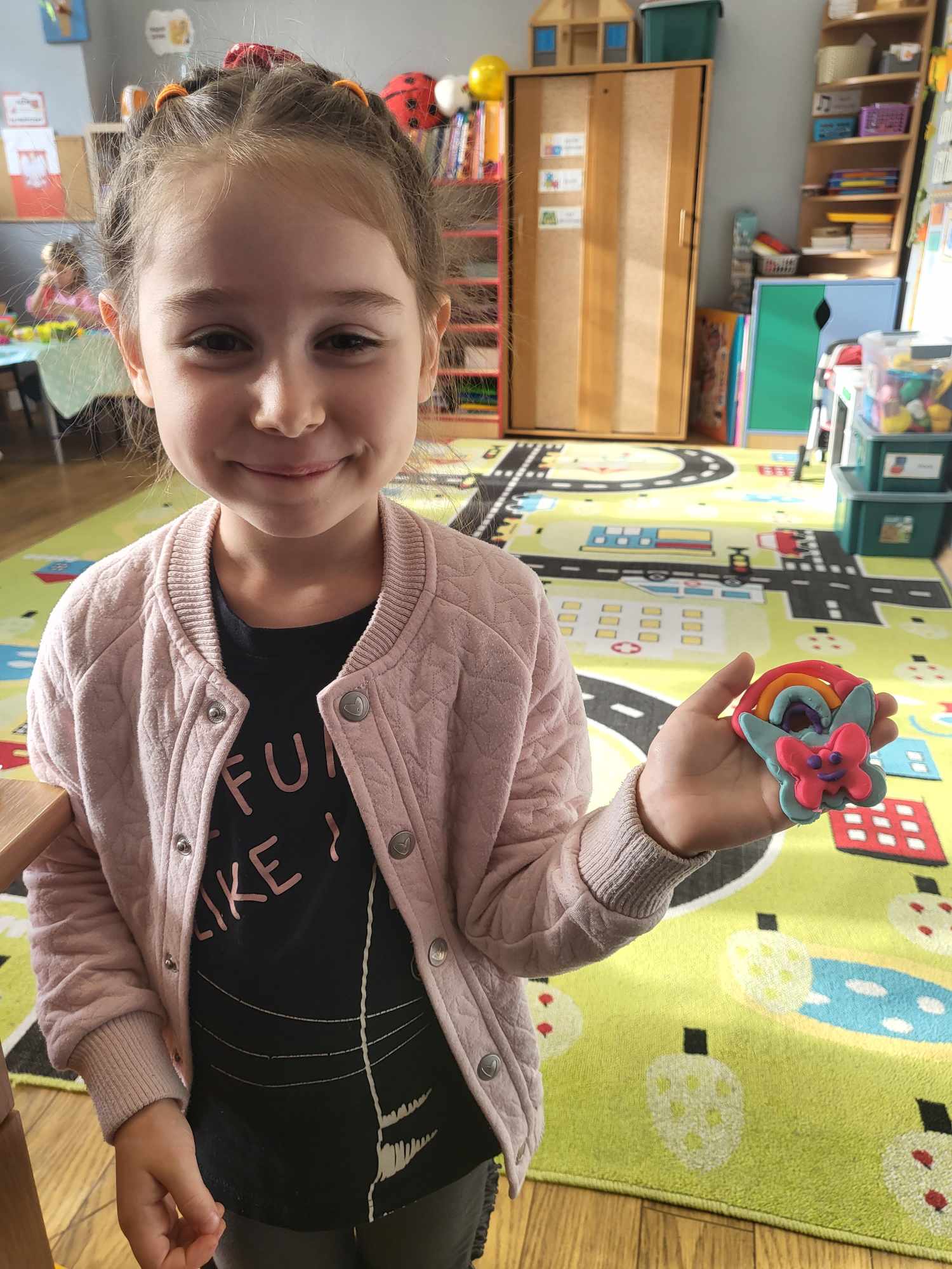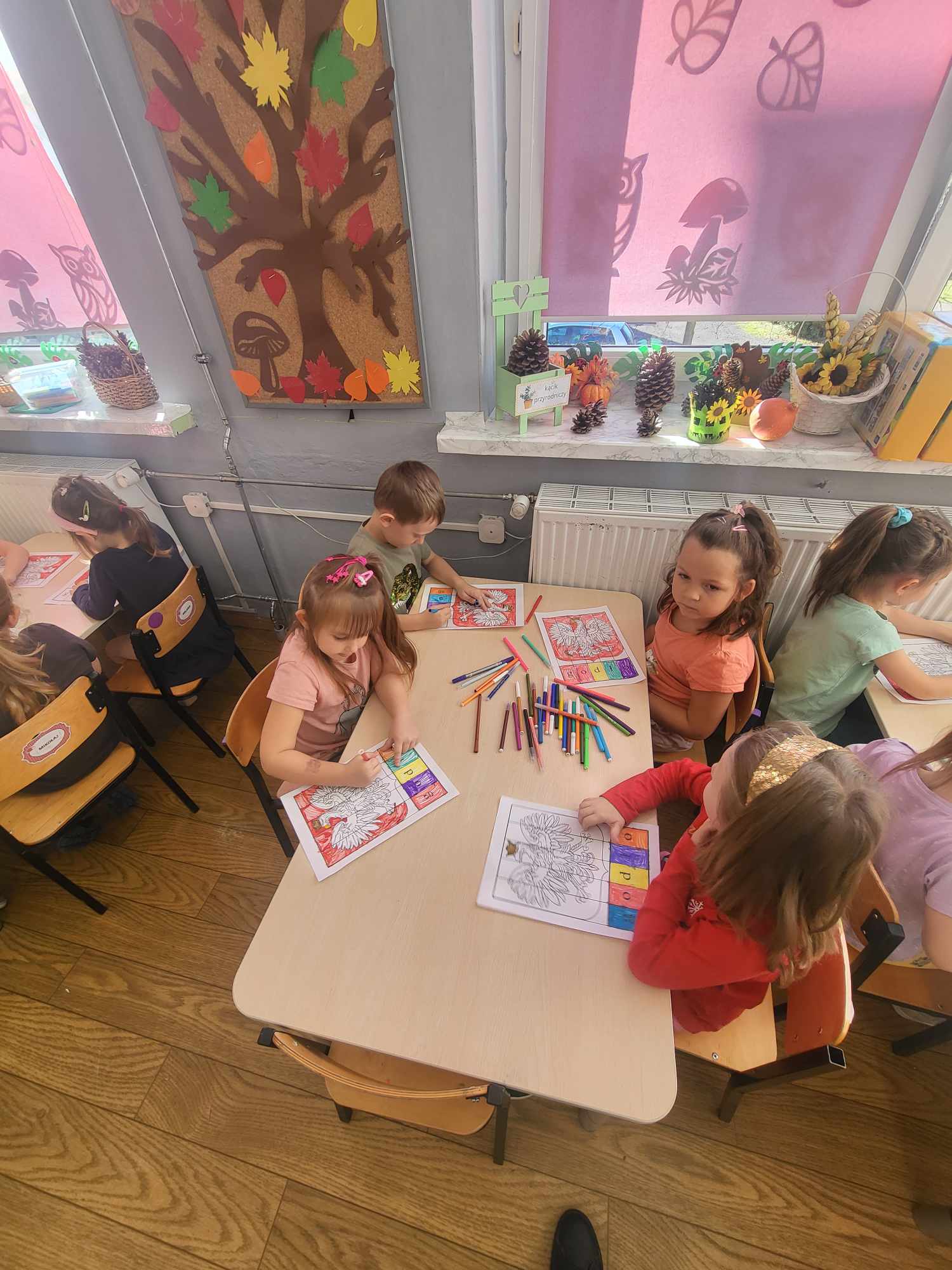 Grupa „Biedronki” poznała sylwety sławnych Polaków i ciekawostki na ich temat, wykonywała flagę Polski techniką wypełniania kontur plasteliną. Doskonaliła umiejętność bezpiecznego i prawidłowego posługiwania się nożyczkami, poprzez wycinanie wzorów po śladzie. Grupa poznała również litery:”E-e”, których kontur wypełniała kawałkami z gazet, cyfrę 3, sylwety sławnych Polaków i ciekawostki na ich temat, wykonywała flagę Polski techniką wypełniania kontur plasteliną. Doskonaliła umiejętność bezpiecznego i prawidłowego posługiwania się nożyczkami, poprzez wycinanie wzorów po śladzie. Wykonywała pracę plastyczną techniką ” mokre w mokrym”. Nie zabrakło zabaw z użyciem liter oraz ćwiczeń w kodowaniu. W ramach innowacji: „Dotknij, poczuj, zobacz” Biedronki wykonywały zadania za pomocą ciastoliny.