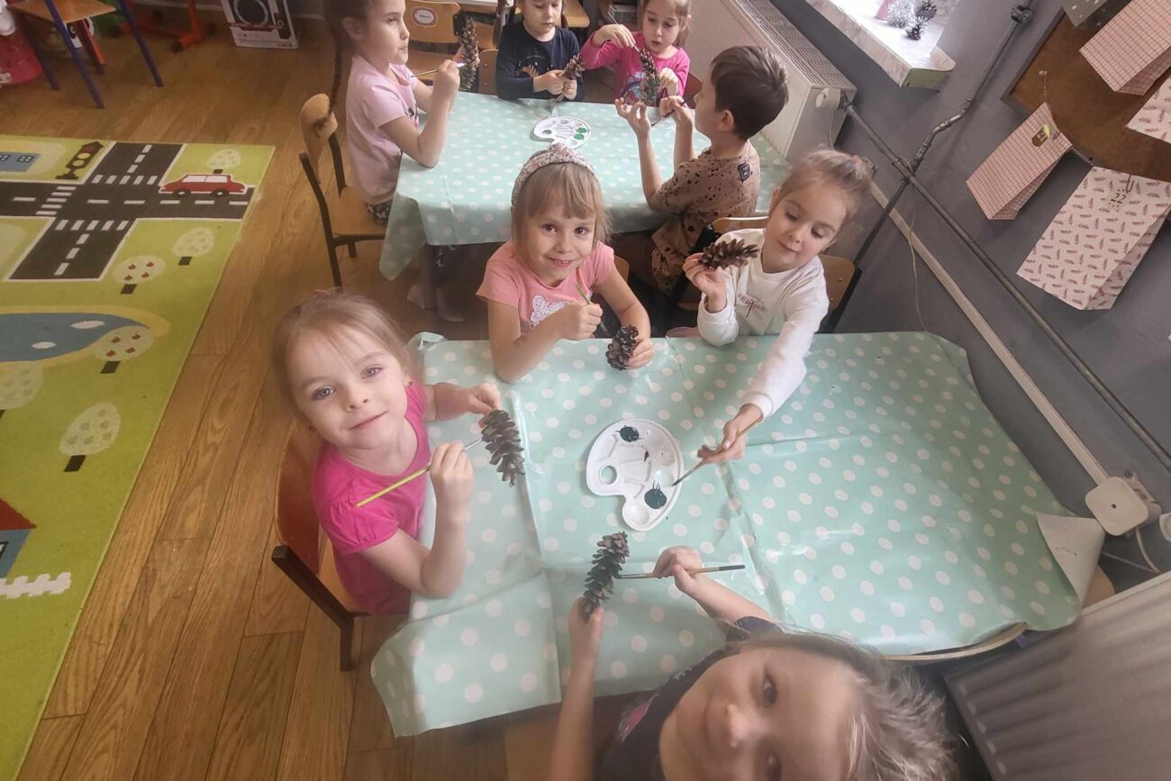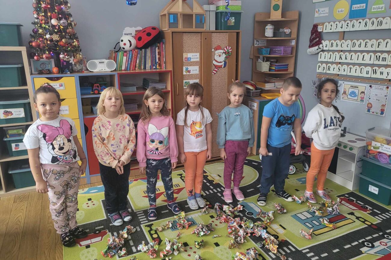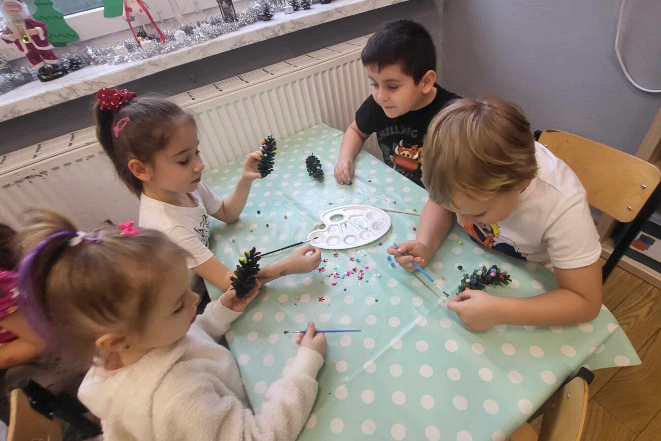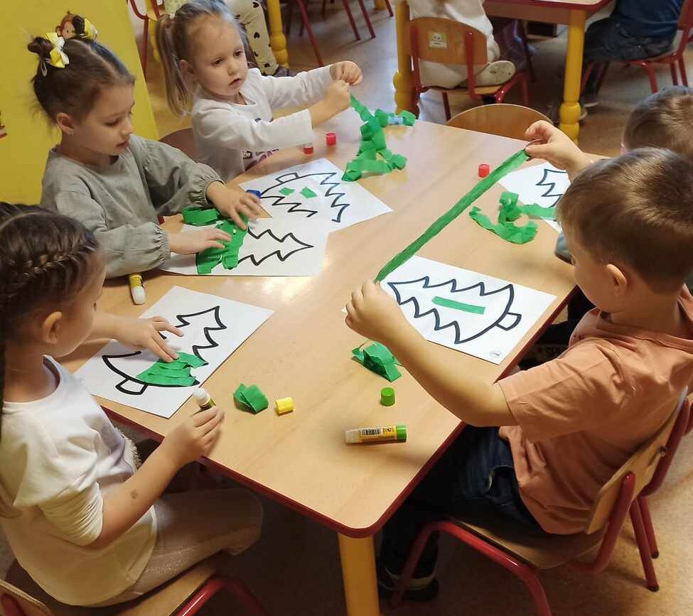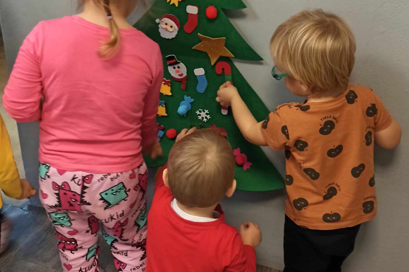 Dzieci z grupy „Misie” rozmawiały na temat życia zwierząt, głównie ptaków, podczas zimy. Zaczęły poznawać także zwyczaje świąteczne. Ubrały choinkę samodzielnie przyczepiając do niej filcowe ozdoby. Wylepiały sylwetę bombki lub choinki plasteliną, a także ozdabiały jej szablon bibułą oraz farbą. Urodziny świętowali Anastazja i Gabryś.