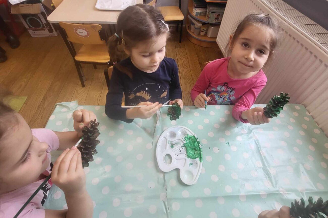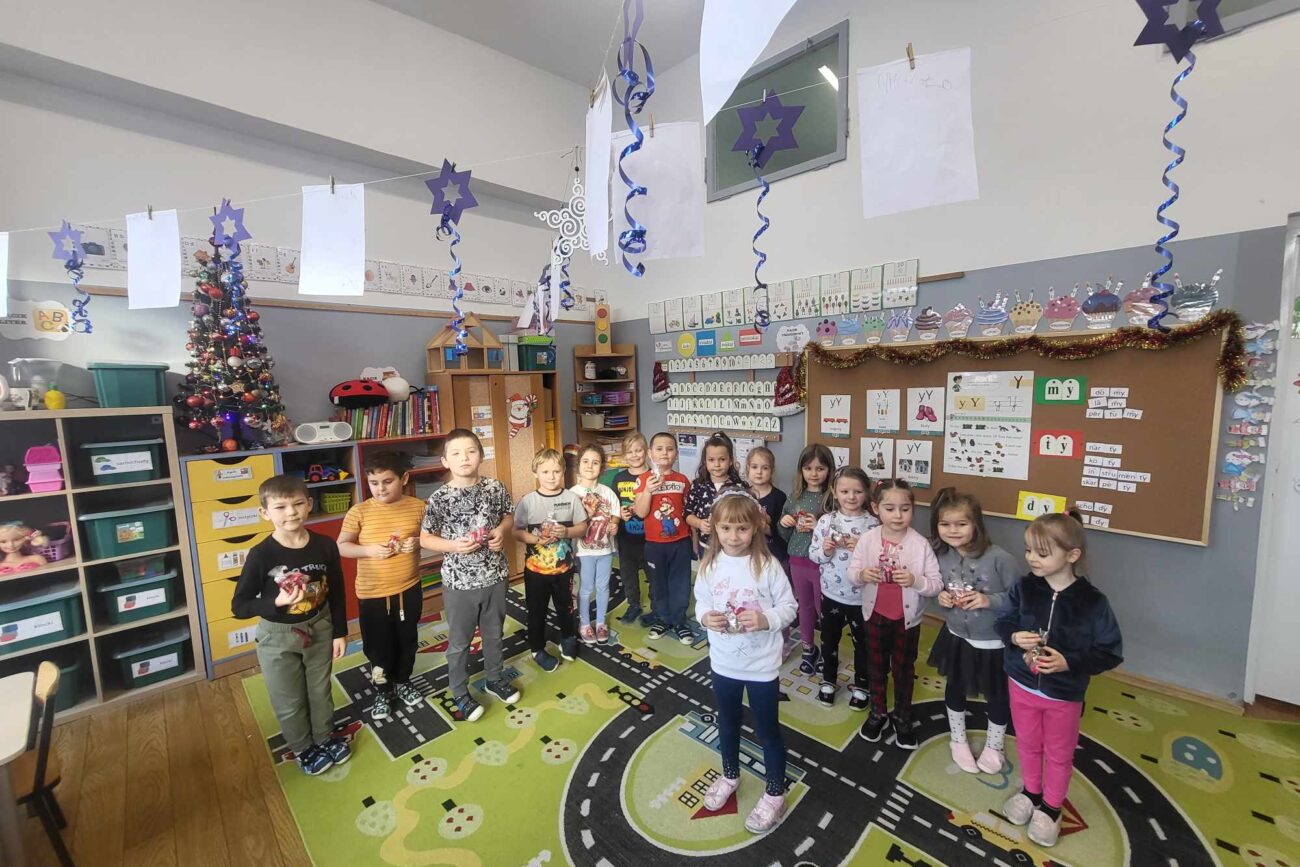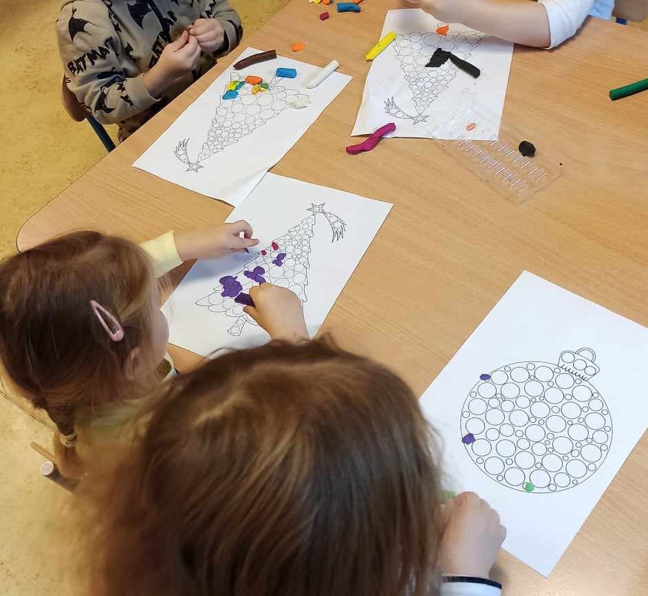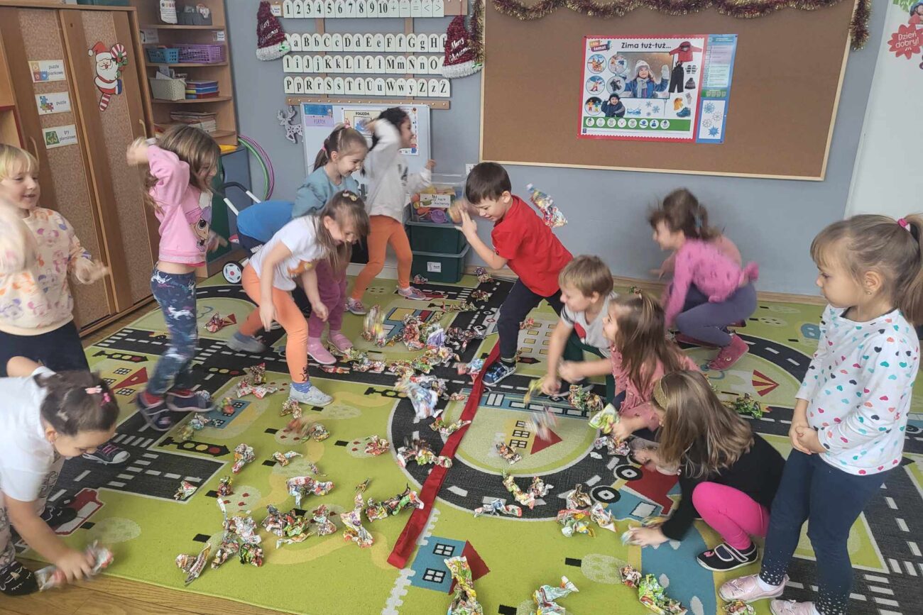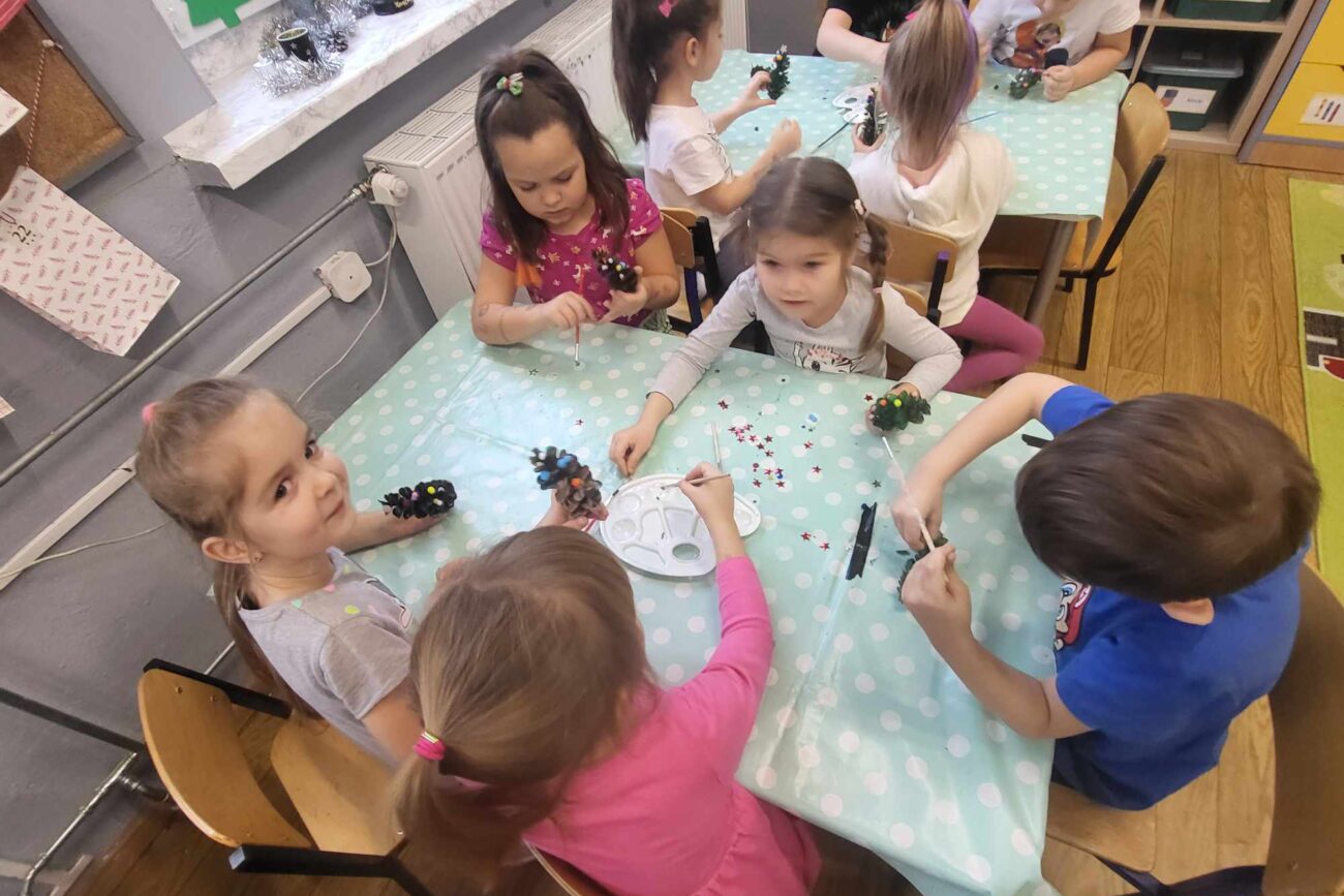 Dzieci z grupy „Misie” rozmawiały na temat życia zwierząt, głównie ptaków, podczas zimy. Zaczęły poznawać także zwyczaje świąteczne. Ubrały choinkę samodzielnie przyczepiając do niej filcowe ozdoby. Wylepiały sylwetę bombki lub choinki plasteliną, a także ozdabiały jej szablon bibułą oraz farbą. Urodziny świętowali Anastazja i Gabryś.