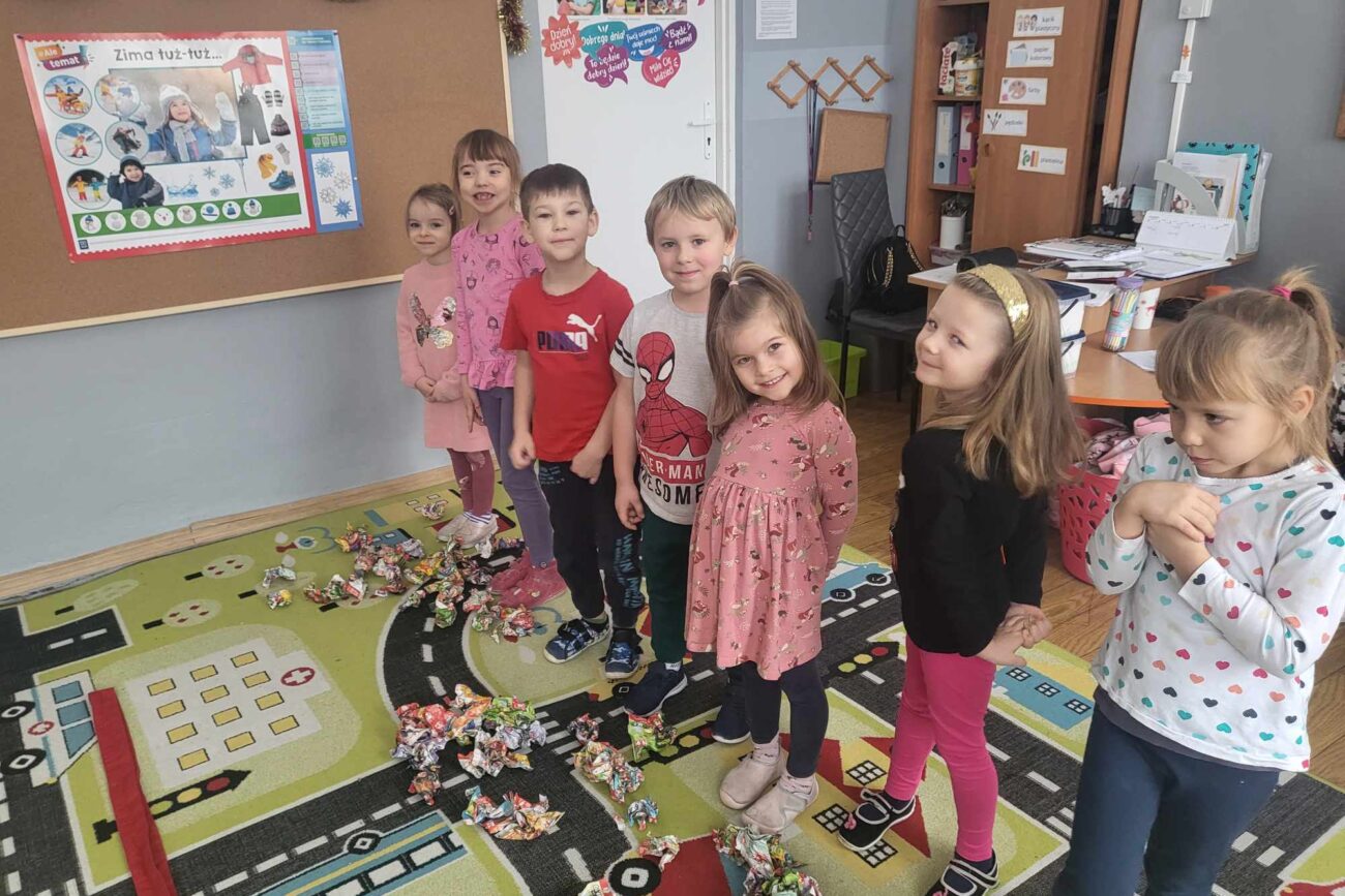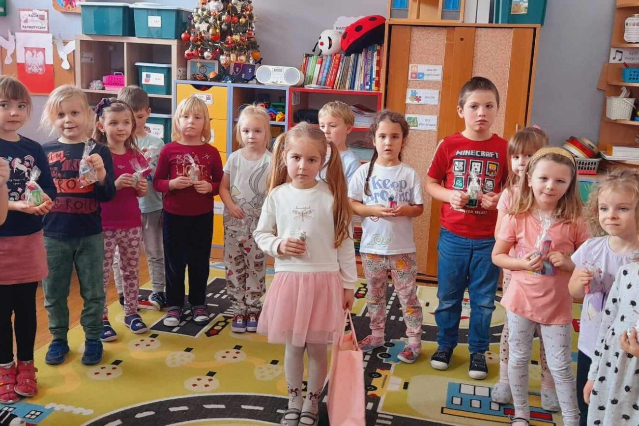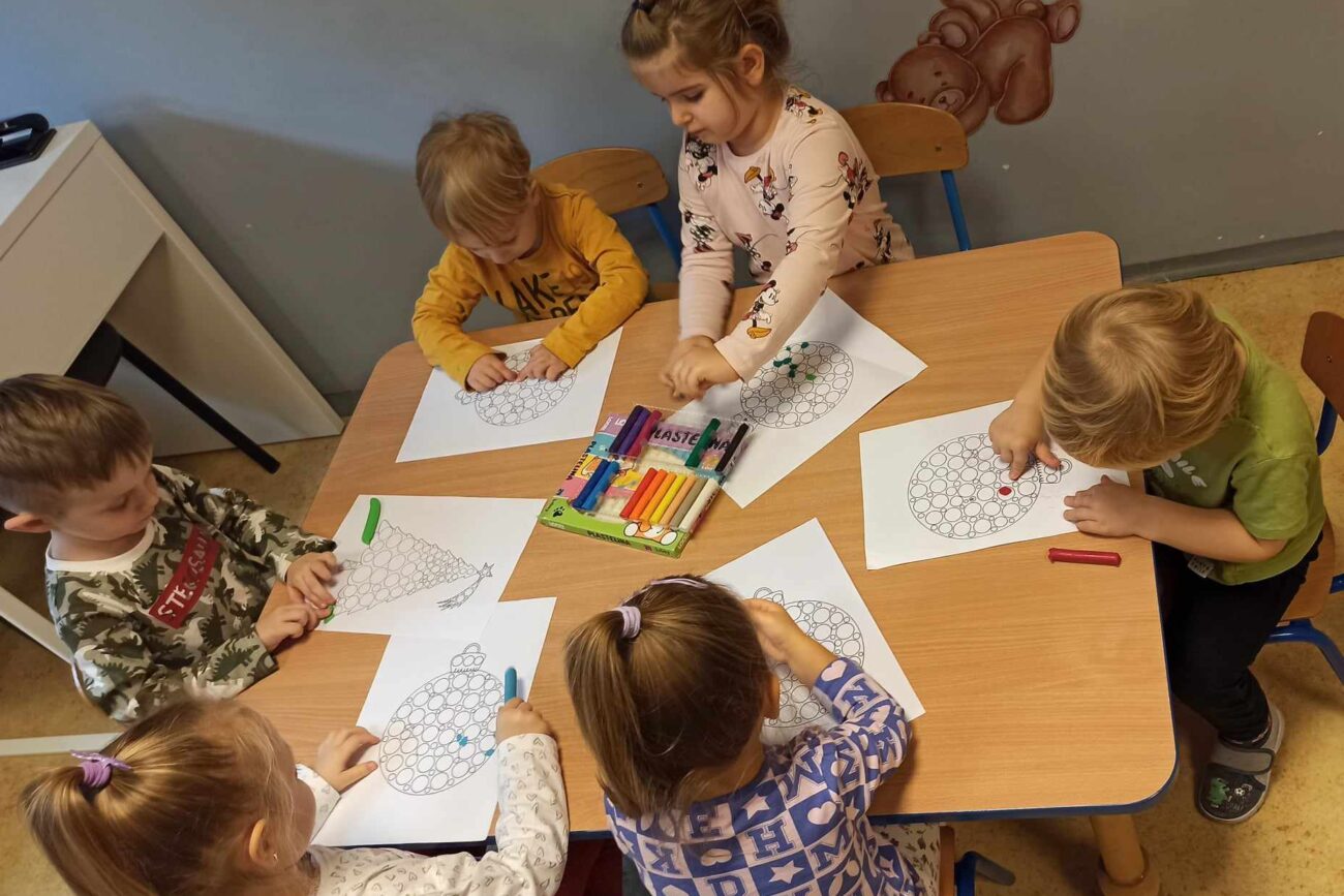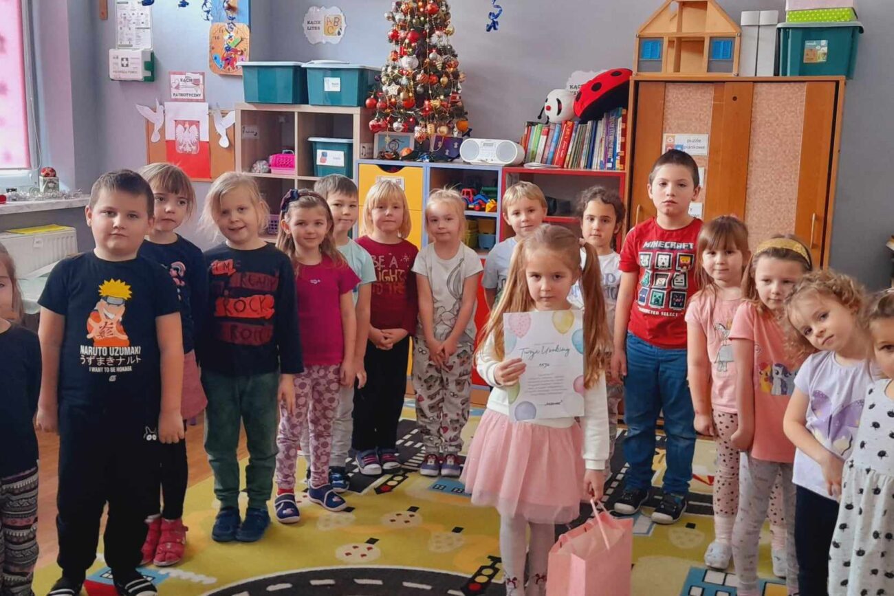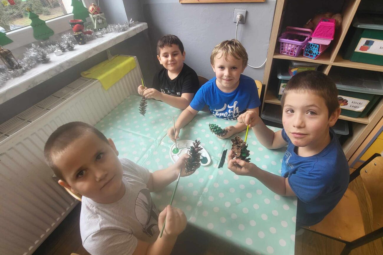 Dzieci z grupy „Misie” rozmawiały na temat życia zwierząt, głównie ptaków, podczas zimy. Zaczęły poznawać także zwyczaje świąteczne. Ubrały choinkę samodzielnie przyczepiając do niej filcowe ozdoby. Wylepiały sylwetę bombki lub choinki plasteliną, a także ozdabiały jej szablon bibułą oraz farbą. Urodziny świętowali Anastazja i Gabryś.
