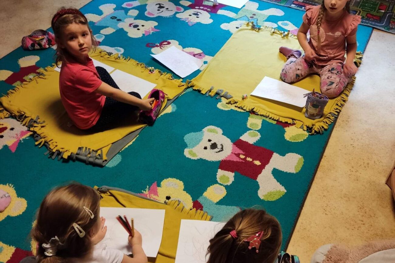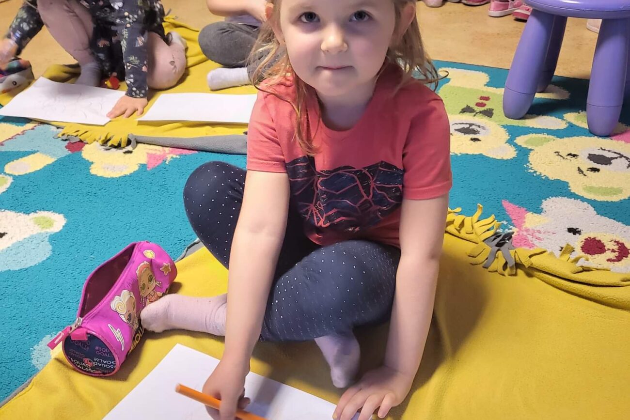 Pani Agnieszka z Biedronek prowadziła zajęcia sportowe , zaś Pani Weronika również z tej samej grupy prowadziła gry i zabawy matematyczne z elementami kodowania.