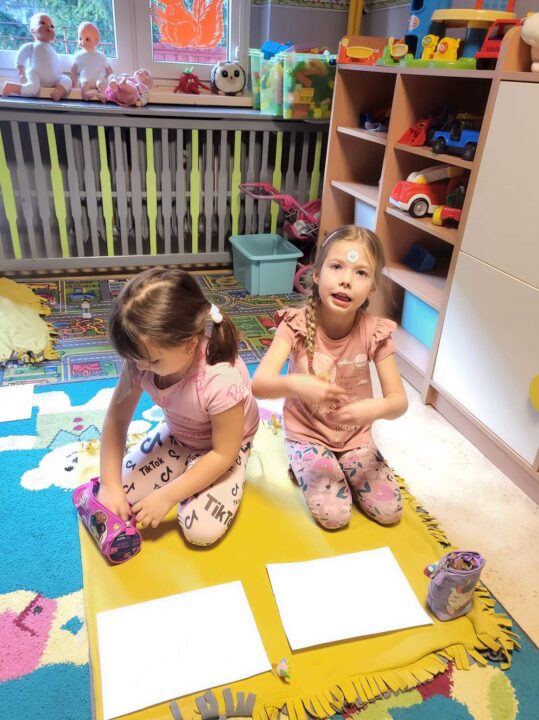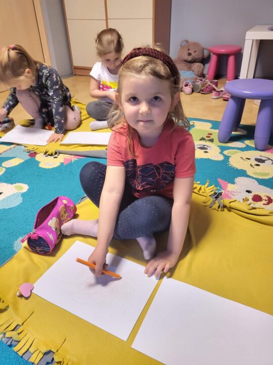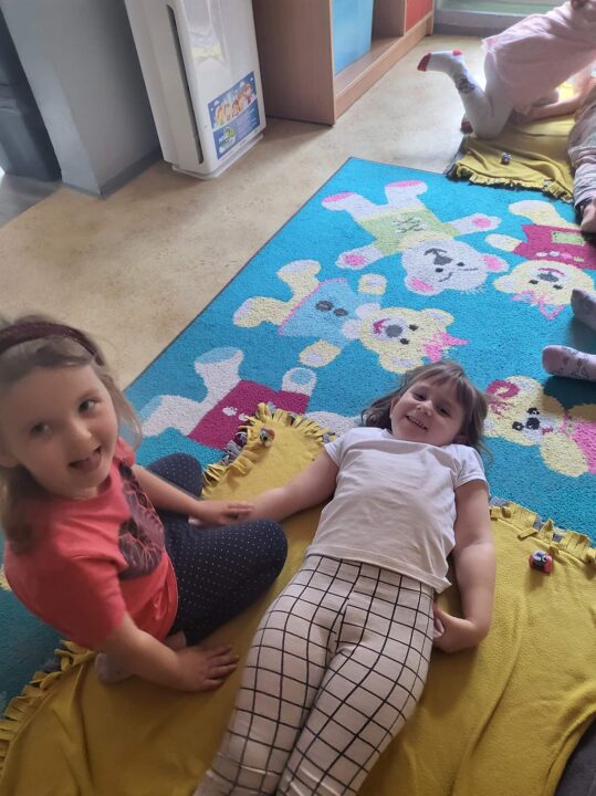 Pani Agnieszka z Biedronek prowadziła zajęcia sportowe , zaś Pani Weronika również z tej samej grupy prowadziła gry i zabawy matematyczne z elementami kodowania.