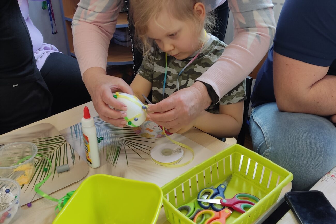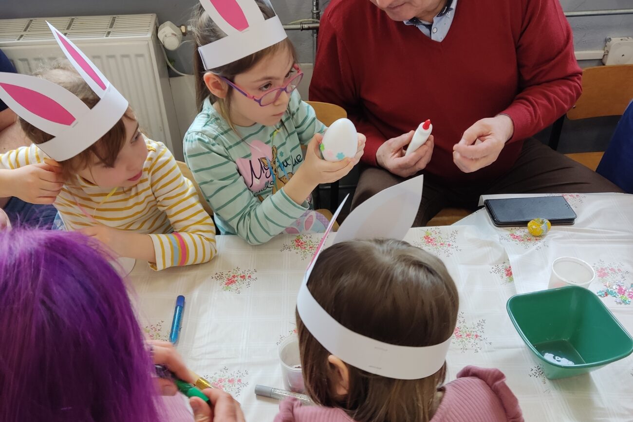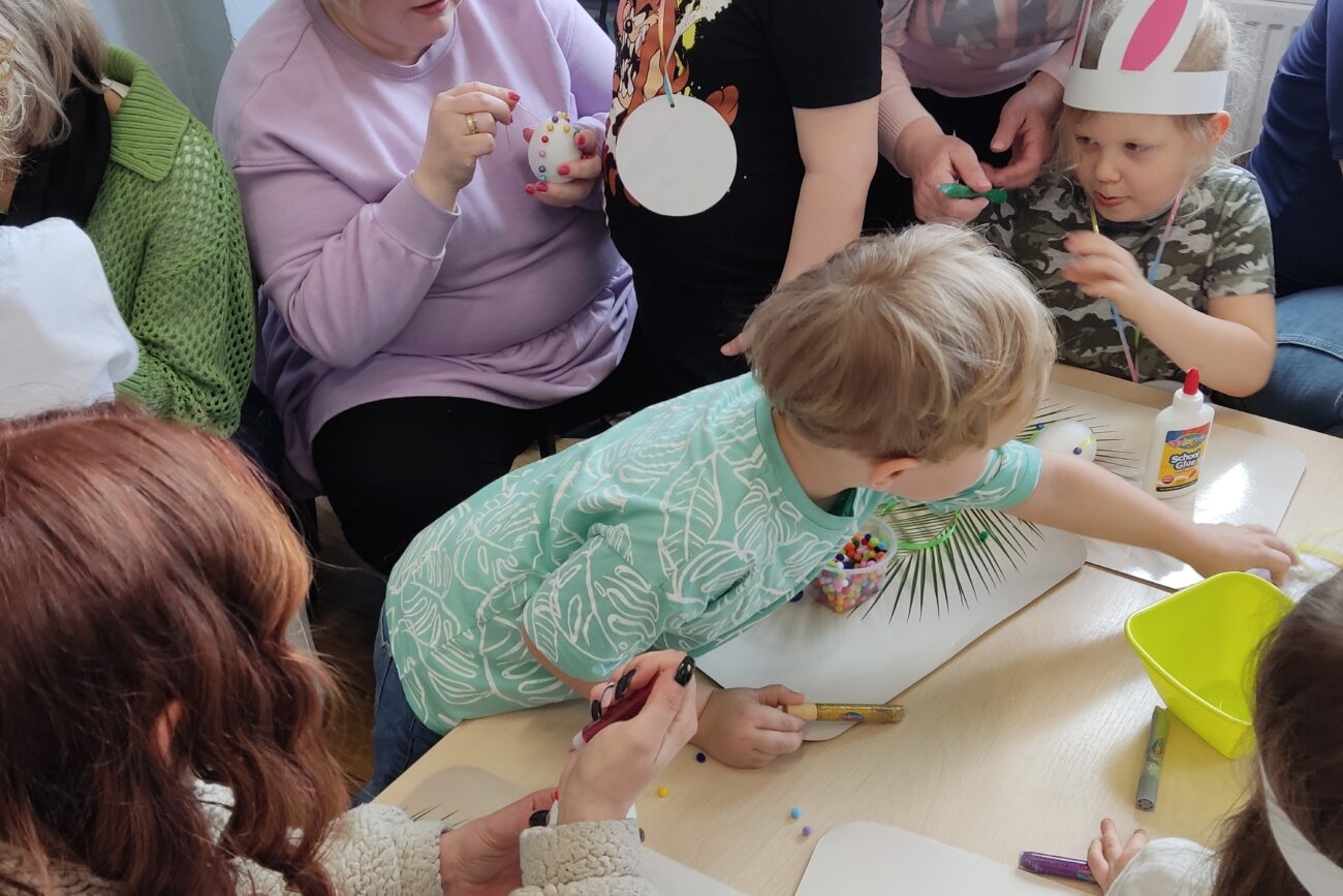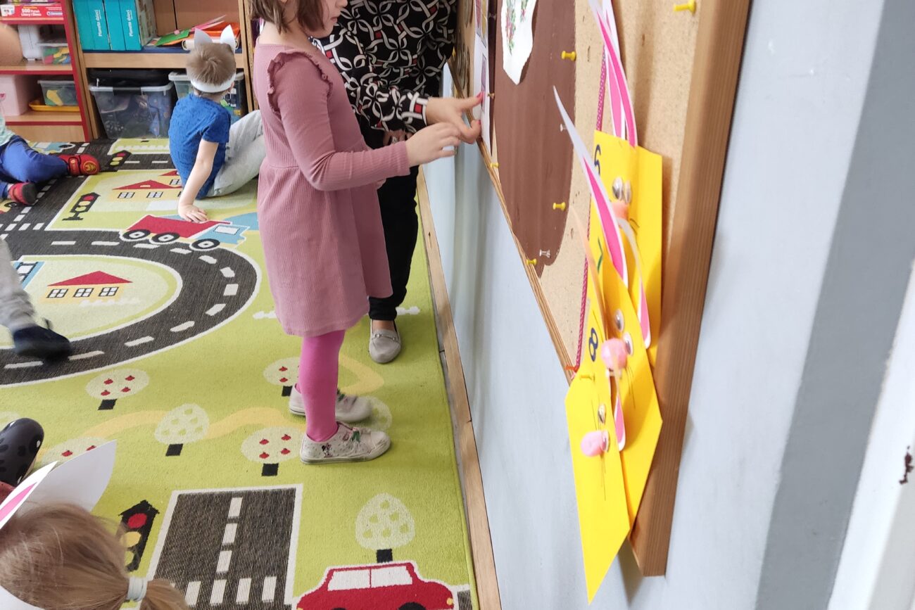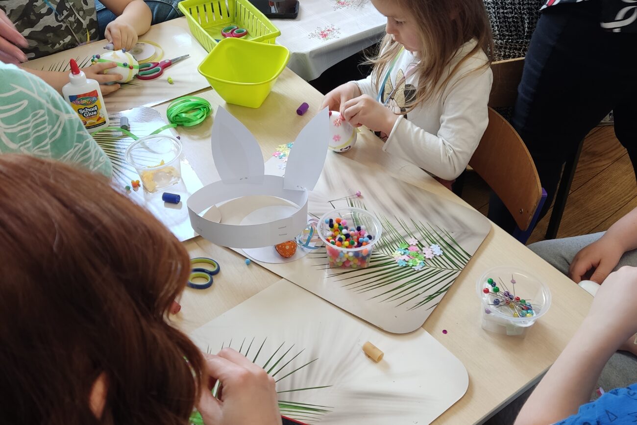 W dniu 05.04.2023r.w grupie „Biedronki „ odbyły się zajęcia otwarte z udziałem Rodziców, którego tematem były:”Zabawy z Wielkanocnym Zajączkiem „. Dzieci poprzez różnorodne zadania do wykonania miały okazję do poznawania tradycji Świąt Wielkanocnych.Rozwiązywały zagadki, szyfr cyfrowo- literowy, nazywały figury geometryczne, liczyły, przeliczały elementy oraz rozpoznawały poznane cyfry. Wykonywały działania na dodawanie i odejmowanie w zabawie matematycznej:”Jajeczne rachunki”. Utrwalały znajomość poznanych liter drukowanych oraz wyodrębniały głoskę w nagłosie nazwy obrazka. Układały pisankowe puzzle z pociętych części w całość. Uczestniczyły w zabawach muzyczno- ruchowych: „Szło jajeczko drogą „, „Zajączki”. Wspólnie zaśpiewały piosenkę, pt:”Pisanki- kraszanki”. Wielkanocny Zajączek za pięknie wykonane przez dzieci zadania przygotował słodką niespodziankę i medale. Na koniec odbyły się warsztaty świąteczne, podczas których dzieci wraz z rodzicami ozdabiały jajka.