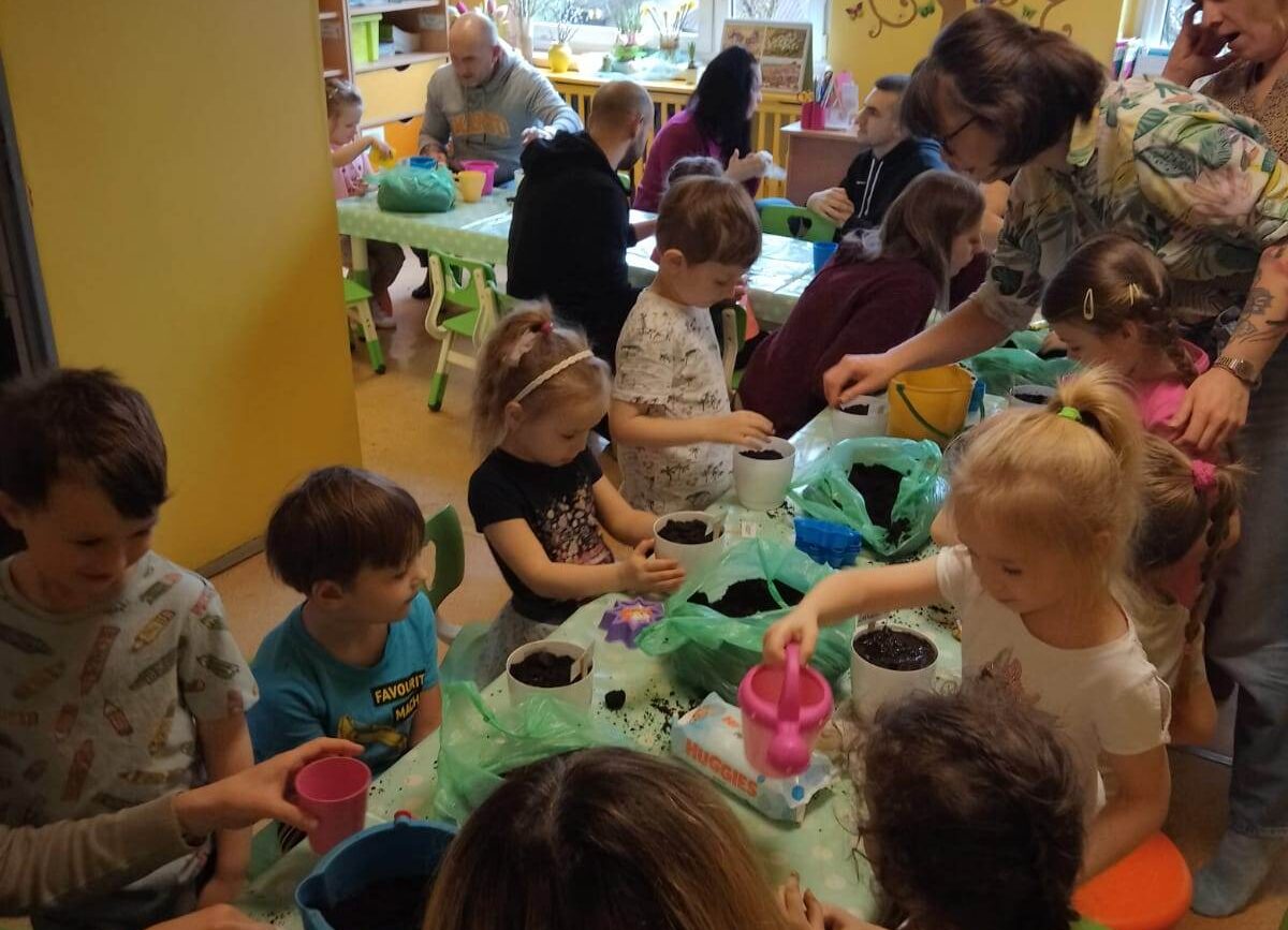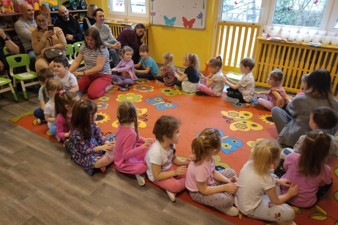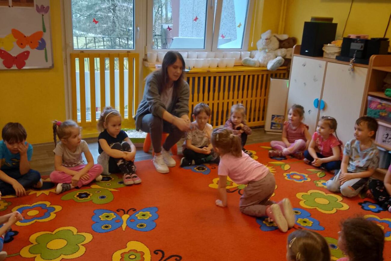 W dniu 22.03.2023r. w grupie Motylki odbyły się zajęcia otwarte dla Rodziców. Dzieci wykonywały zadania, które przygotowała dla nich żabka. Nie zabrakło zabaw ruchowych, ogólnorozwojowych, wspólnego śpiewu oraz masażyków. Na zakończenie dzieci razem z Rodzicami zasadzili cebulki kwiatów.