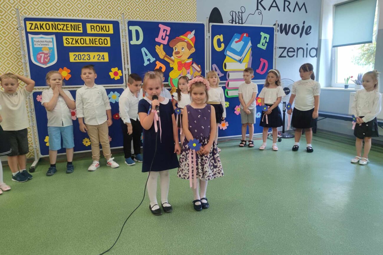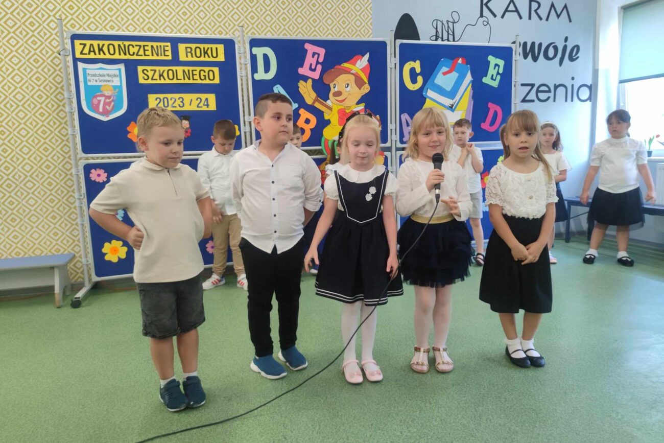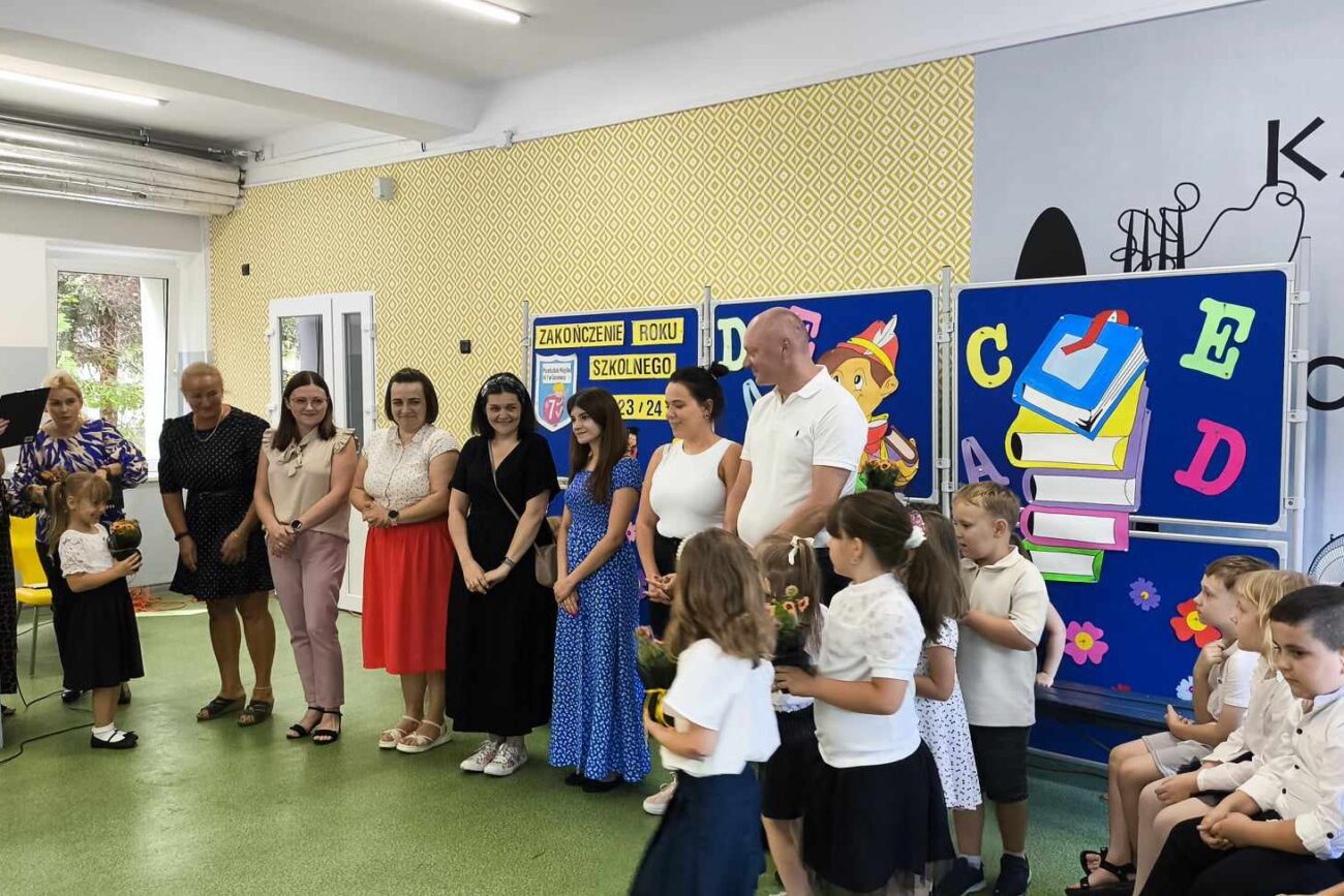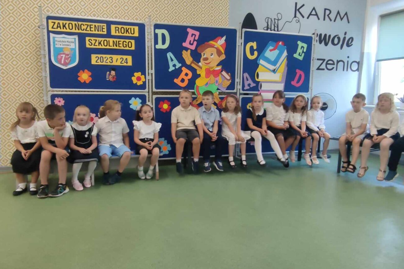 Dziesięć miesięcy wspólnych zabaw i zajęć, podróży po porach roku i wycieczek szybko minęło, aż nadszedł czas wakacji i pożegnań. W uroczystości zakończenia roku uczestniczyli też rodzice zaproszeni goście Pani Dyrektor i Pani Wicedyrektor Szkoły Podstawowej nr 32 w Sosnowcu.