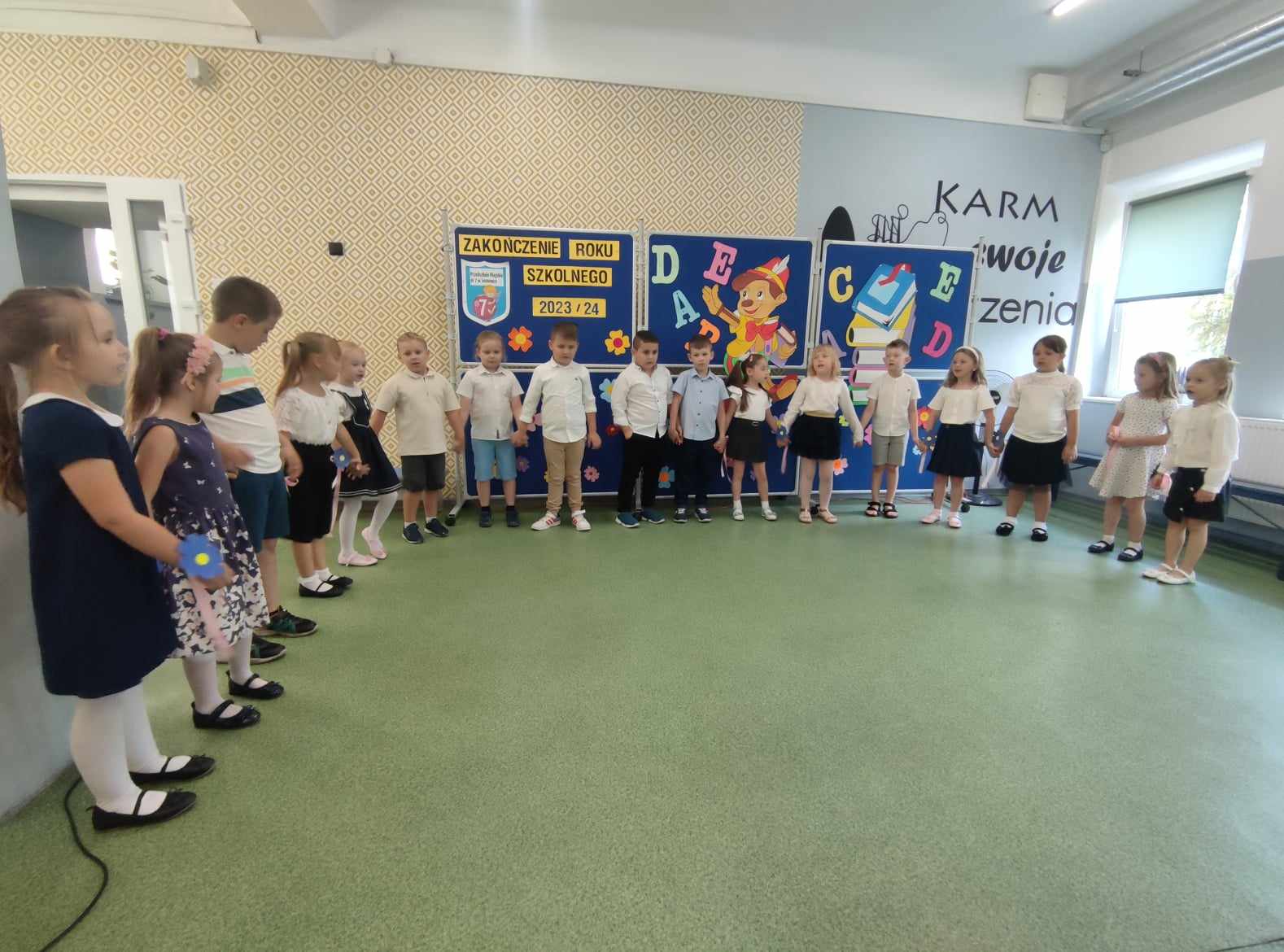 Dziesięć miesięcy wspólnych zabaw i zajęć, podróży po porach roku i wycieczek szybko minęło, aż nadszedł czas wakacji i pożegnań. W uroczystości zakończenia roku uczestniczyli też rodzice zaproszeni goście Pani Dyrektor i Pani Wicedyrektor Szkoły Podstawowej nr 32 w Sosnowcu.
