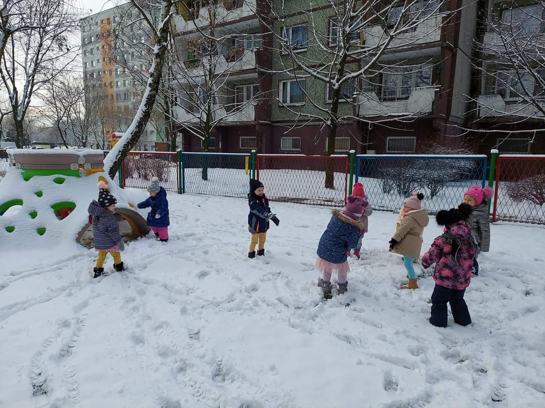 Gdy na dworze śnieg- dzieci bardzo cieszą się .